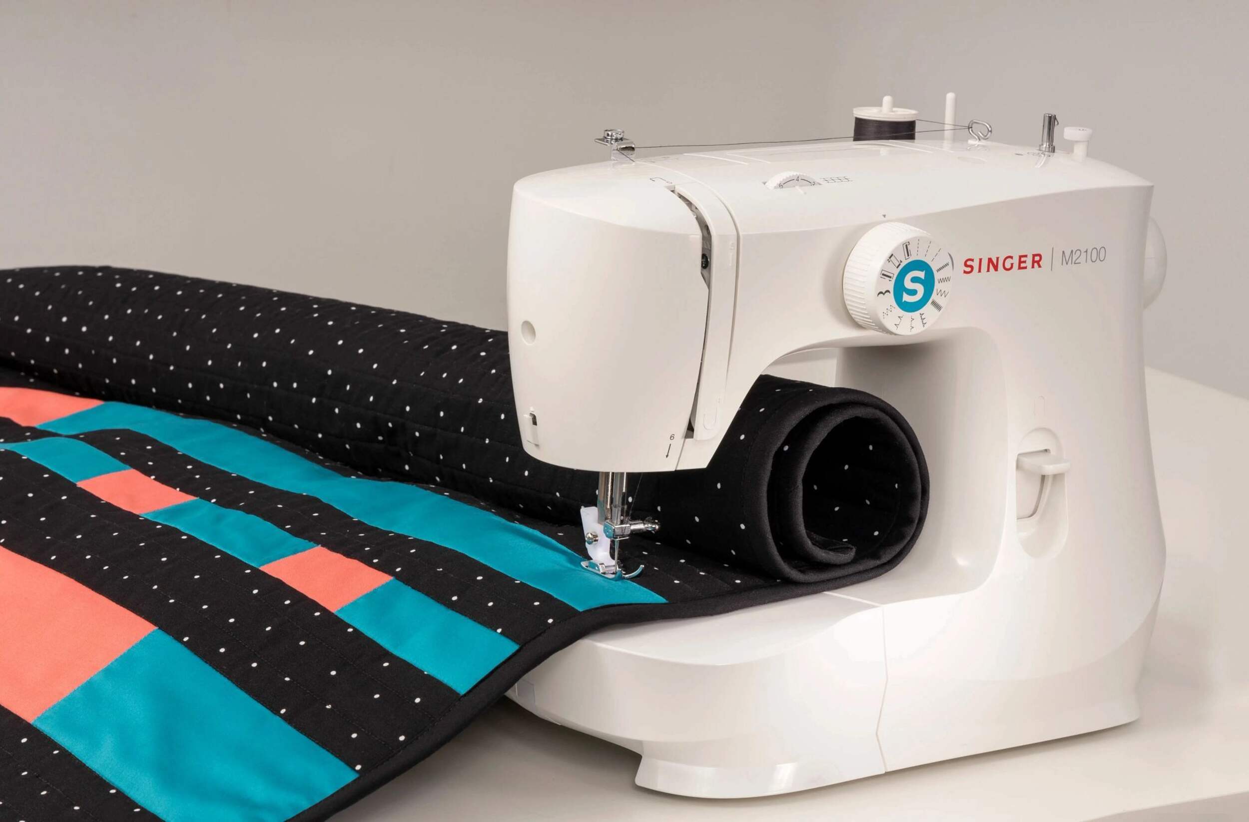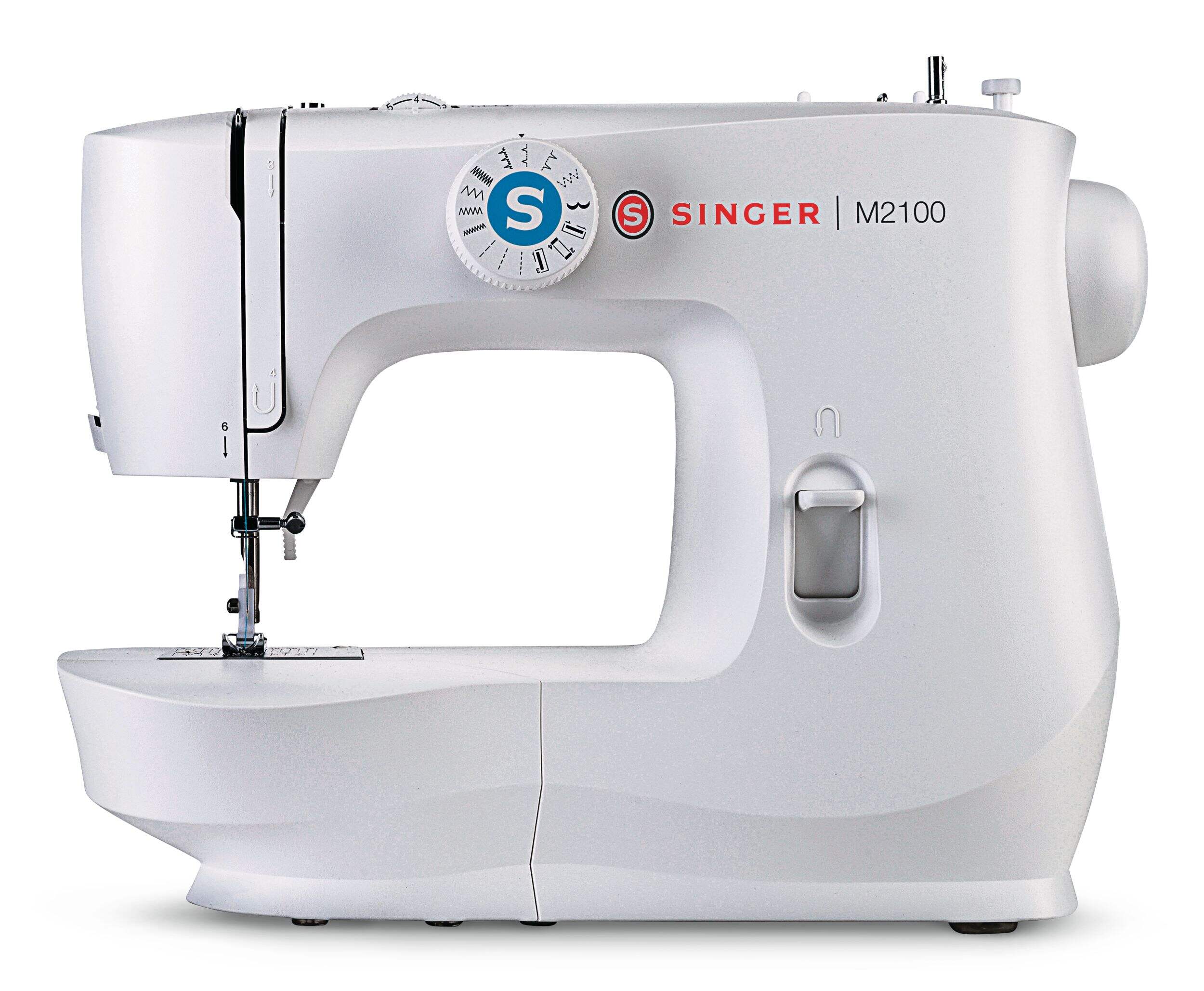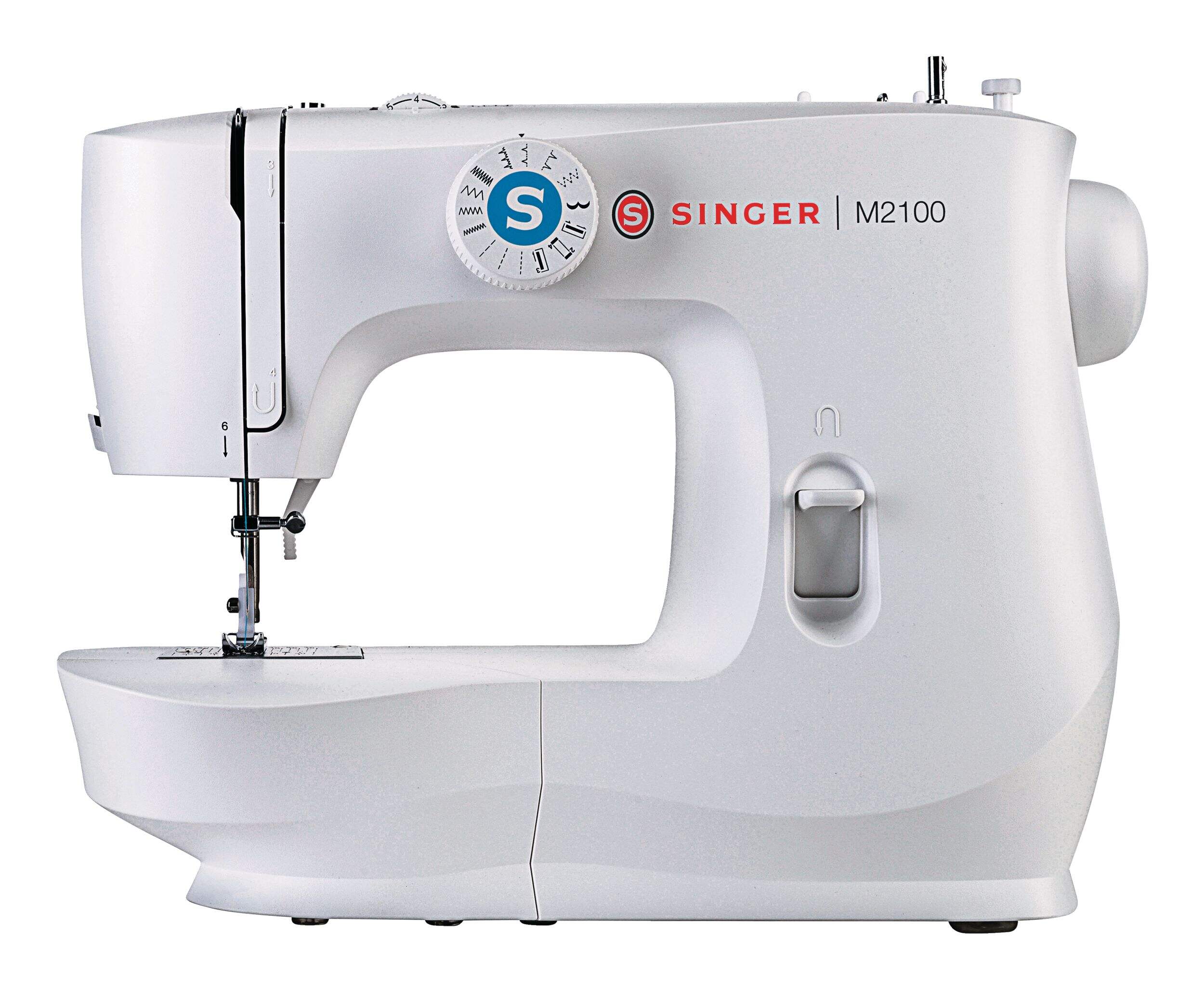 Handle all your home sewing needs with the Singer M2100 Sewing Machine, featuring eight built-in stitches and a four-step buttonhole function. An ideal machine for the beginner sewer, this lightweight and portable model offers 63 stitch applications, all with pre-set stitch lengths and widths to eliminate complicated guesswork. Use it for sewing clothing, home decor, quilts, crafts and more. The M2100 sewing machine comes with a dust cover to keep it protected when not in use.