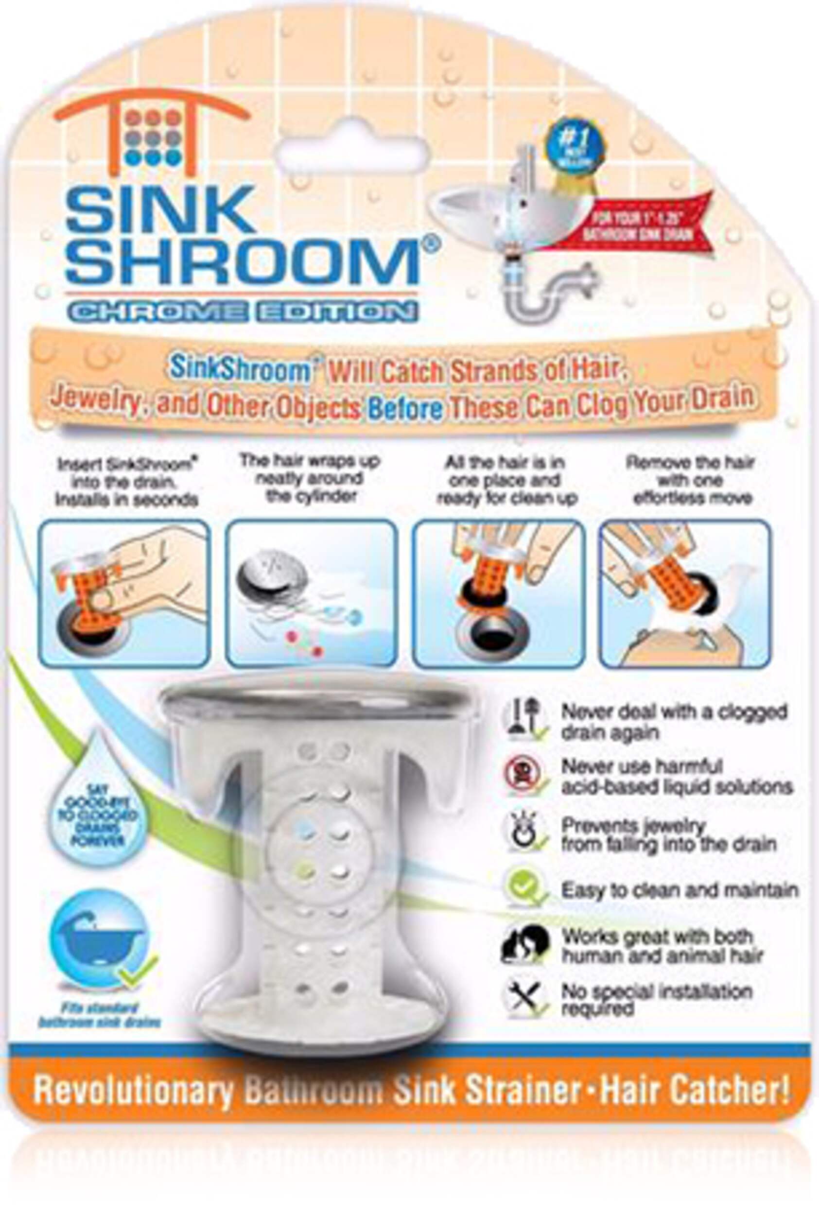 The SinkShroom hair catcher is an easy way to keep your bathtub and sink drains clean and unclogged. Simply place the strainer over the drain where it suctions in place. As you shower or wash hands and face, the SinkShroom's flexible silicone arms trap hair and other particles before they can go down the drain. When full, simply empty the catcher and reuse - no chemicals or special installation needed. Say goodbye tostopped up drains and potential expensive plumber bills, and hello to hassle-free drain maintenance with the convenient and effective SinkShroom.