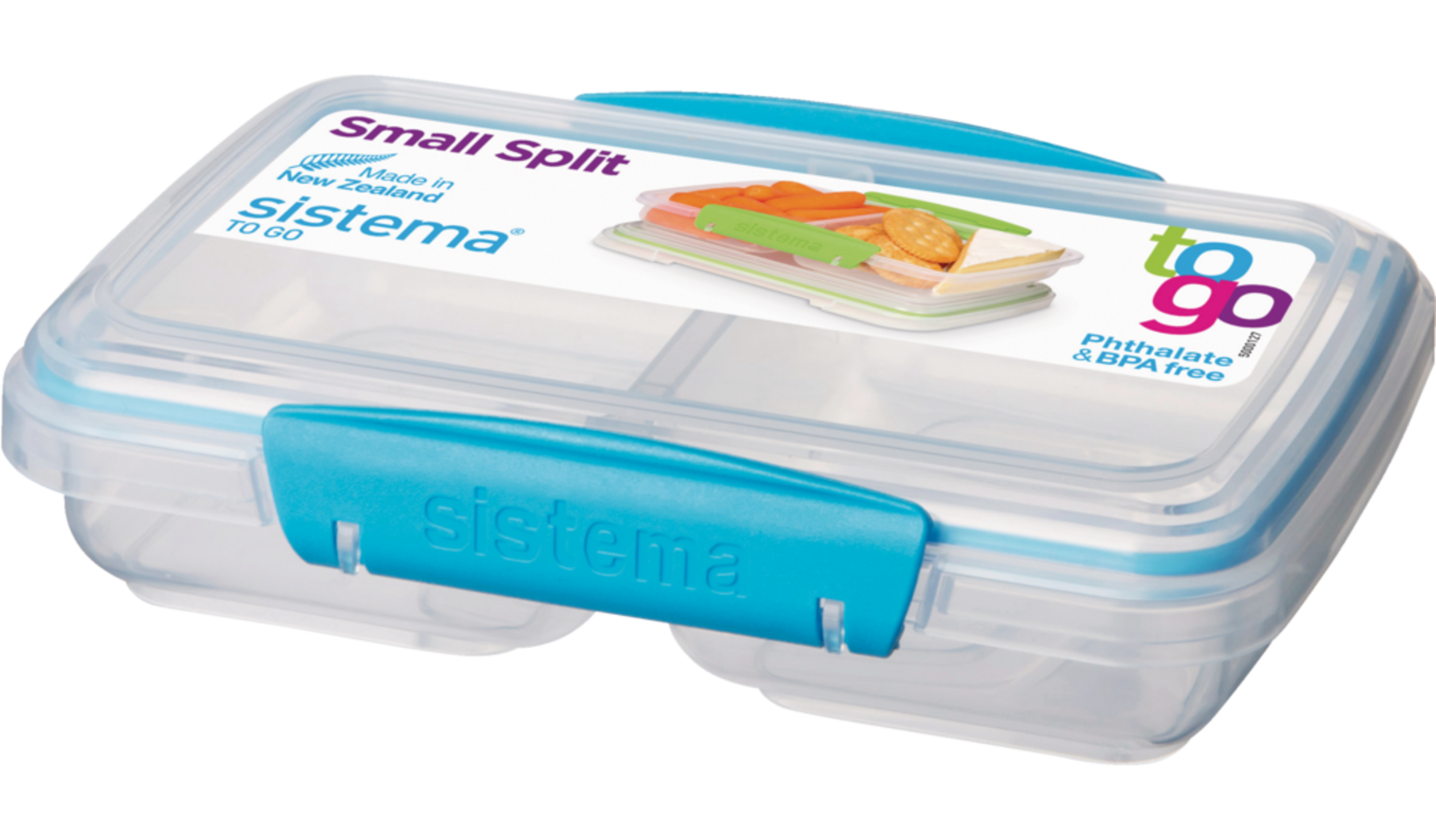 The Sistema Small Split To Go Food Storage Container is the ideal solution for storing snacks, meal prep, or to-go meals. Its split design allows you to keep two different foods separate, making it convenient for combinations like chips and dip, granola and yogurt, or fruit and nuts. This container ensures that your food stays fresh longer. It's safe to use in the microwave (without lid), fridge, freezer, and top-rack dishwasher.