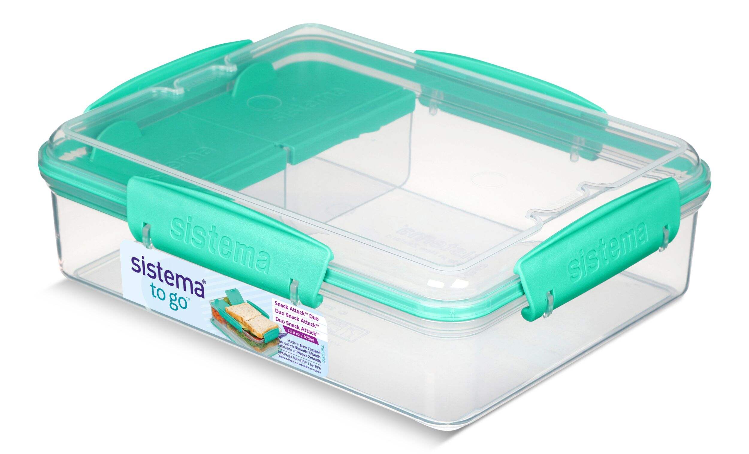 The Sistema® Snack Attack™ Duo To Go™ Plastic Food Storage Container is perfect for taking snacks or small meals with you wherever you go. The plastic construction ensures safe food storage, while the easy-locking clips and flexible seal keep food secure and prevent spills. The freezer-safe material is handy for storing pre-packed snacks later. Whether you’re packing lunch for work, school, or a picnic, this container makes it easy to transport your favourite foods with confidence.