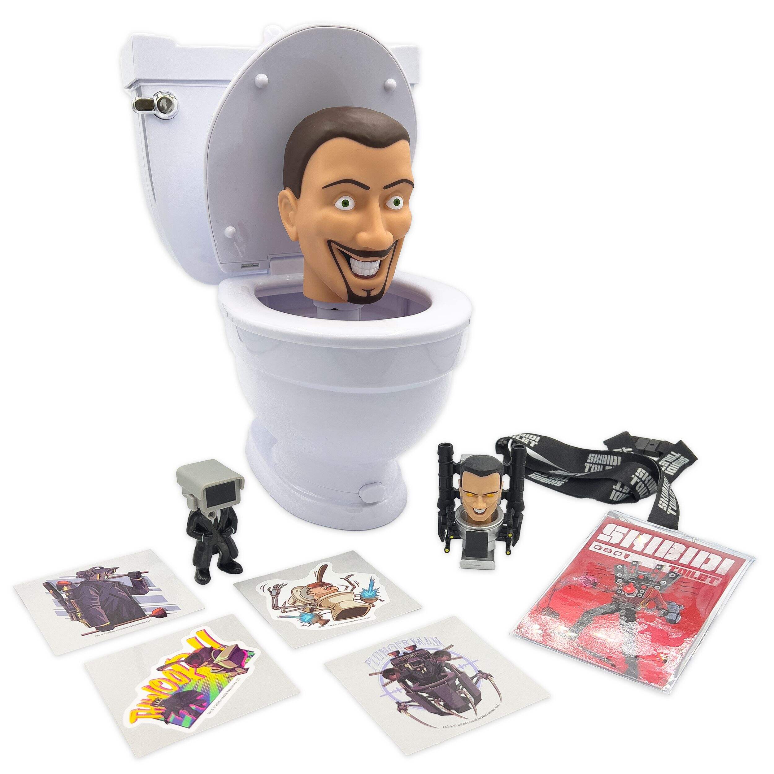 Interactive Skibidi Toilet toy with a spring-loaded head that pops out and plays popular sounds