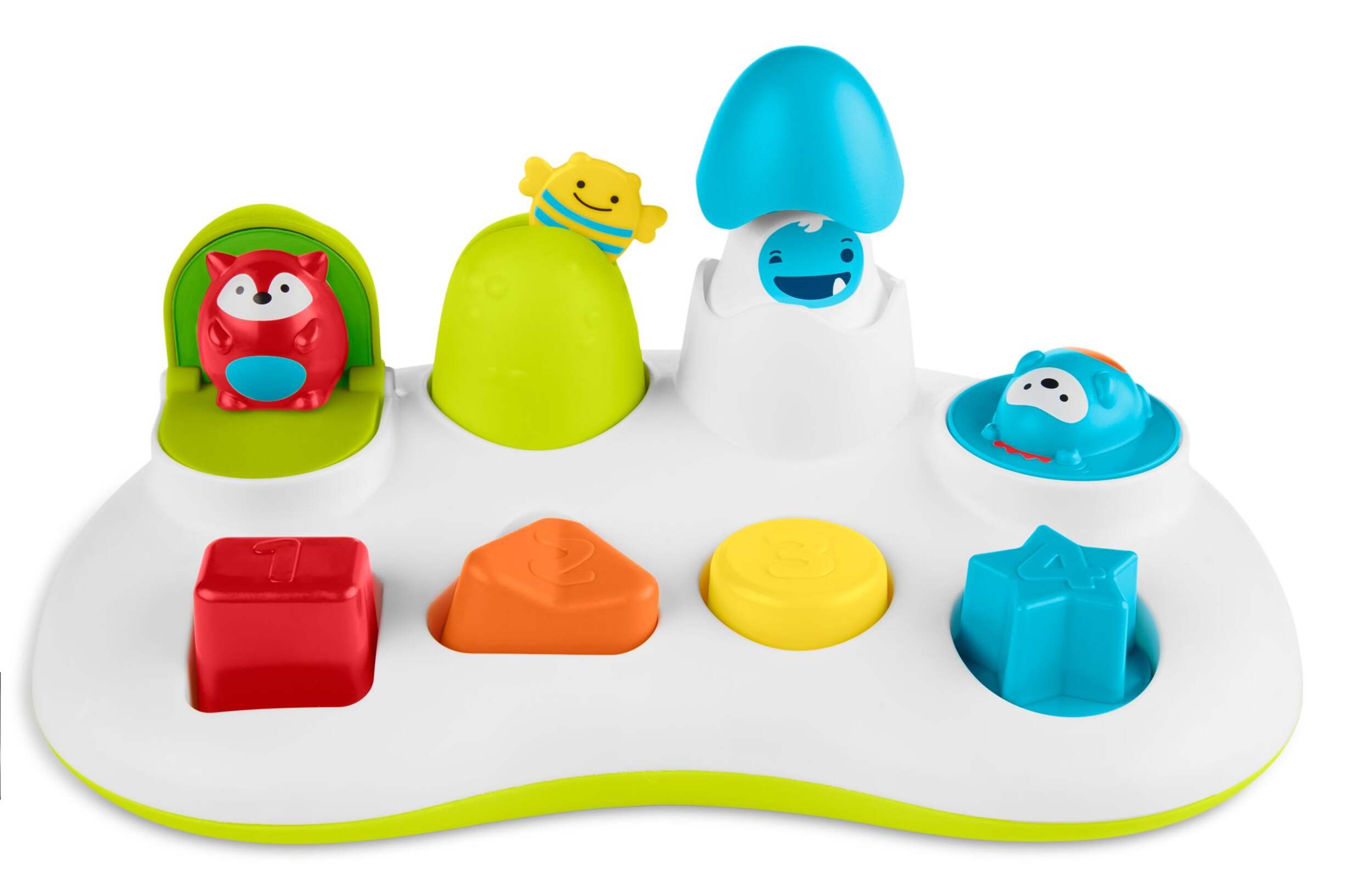 Skip Hop Explore and More Pop Up Toy helps teach cause and effect and simple counting