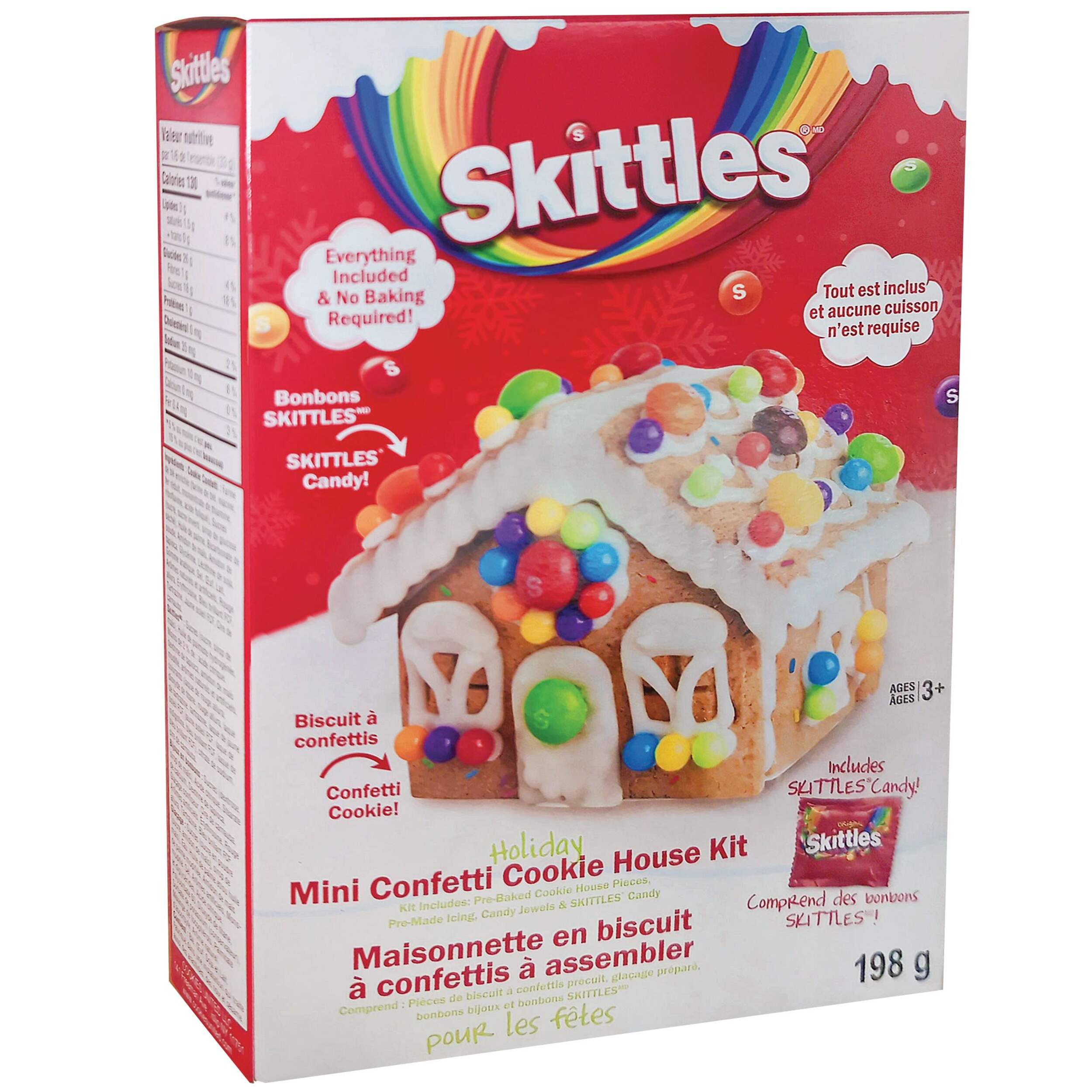 The Skittles Holiday Mini Confetti Cookie House Decorating Kit offers a fun family activity. Construct a mini house using confetti cookie pieces, then decorate it with colorful icing and iconic Skittles candy. This festive cookie decorating kit provides a creative way to spend quality time together this Christmas while enjoying the delicious taste of Skittles.
