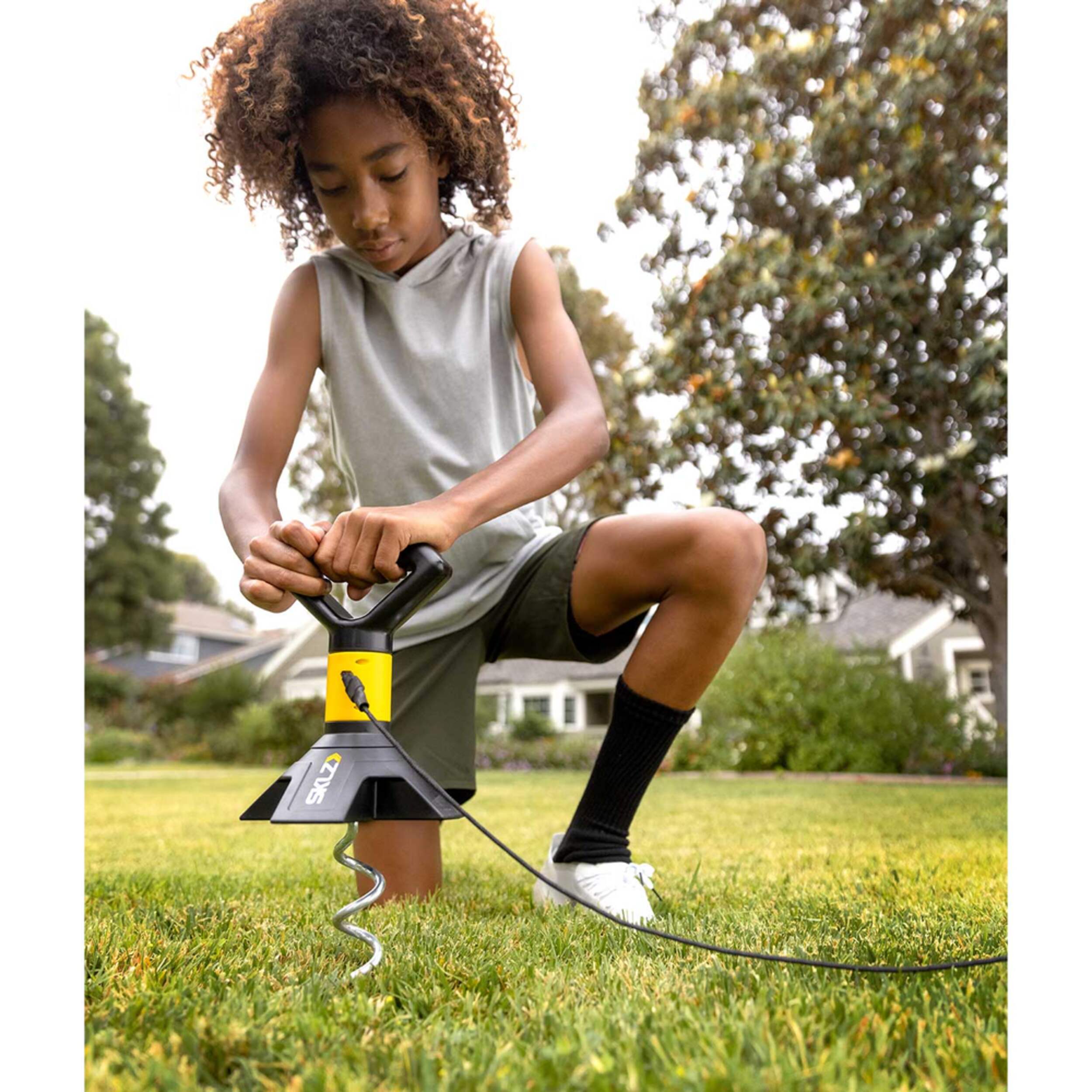 Easily anchor and secure spiral spike into grass