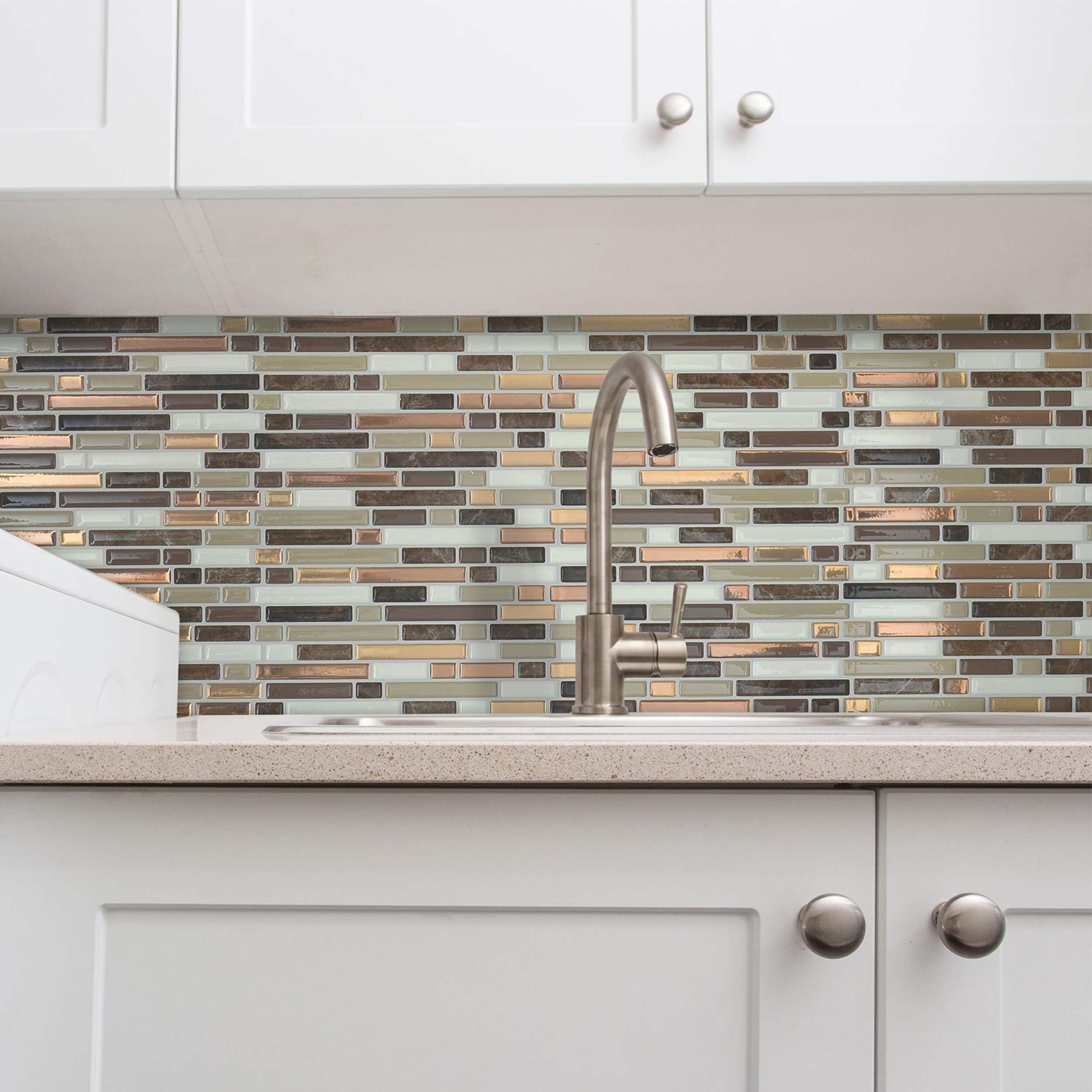 Remake your bathroom or kitchen backsplash with the Smart Tiles Peel and Stick Tiles