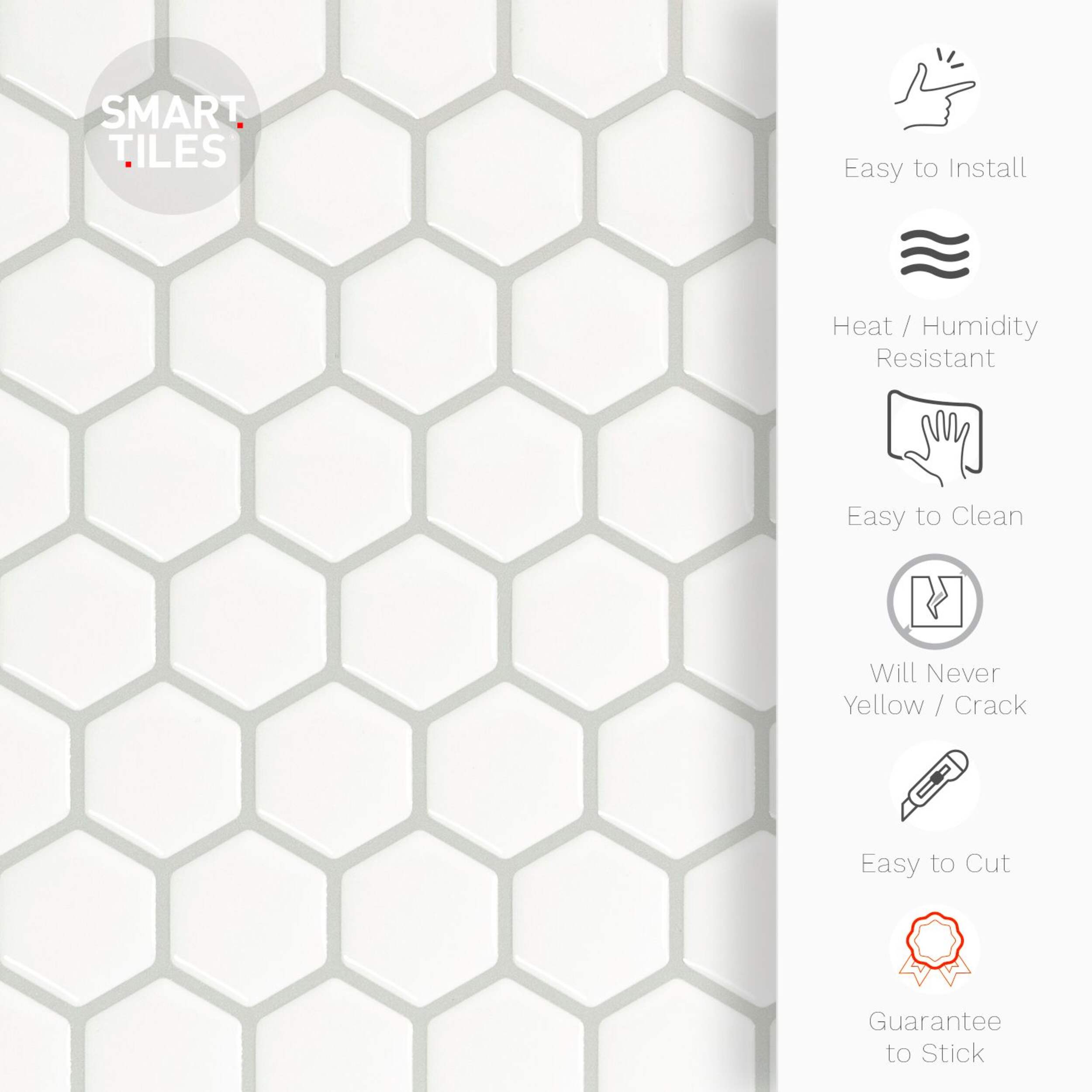 Smart Tiles are robust and resistant to heat from kitchen cooktops. They are also suitable as a backsplash in bathrooms (not suitable for inside the shower) or even around a fireplace. Follow the installation instructions to ensure a long lifespan and a trendy, smart new look for your interior. No more messy, time-consuming tile installations with grout or glue. Clean and dust-free installation is all but assured. These smart tiles are designed with a patented gel component called Gel-O, which gives them a 3-dimensional effect.