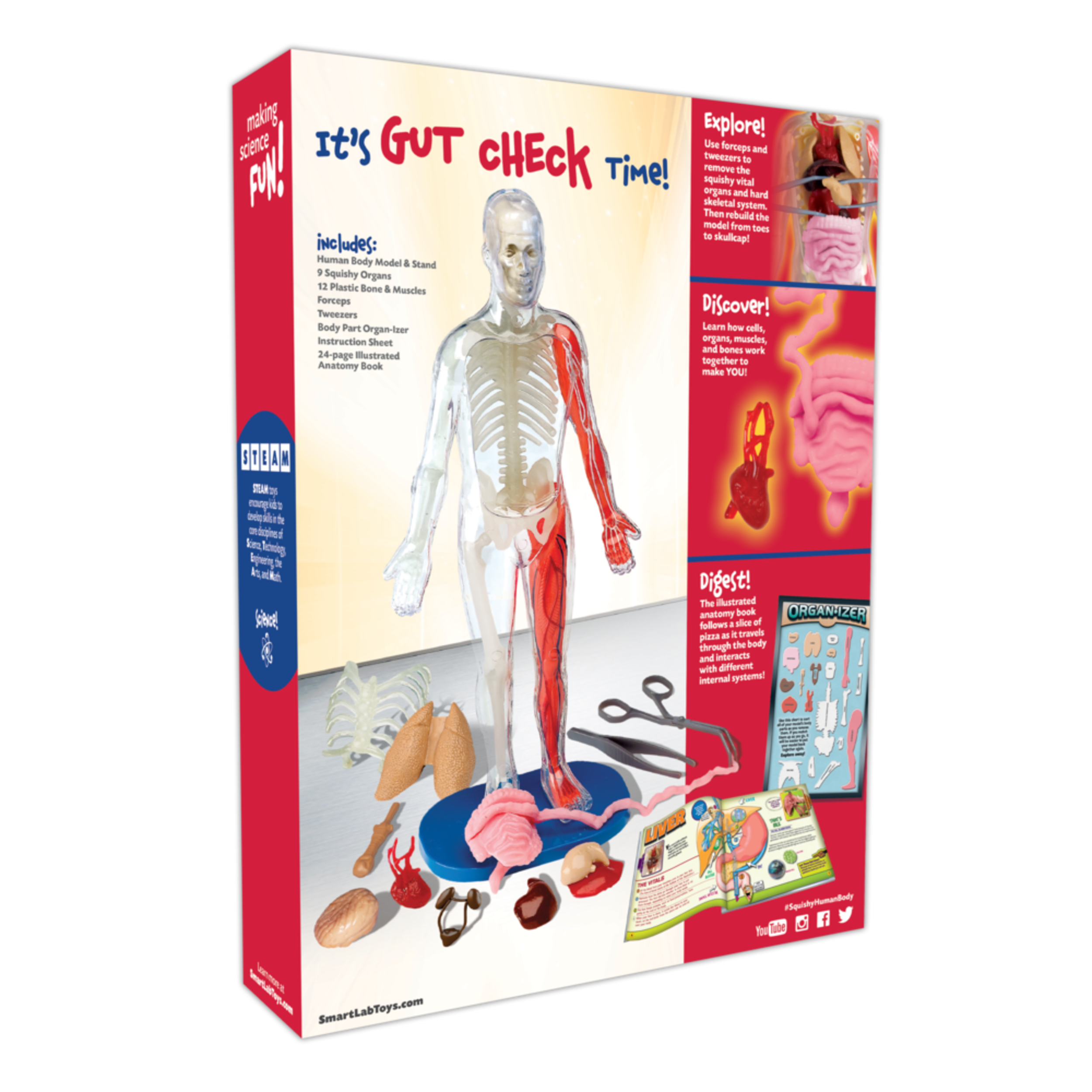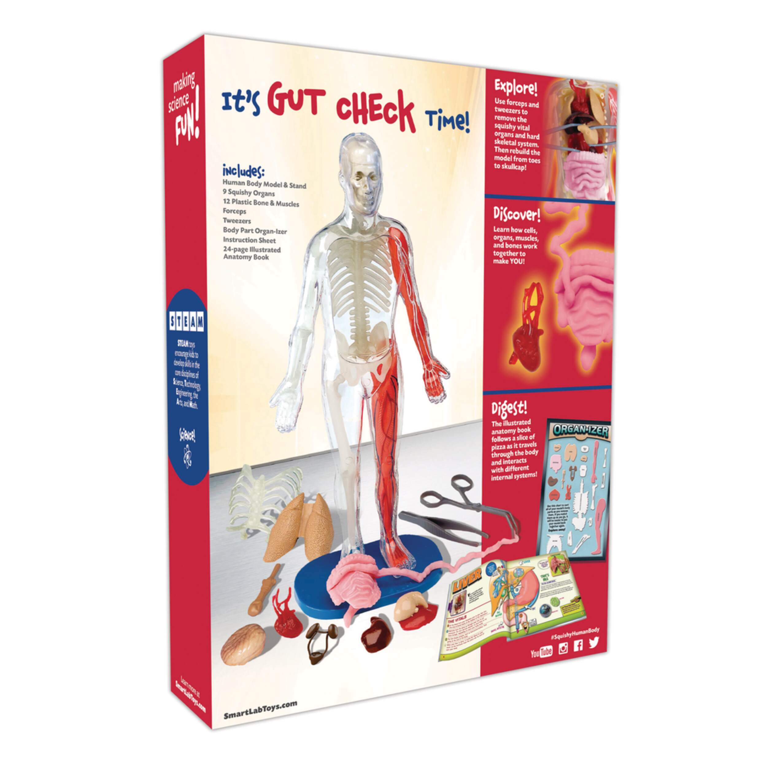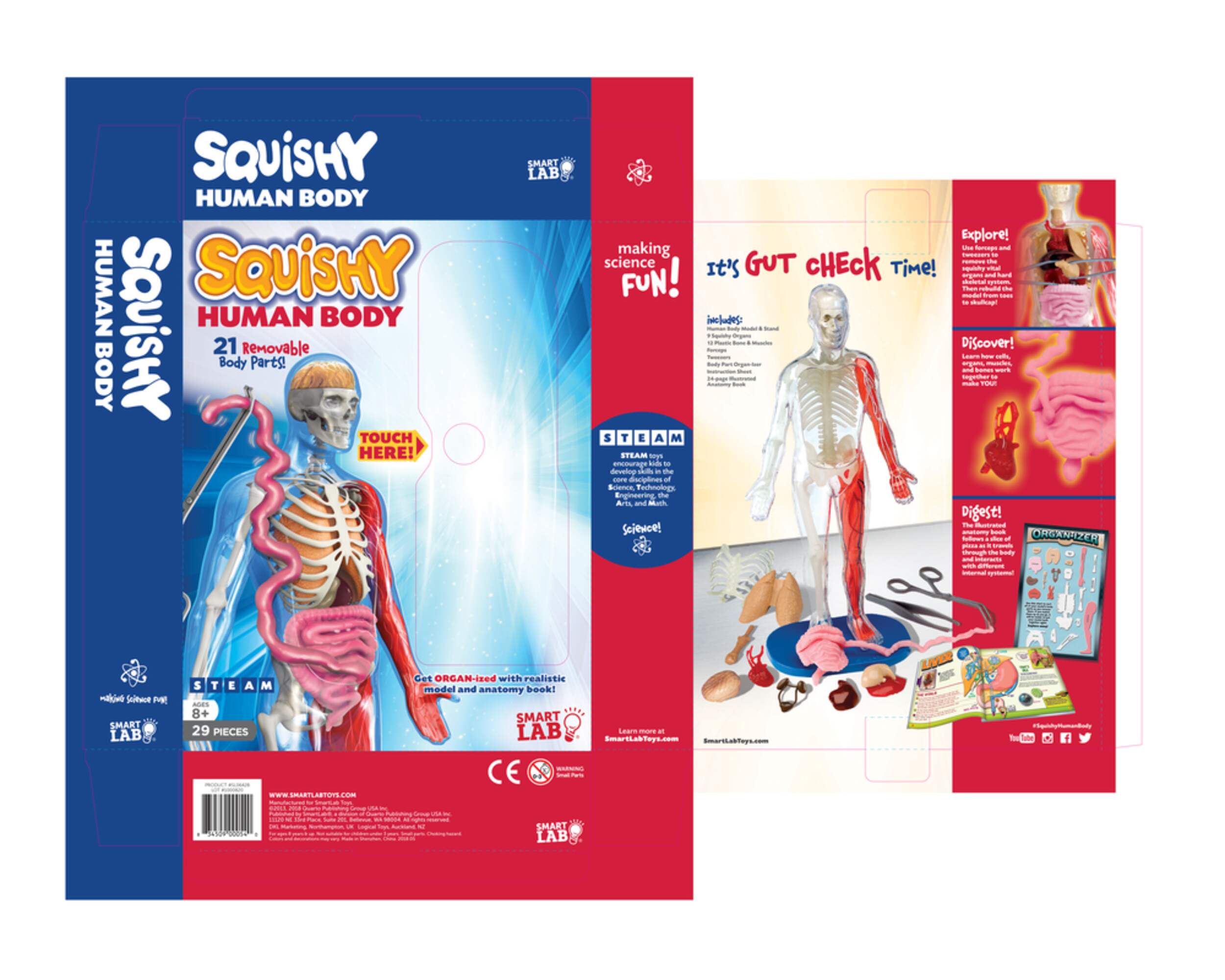 Squishy Human Body by Smart Lab comes with 21 removable body parts and an anatomy book to teach you all about the human body! Explore! Discover! Digest!