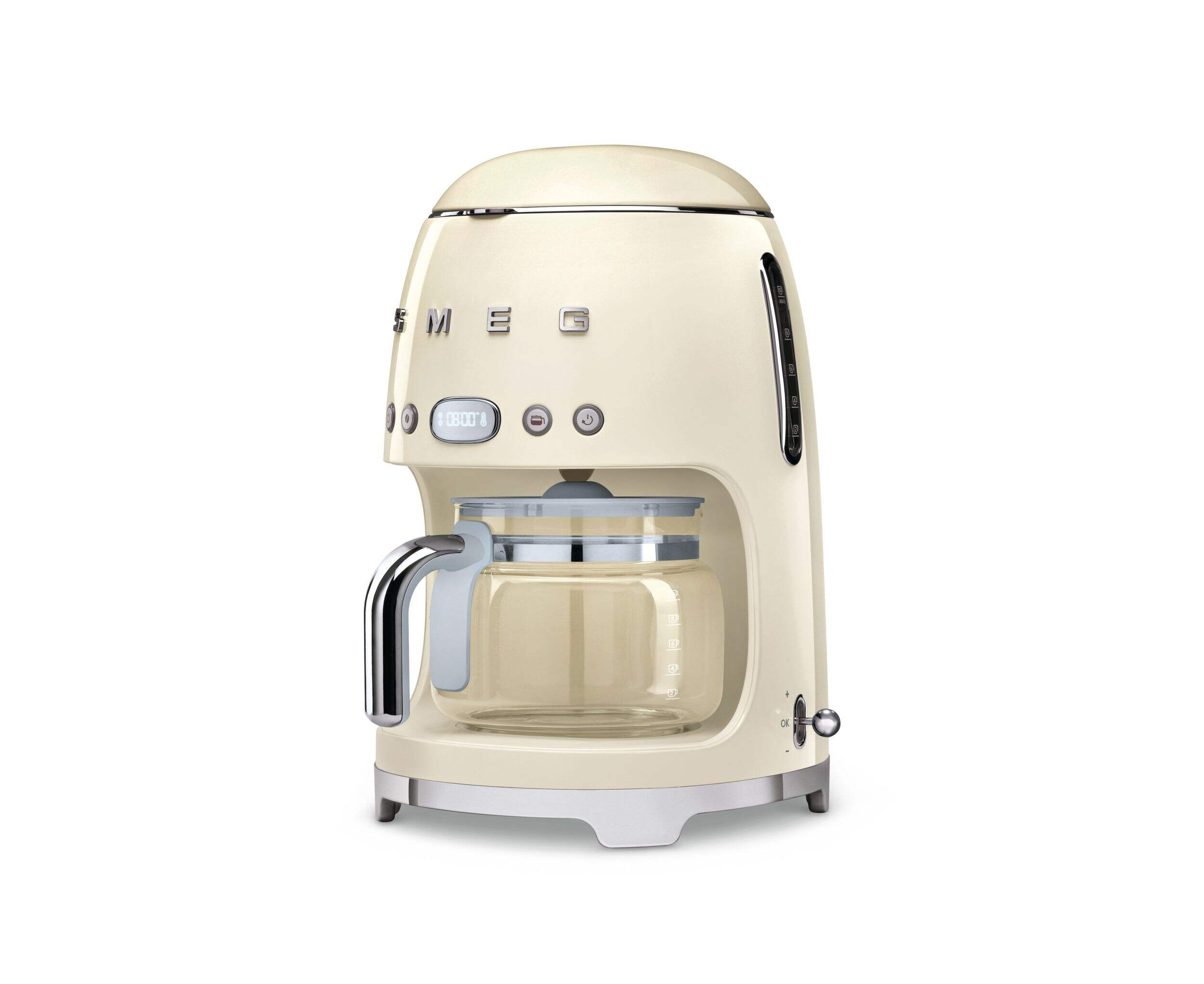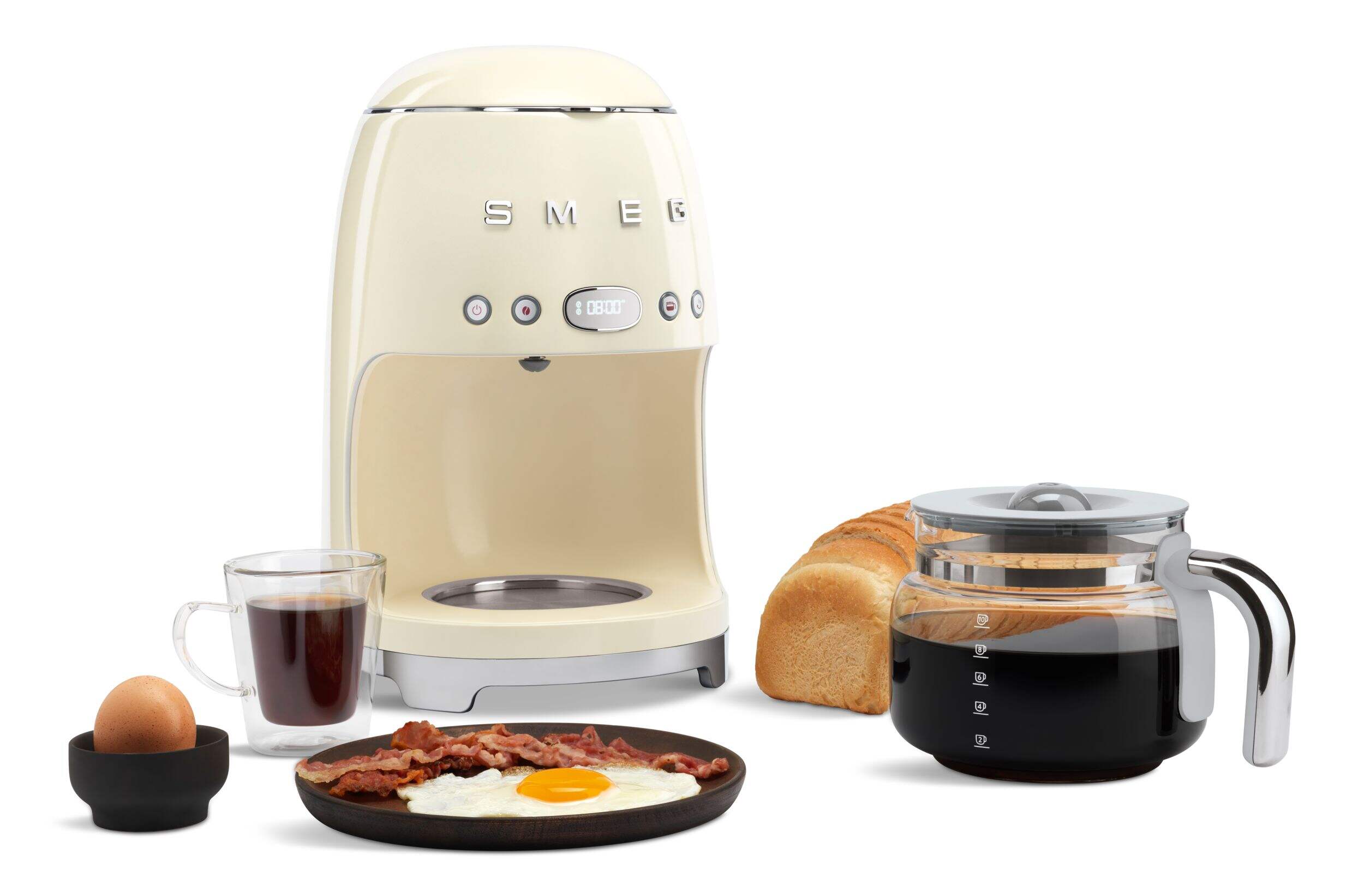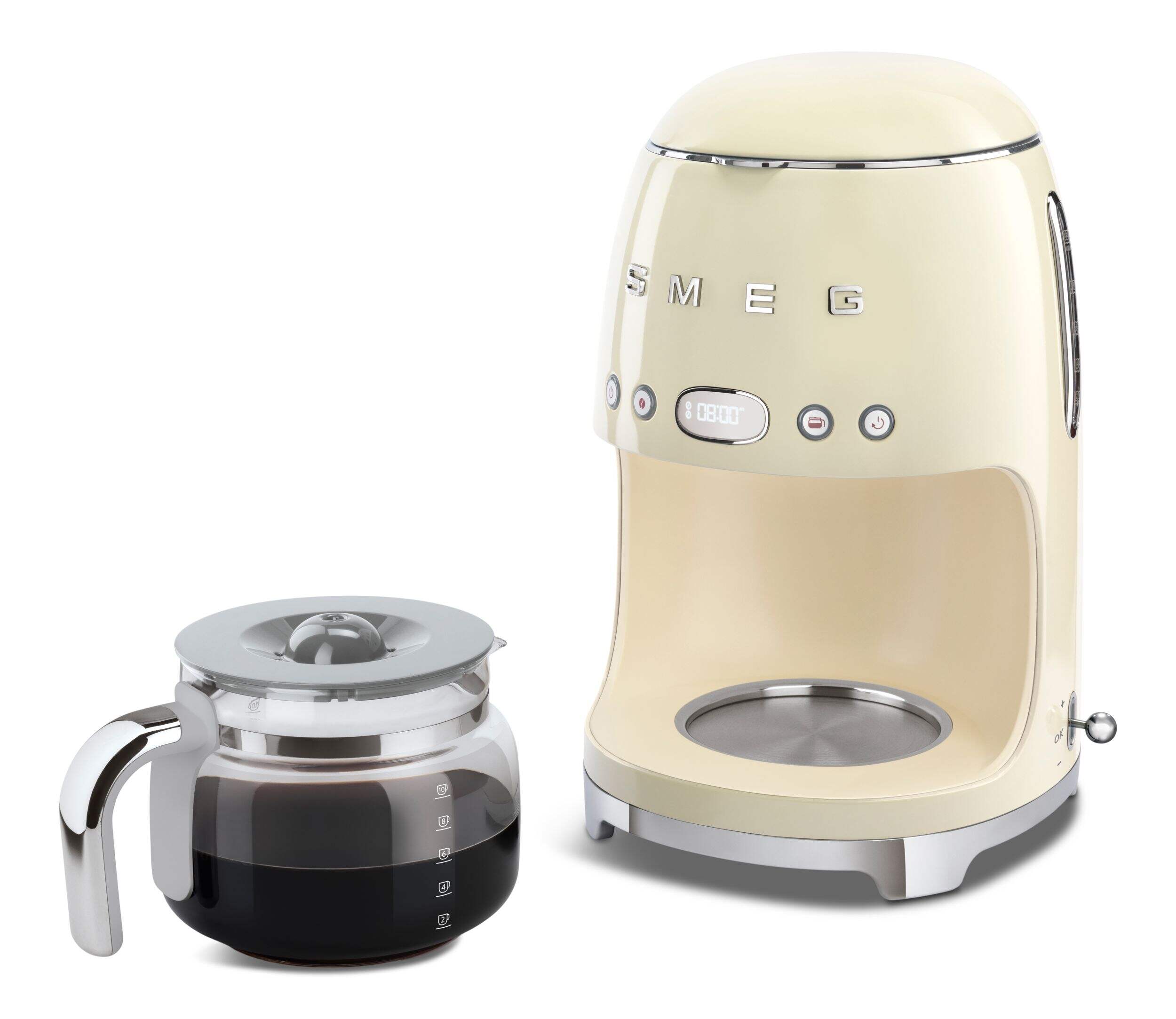 Start your day with the stylish Smeg 50's Style Programmable 10-Cup Drip Coffee Maker. This retro-inspired machine offers precision with an LED display and water level indicator. Enjoy a quick brew option for 4 cups, and keep your coffee at the perfect temperature with the keep warm function. The auto start feature lets you wake up to freshly brewed coffee at any time, making mornings more convenient.