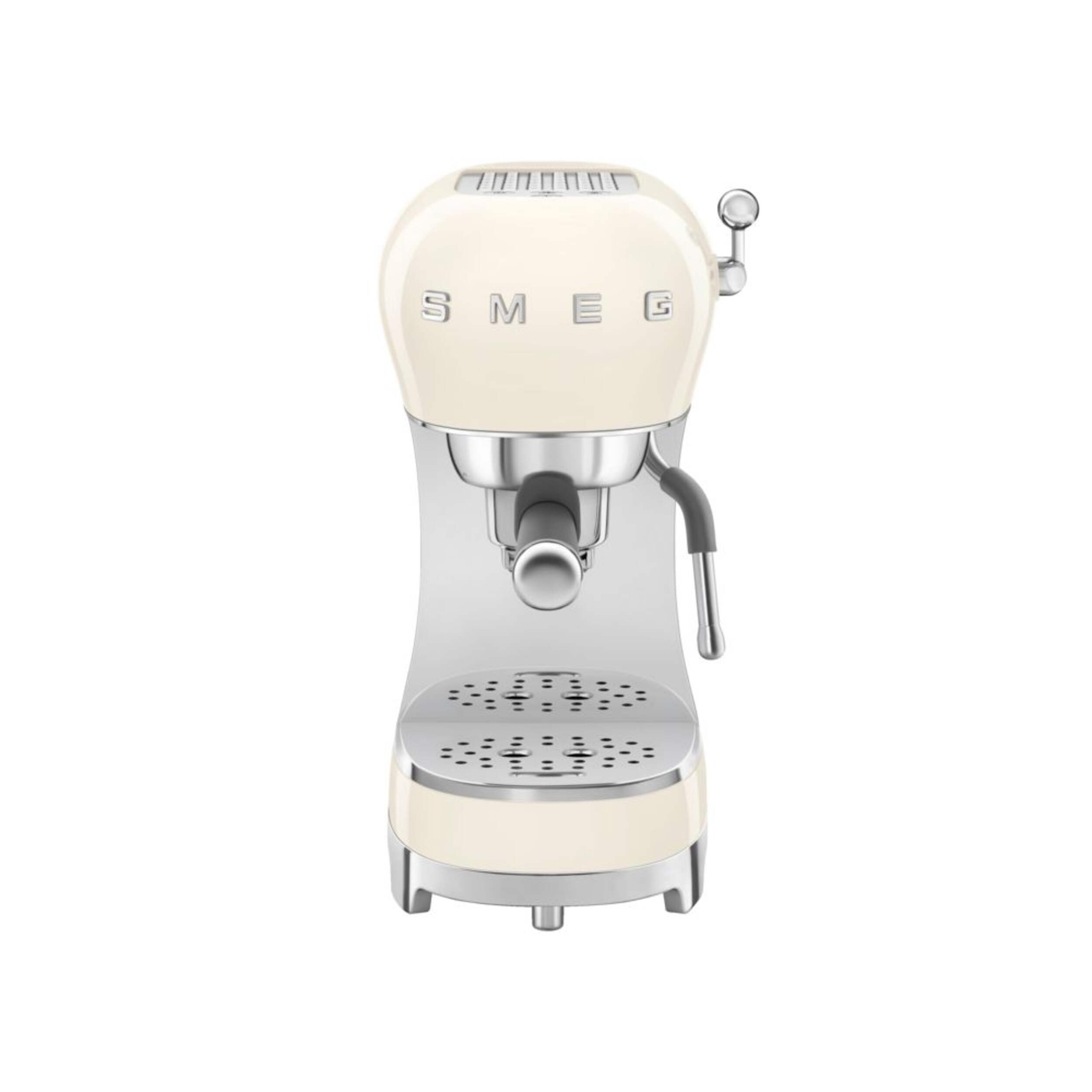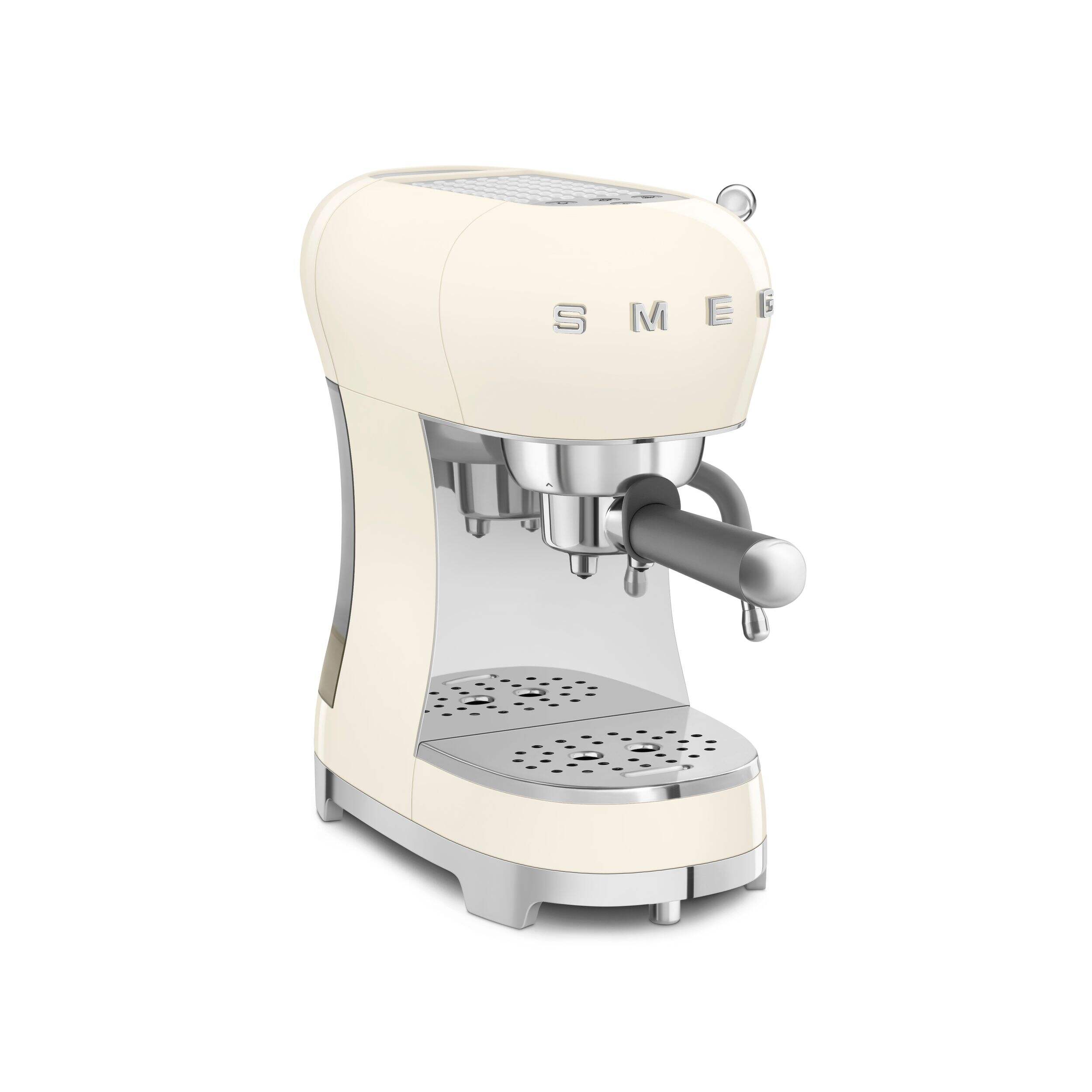 Brew authentic Italian espresso at home with the SMEG Manual Espresso Coffee Machine in Cream. Designed with a powerful 15-bar pump and a thermoblock heating system, this elegant machine delivers fast heat-up and precise temperature control for rich, full-bodied coffee. Its compact footprint fits seamlessly on any kitchen counter, while the removable drip tray allows for easy cleaning and accommodates larger mugs. Compatible with both ground coffee and pods, it offers versatile brewing options, and the integrated Cappuccino System produces smooth, velvety foam for lattes and cappuccinos. With its retro-inspired design and high-performance features, this espresso machine is ideal for coffee lovers who appreciate both style and quality.