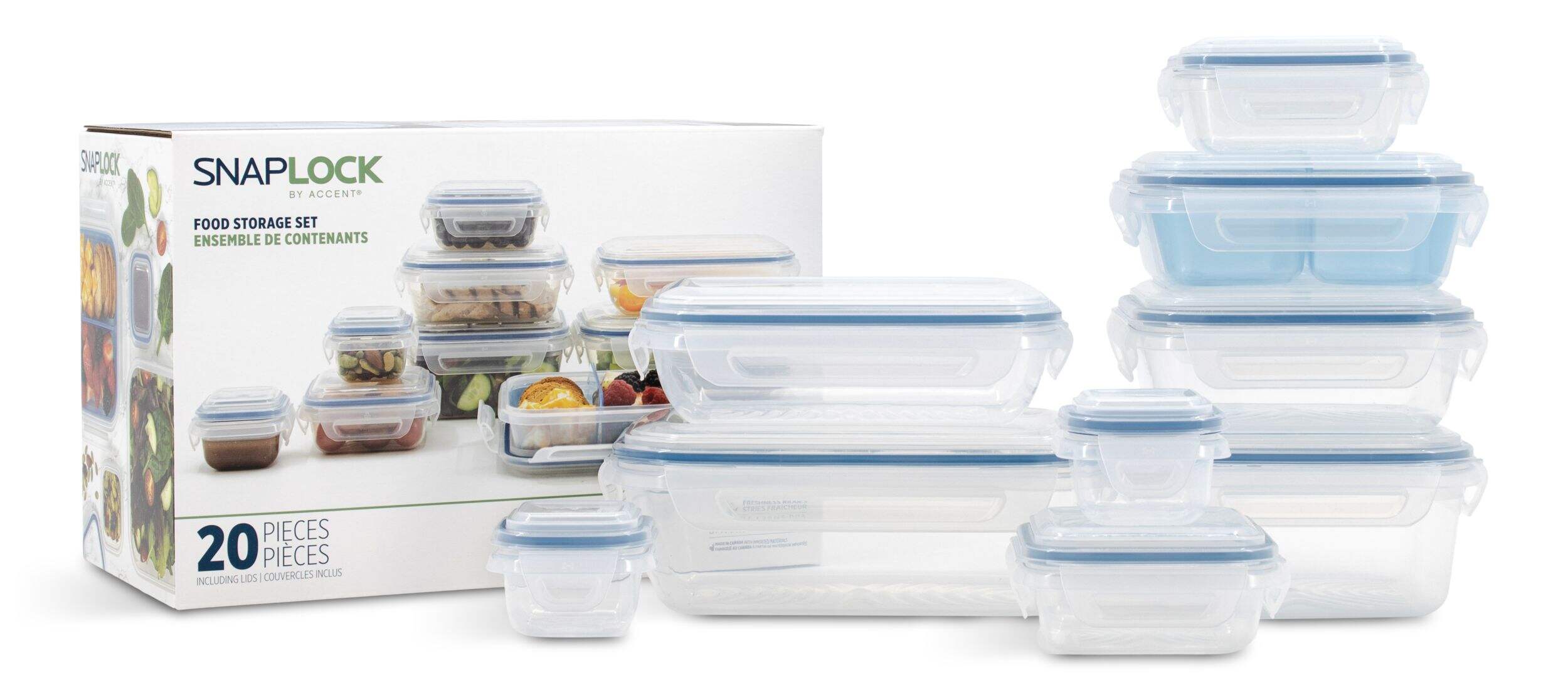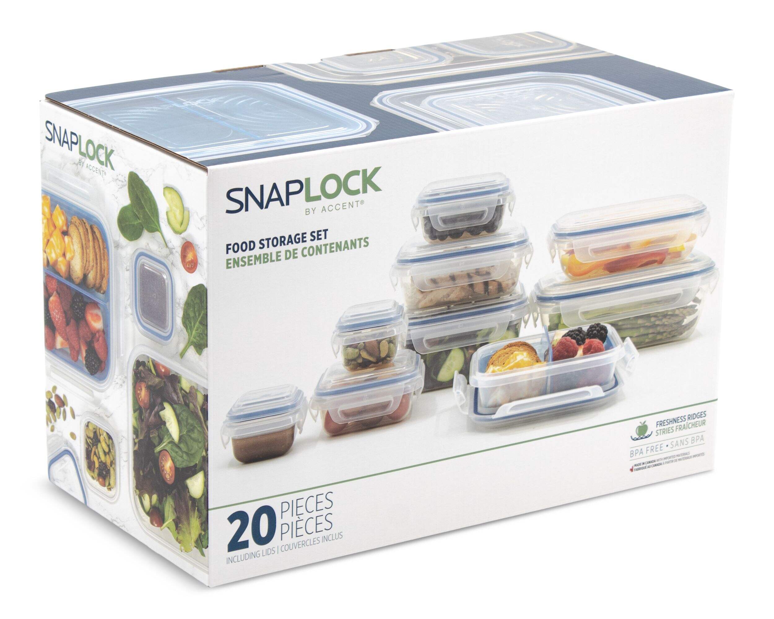 Make it easier than ever to preserve food and prevent spills with this Snaplock Food Storage Container Set. This nestable container set is perfect for food preparation, leftovers and food storage, and the clear plastic containers make it quick and easy to identify contents at a glance. These containers feature locking tabs on all sides to keep out air and moisture, helping to keep your food fresher for longer.