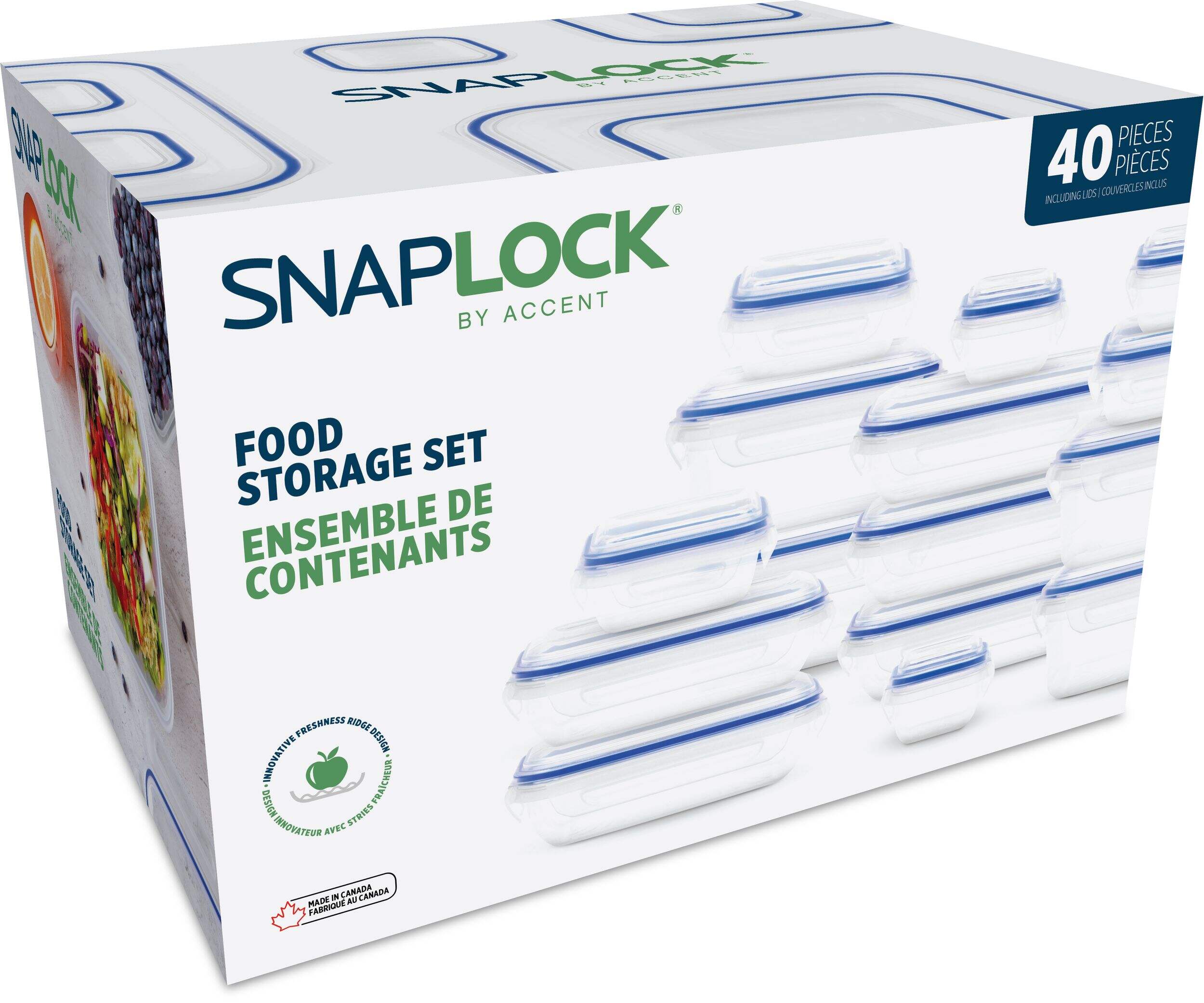 Elevate your meal prep and food storage with the SnapLock 40-piece Plastic Food Storage Container Set. This versatile set includes plastic containers and leakproof lids, all designed to work together for maximum convenience. Designed to nest within each other, they maximize cabinet space and eliminate the hassle of mismatched lids. Durable and shatter-resistant, SnapLock containers are ideal for packing healthy lunches or storing meals for later.