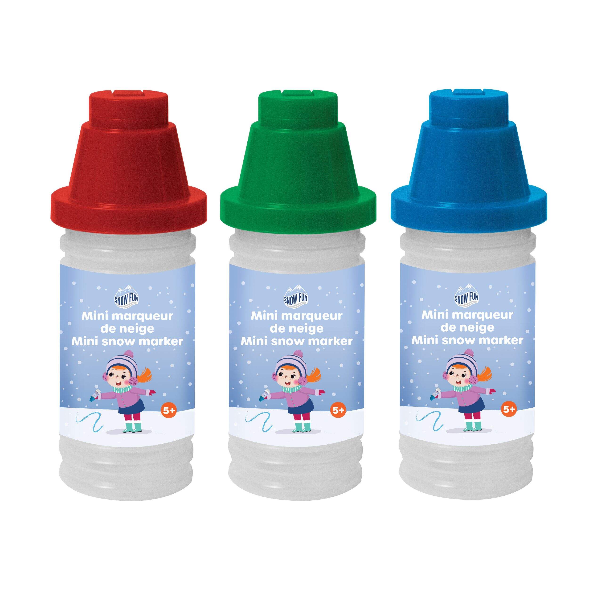 Kit includes snowman parts, 2 Sno sprayers, 3 Sno markers, 5 snow colour packets, 2 snow stencils and 2 snow molds
