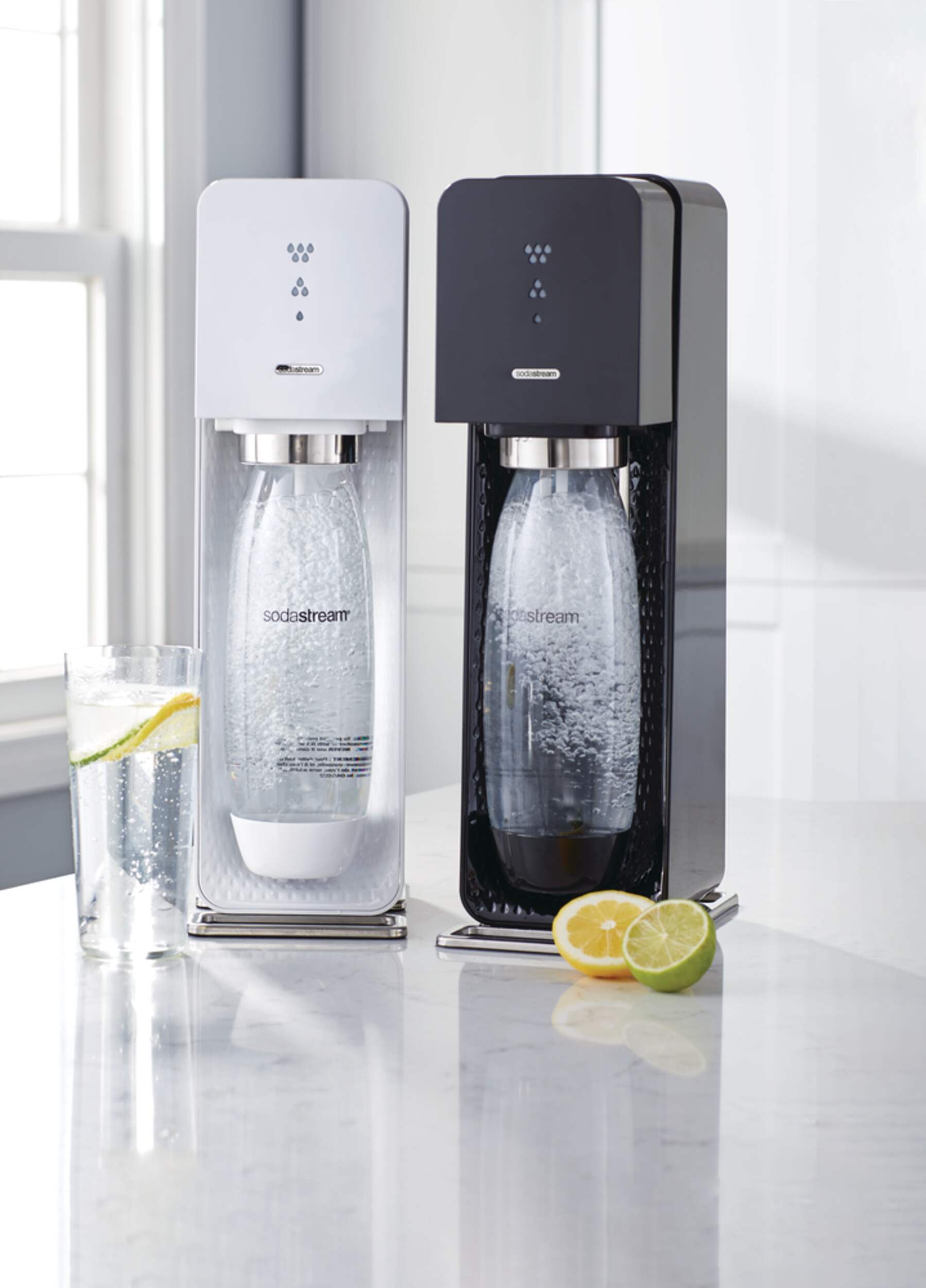 SodaStream Source Sparkling Water Maker takes your tap water from flat to fizzed in seconds. This award winning beverage maker was designed by designer Yves Behar and allows you to customize your level of carbonation.