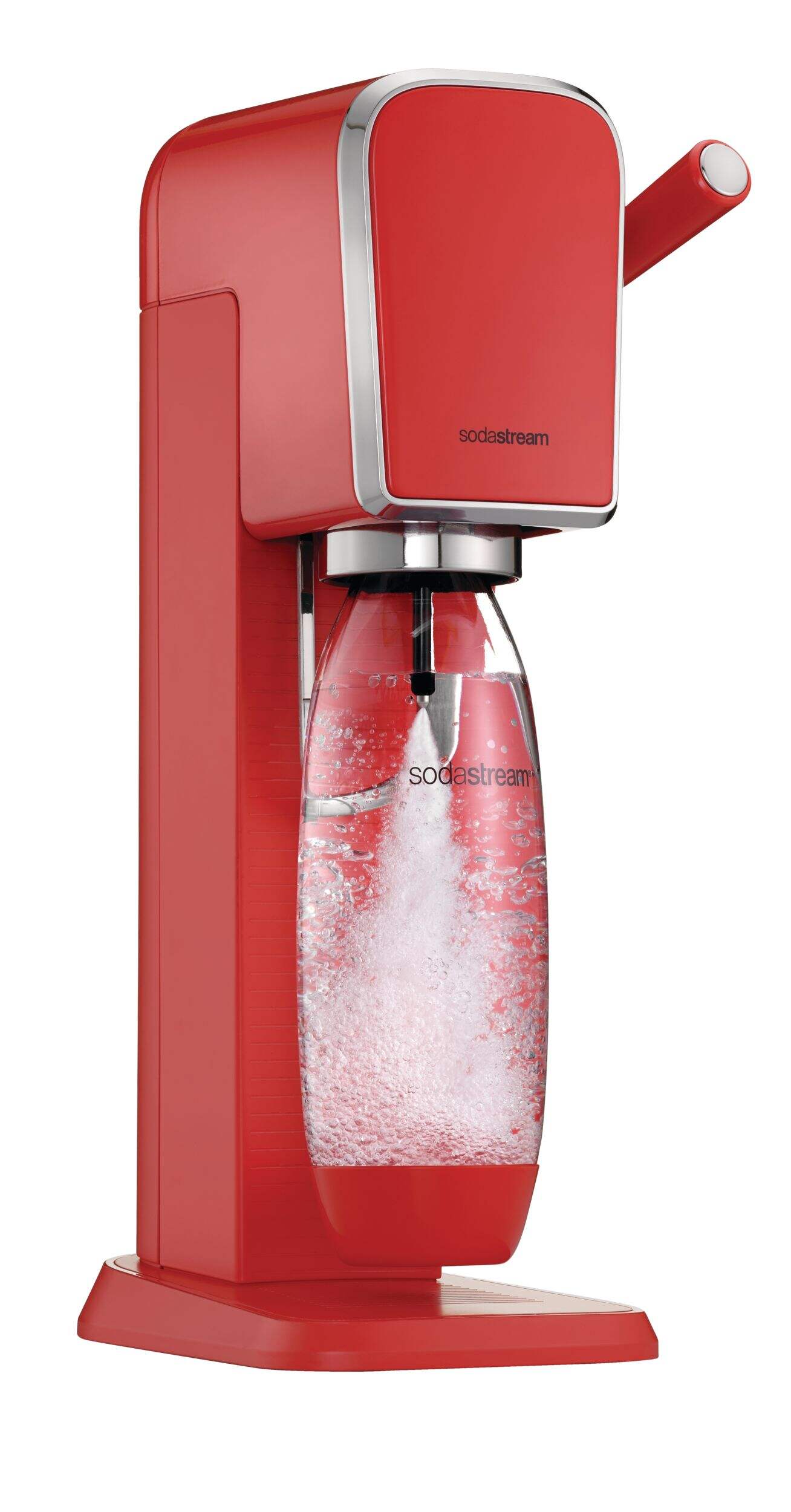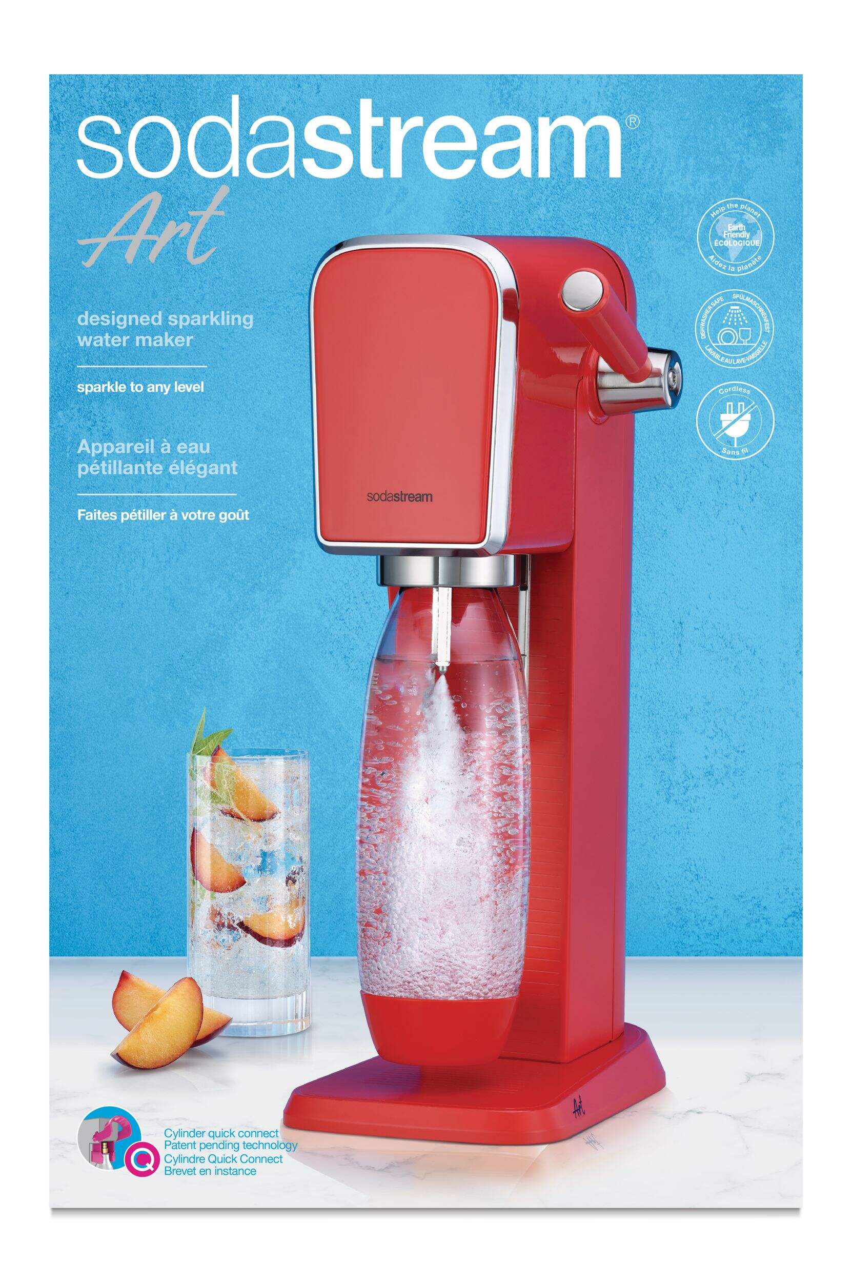 The SodaStream Art sparkling water maker brings bubbly beverages right to your countertop. The cordless, compact design allows flexible placement and its premium stainless steel build stands up to regular wear and tear. Simply add fresh tap water to the reusable bottle, insert a Co2 cylinder using the Quick Connect technology and press a button to infuse your water with just the right amount of carbonation - perfect for elevating an ordinary glass of water into a refreshing drink.