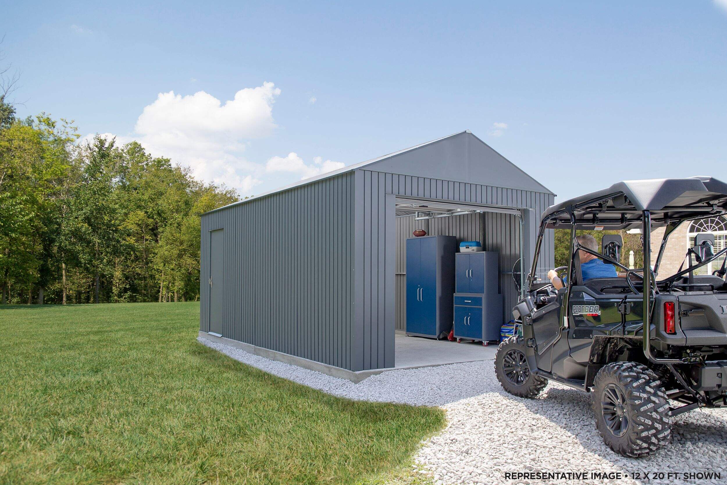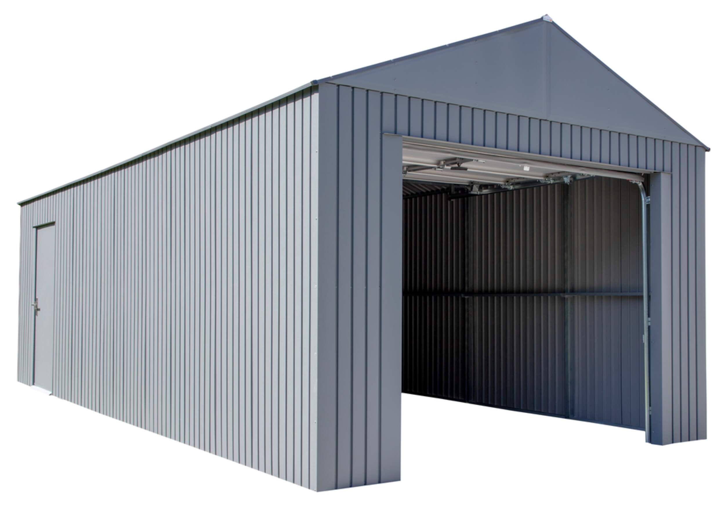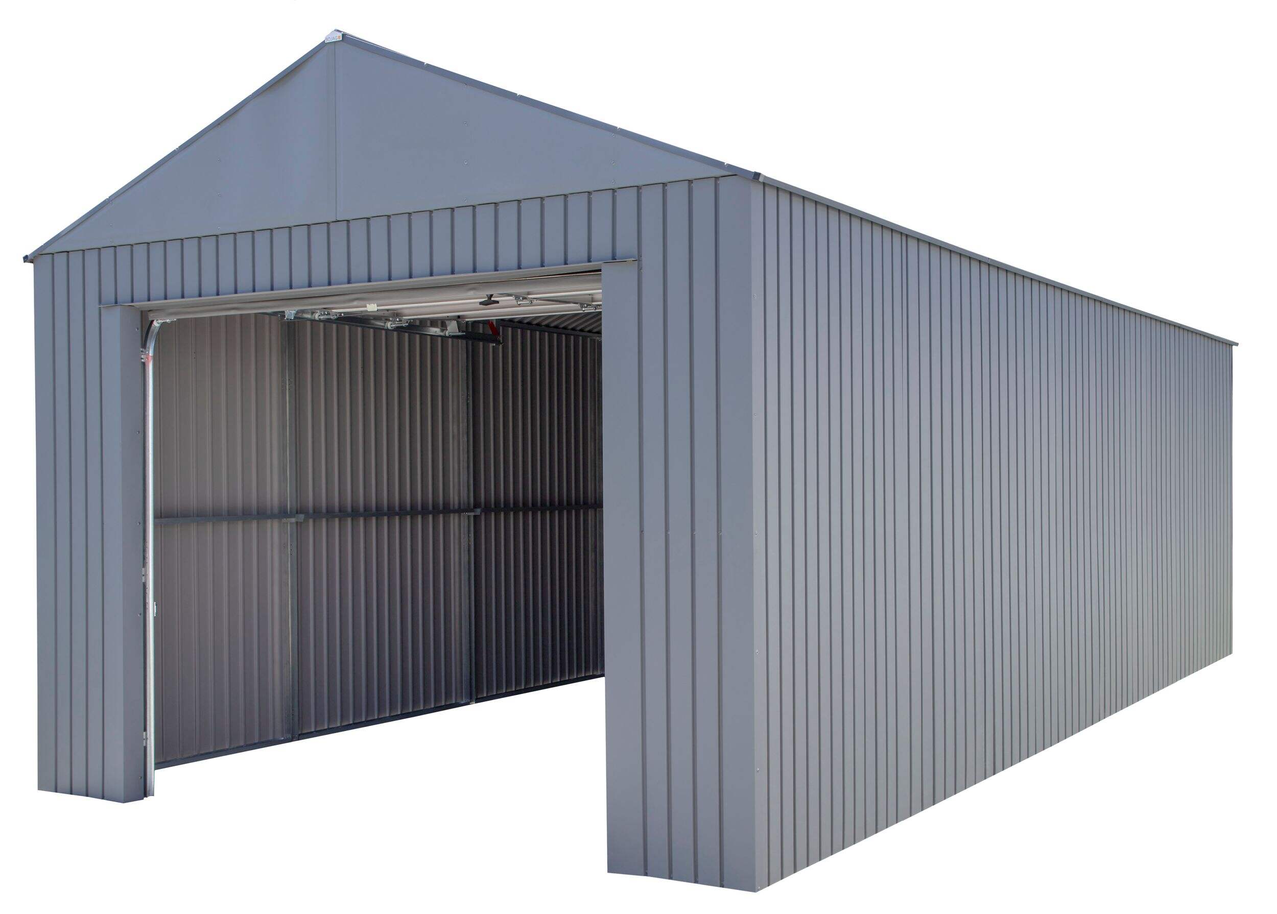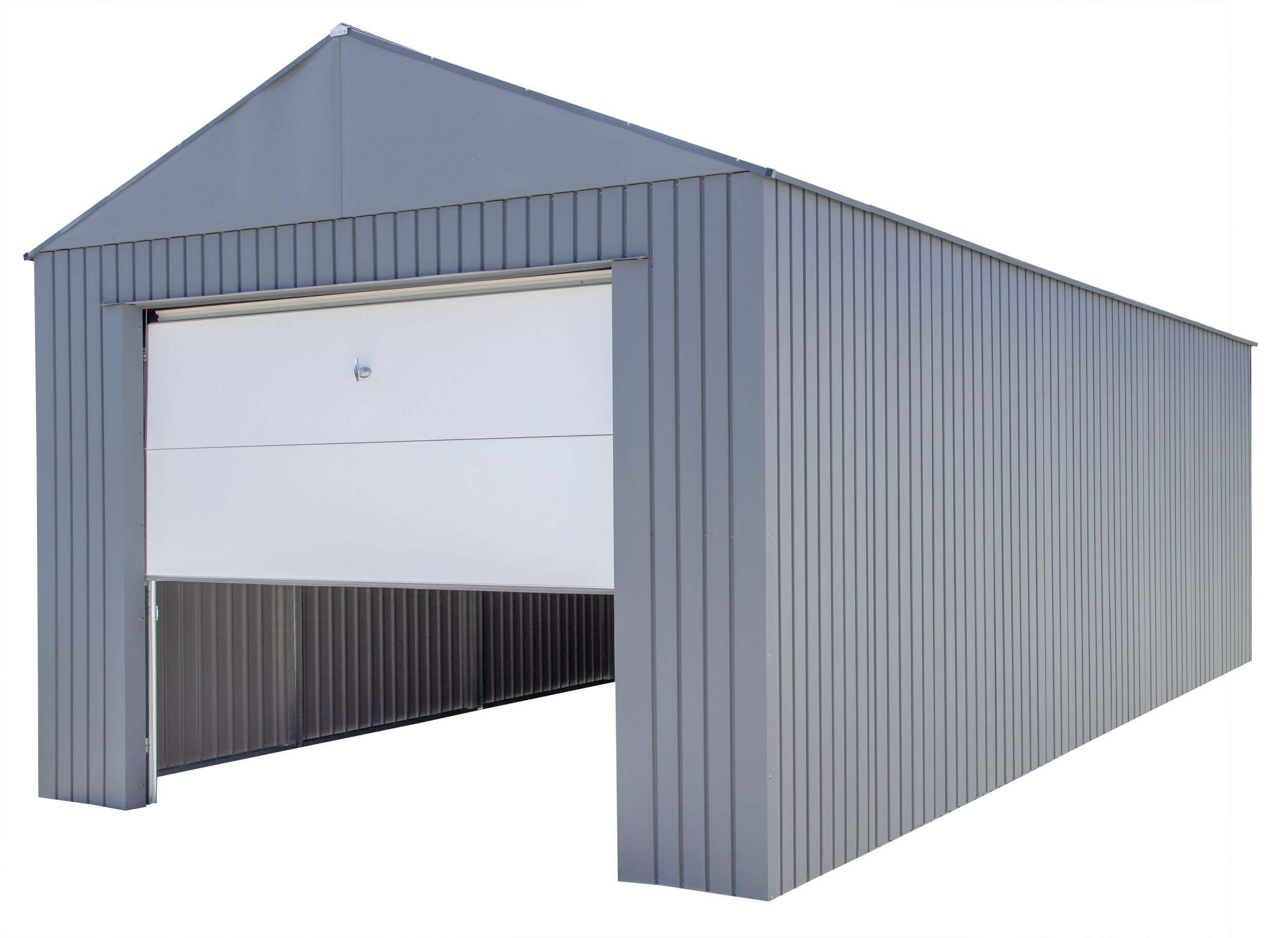 The Everest Garage Series is a stylish, premium garage from SOJAG. The Everest is made strong and is made with tough Galvalume steel that's aluminum and zinc plated for exceptional corrosion resistance. The unit features a wind and snow load rating, a stylish premium paint textured finish, and is expandable up to 100 feet long.
