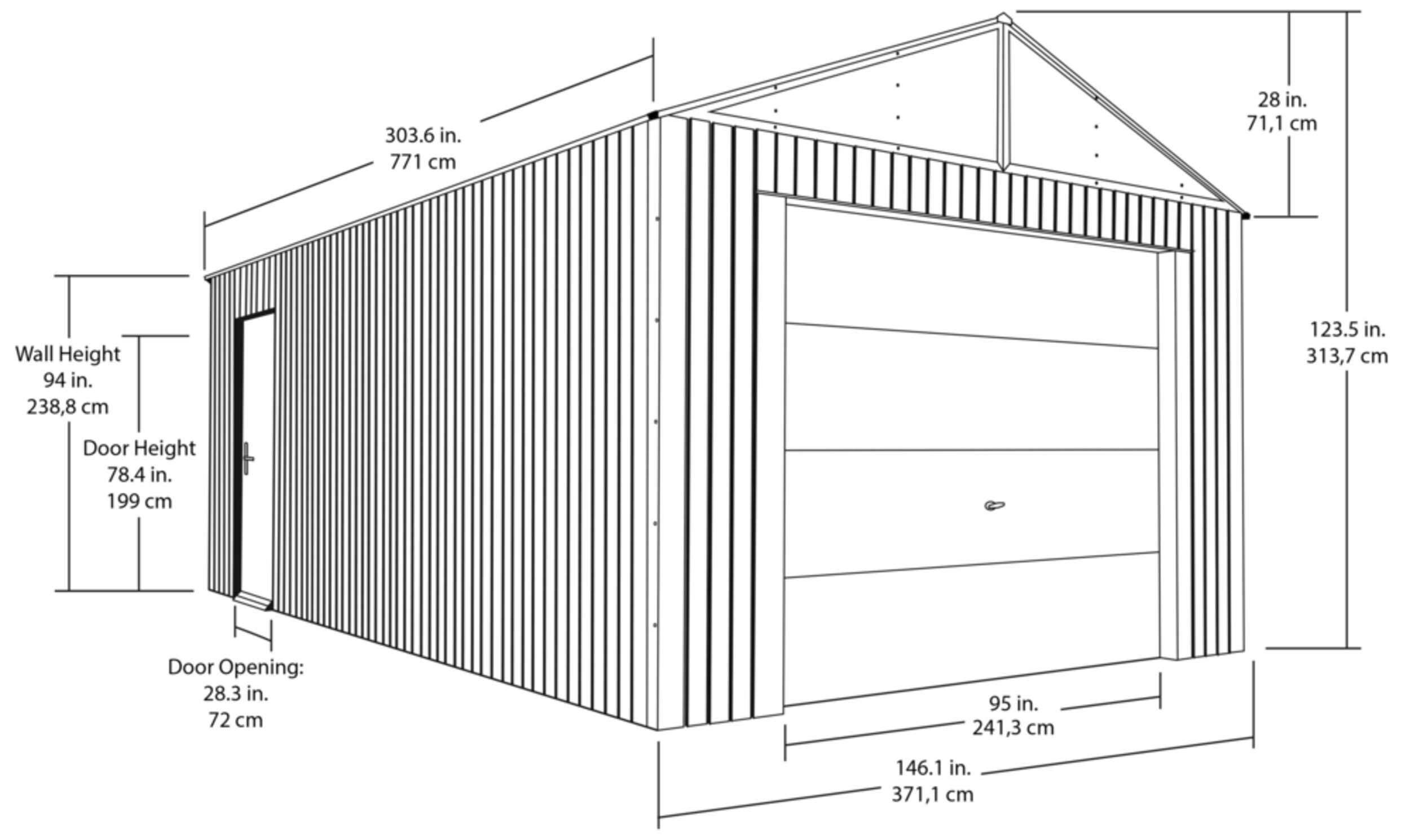 Includes an 8’ x 7’ sectional roll-up garage door, compatible with a variety of centreline track garage door openers (sold separately)