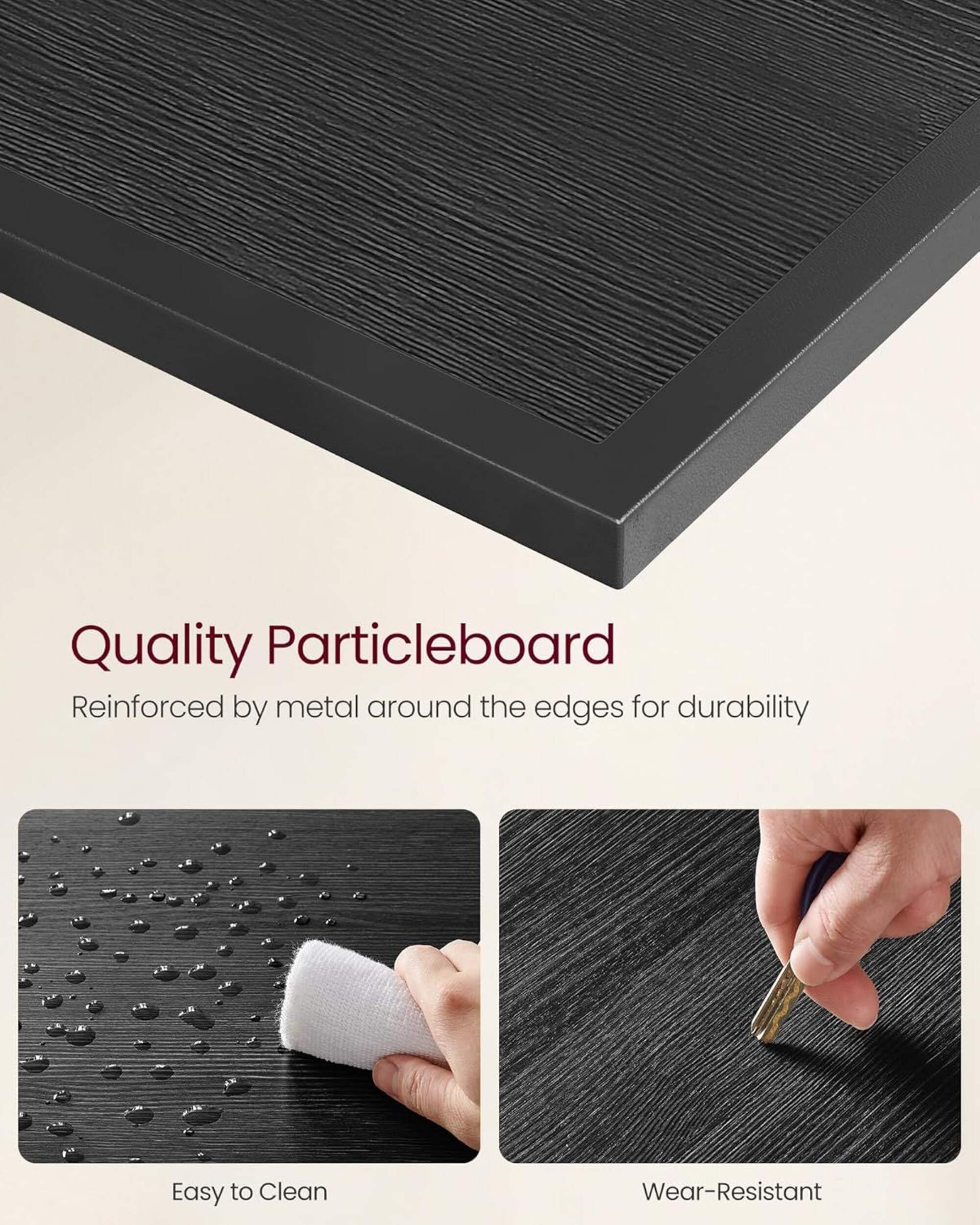 Charming and inviting design: The combination of black boards with a wood grain finish softens the industrial black steel frame, adding warmth and creating an inviting ambiance that complements any home décor