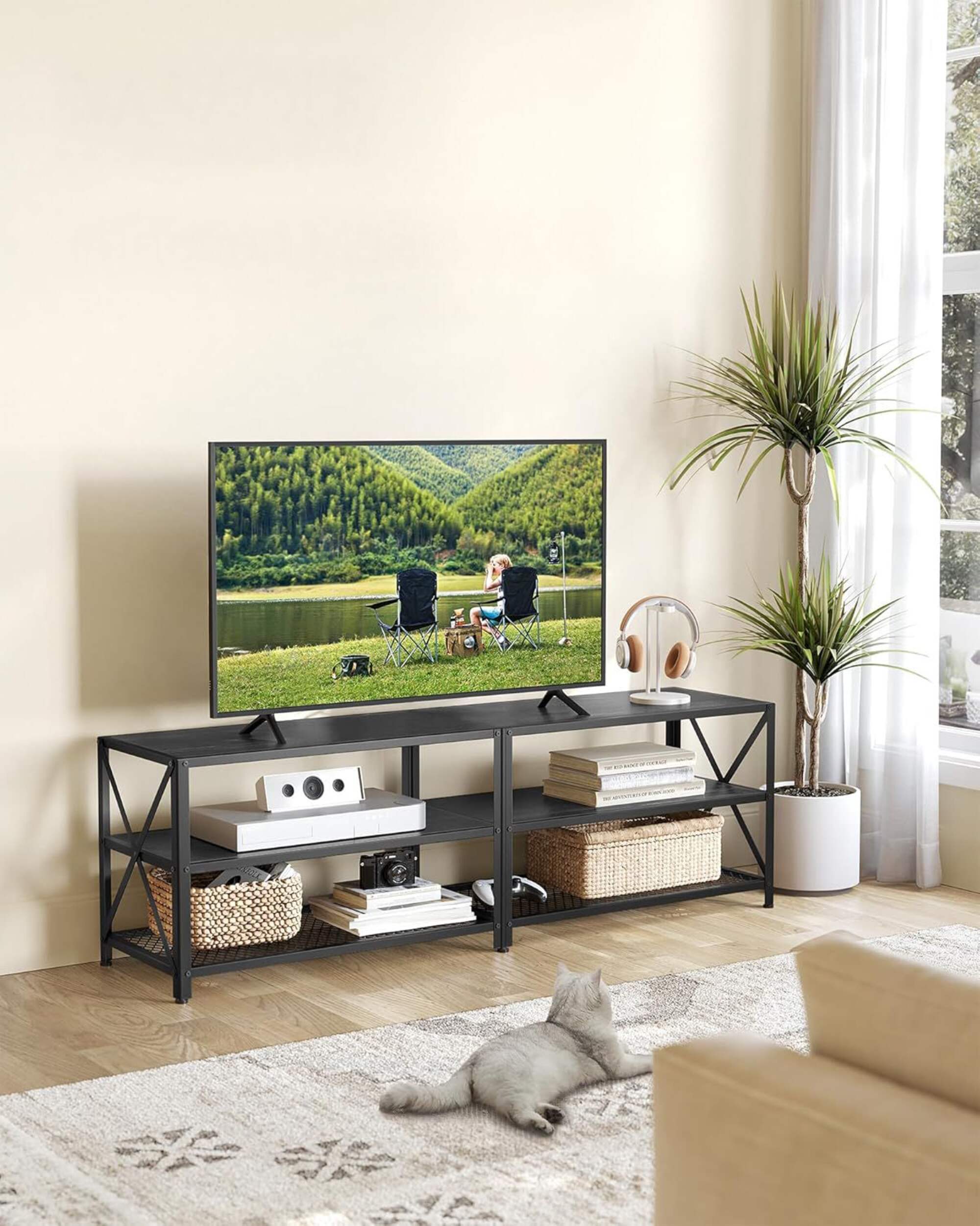 Durable and sturdy construction: Built with 6 robust steel legs, high-quality particleboard, and X-shaped bars for reinforcement, this TV stand offers exceptional stability and support