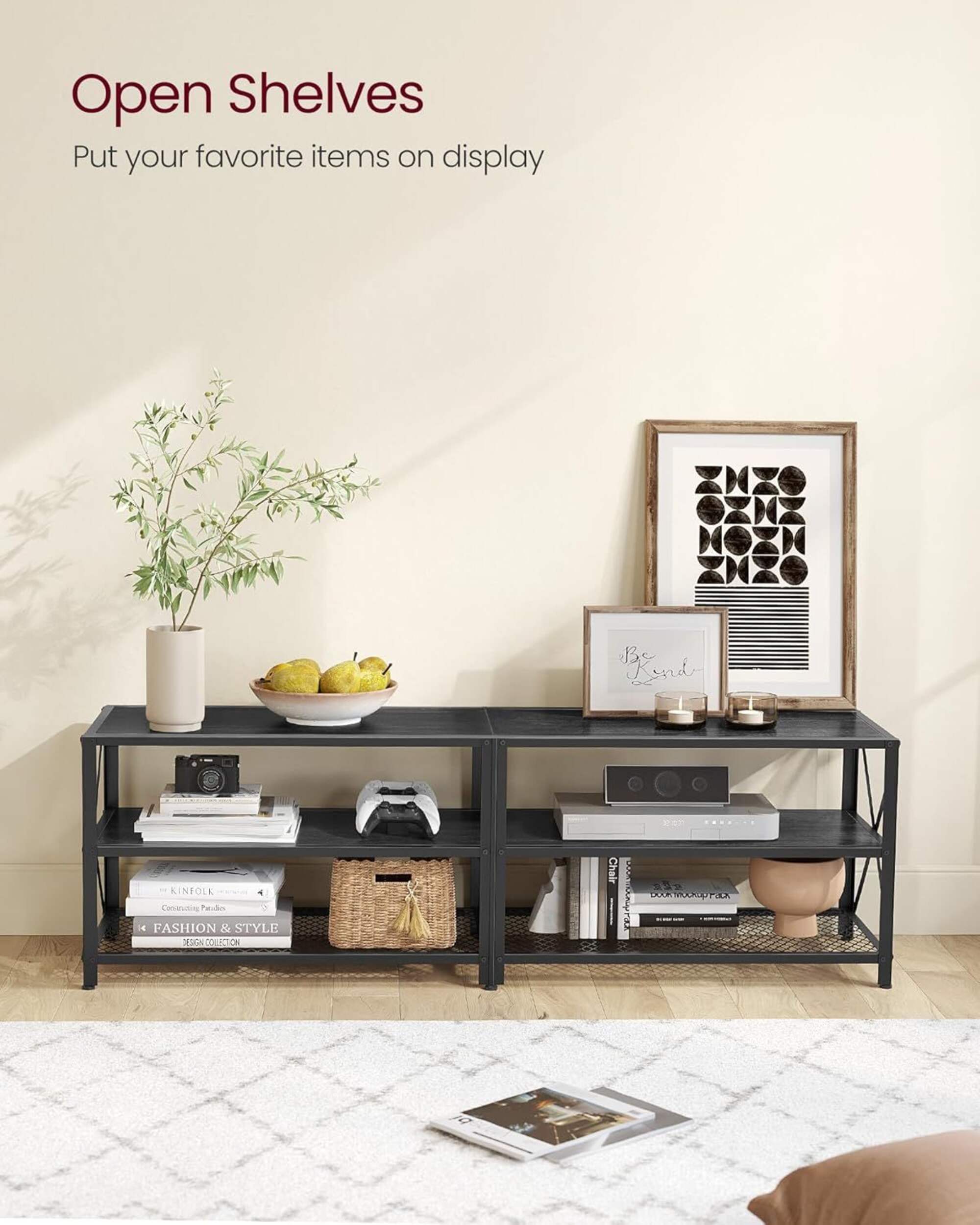 Generous storage: With three open shelves, this entertainment centre offers practical storage for DVDs, game consoles, books, or decorative items