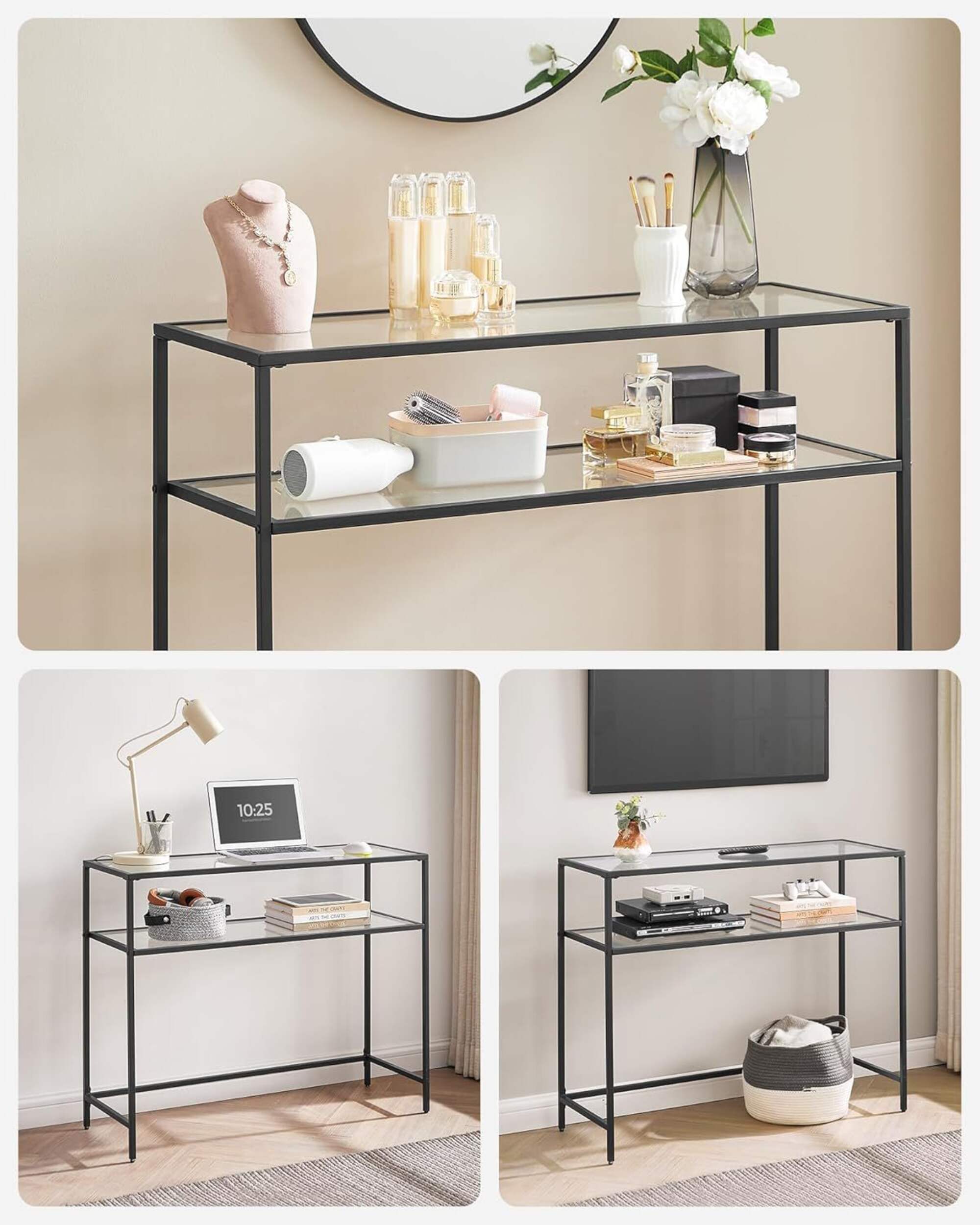 Tempered glass shelves with a black metal frame