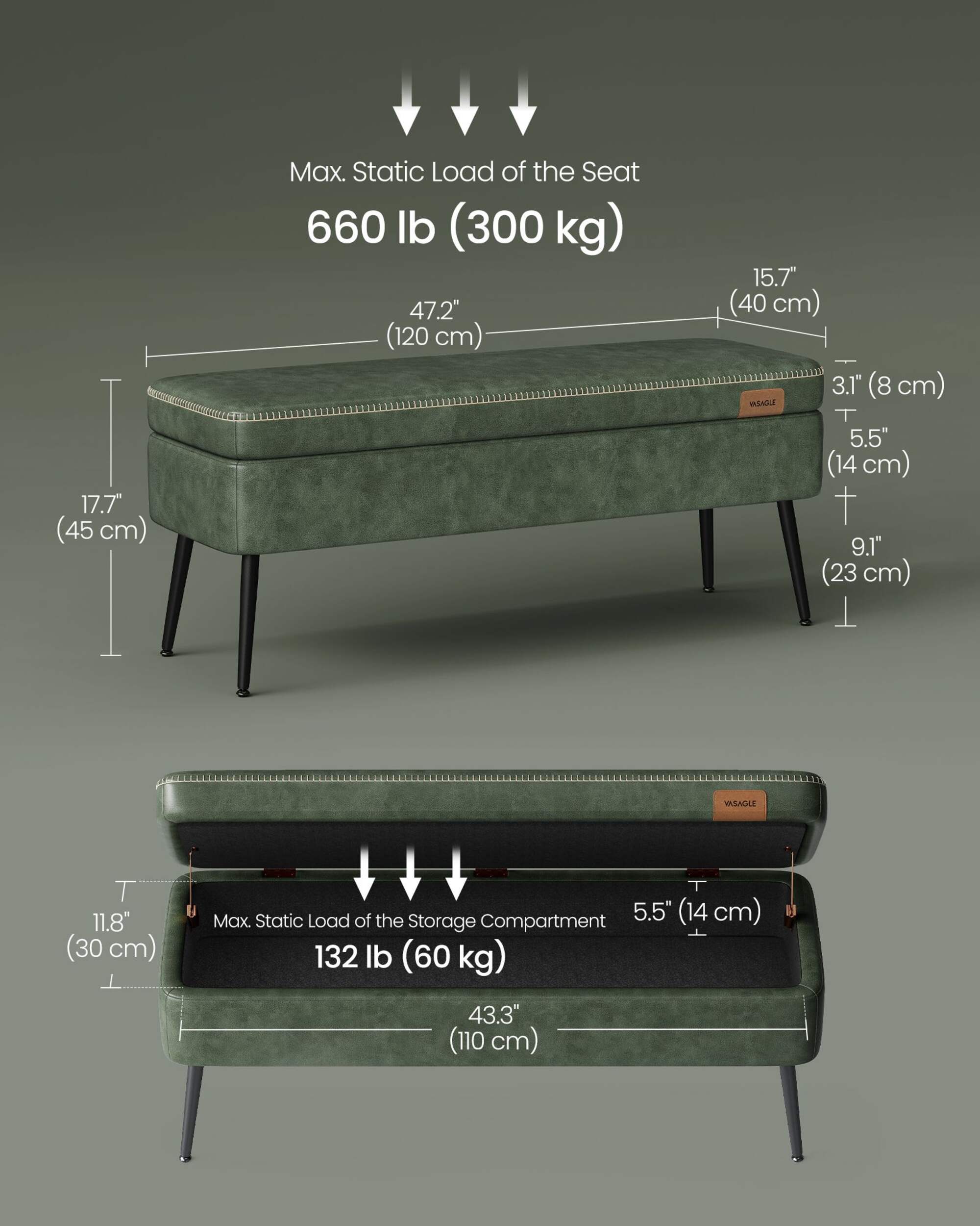 Unmatched strength and stability: Engineered for longevity, the solid wood frame and sturdy steel legs provide unwavering support for up to 661 pounds, making it ideal for storing heavy items, hosting guests, or doubling as a sturdy platform