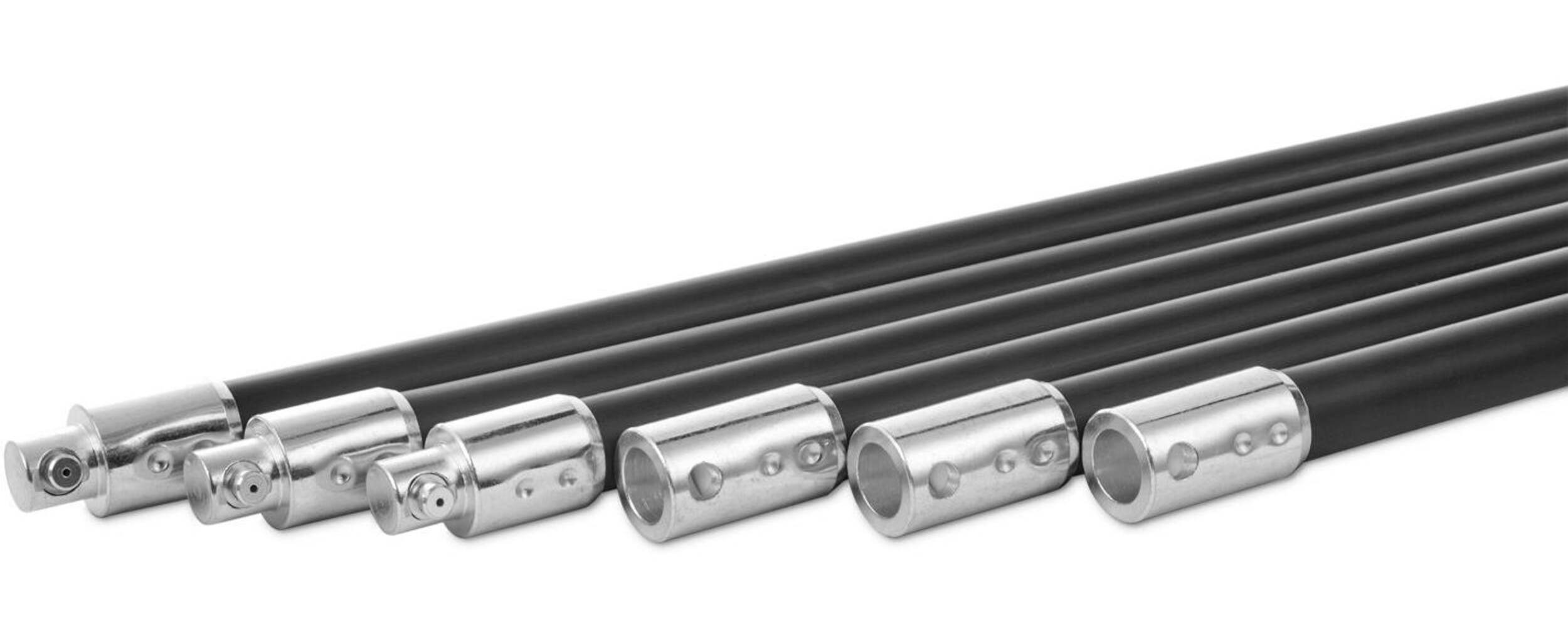 Six 3' (1 m) button-link rods offer an 18' reach, with extension kits available for taller chimneys