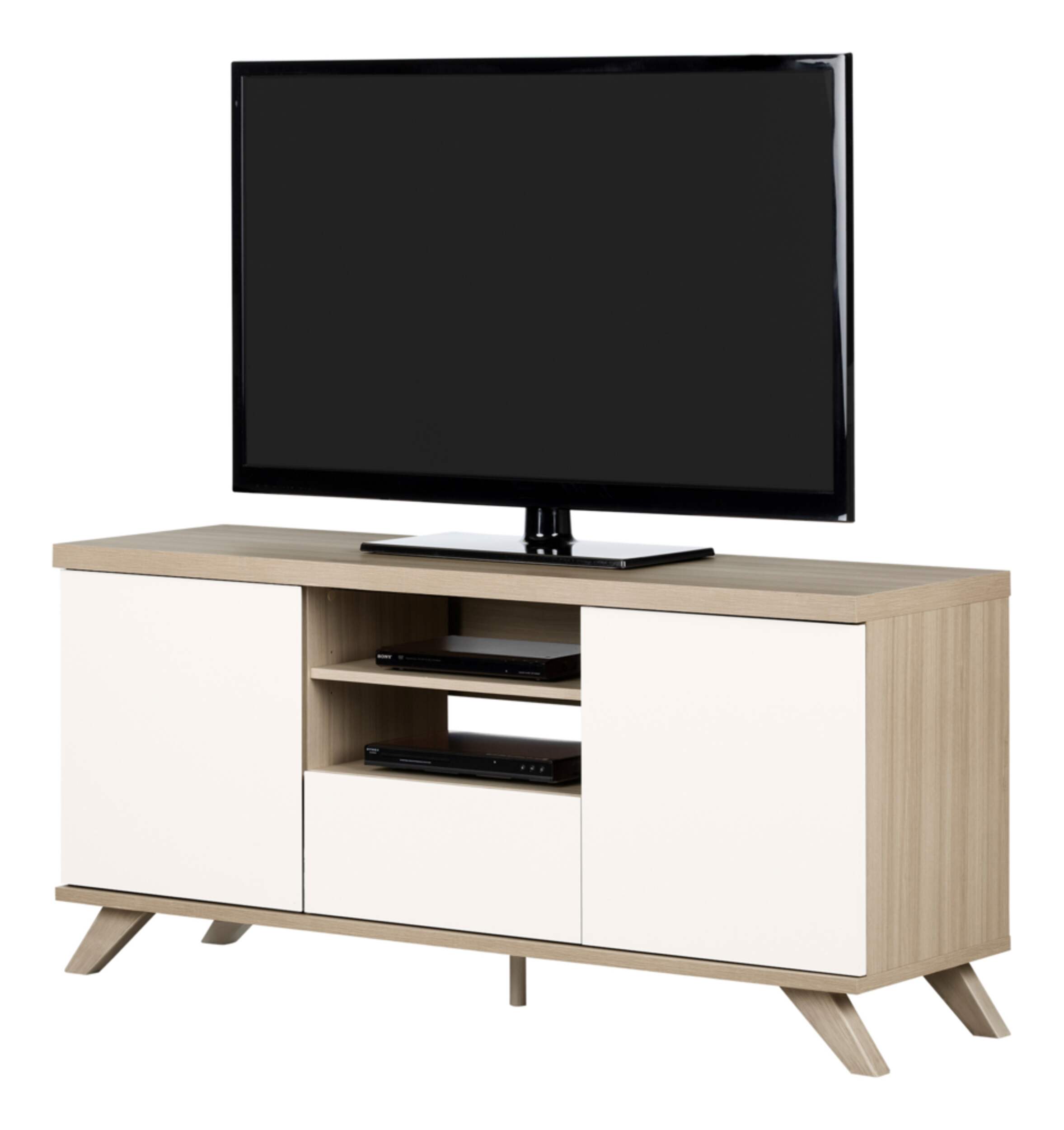 SCANDINAVIAN TV STAND: The combination of angled legs, clean lines, and a two tone look gives this piece a highly Scandinavian look