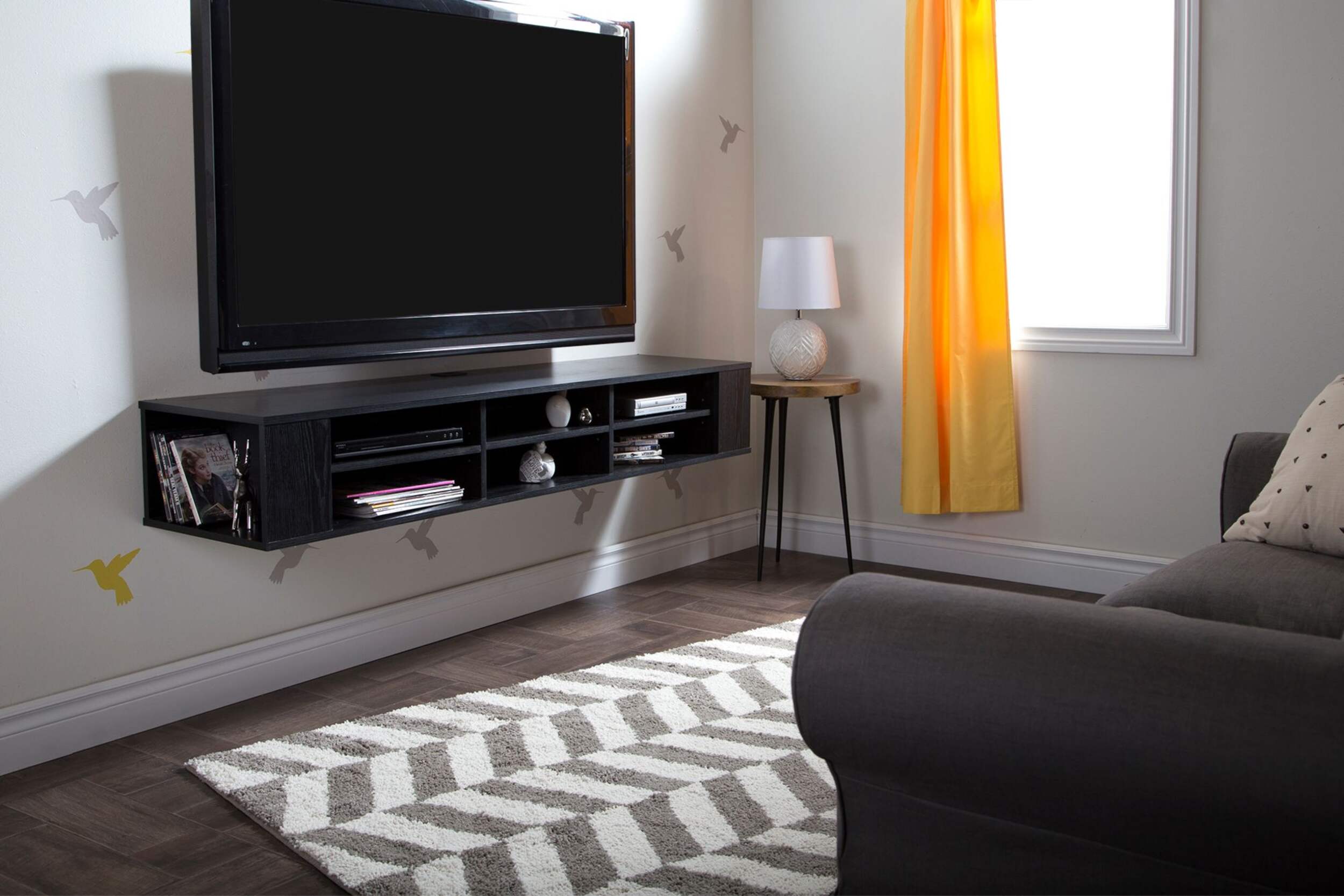 This modern, designer look wall mount media console will free up space and give your living room a light, airy look