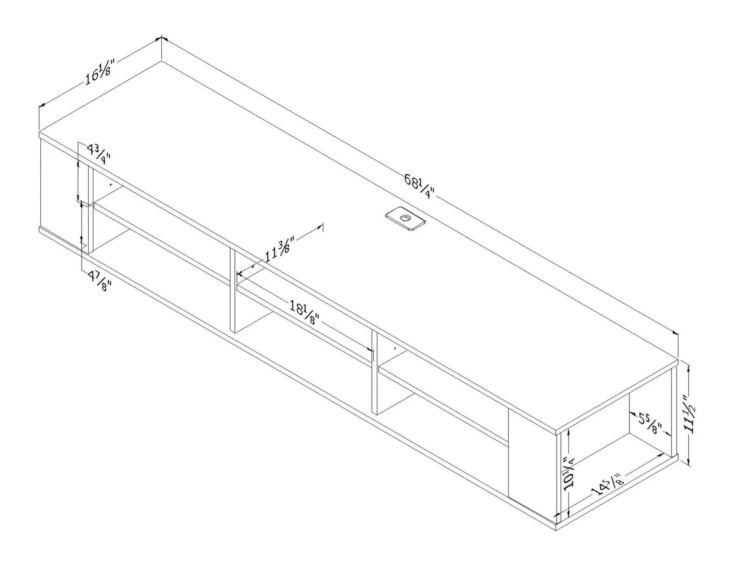 Product dimensions: 68.25" W x 16.25" D x 11.5" H (173.36 x 41.28 x 29.21 cm)