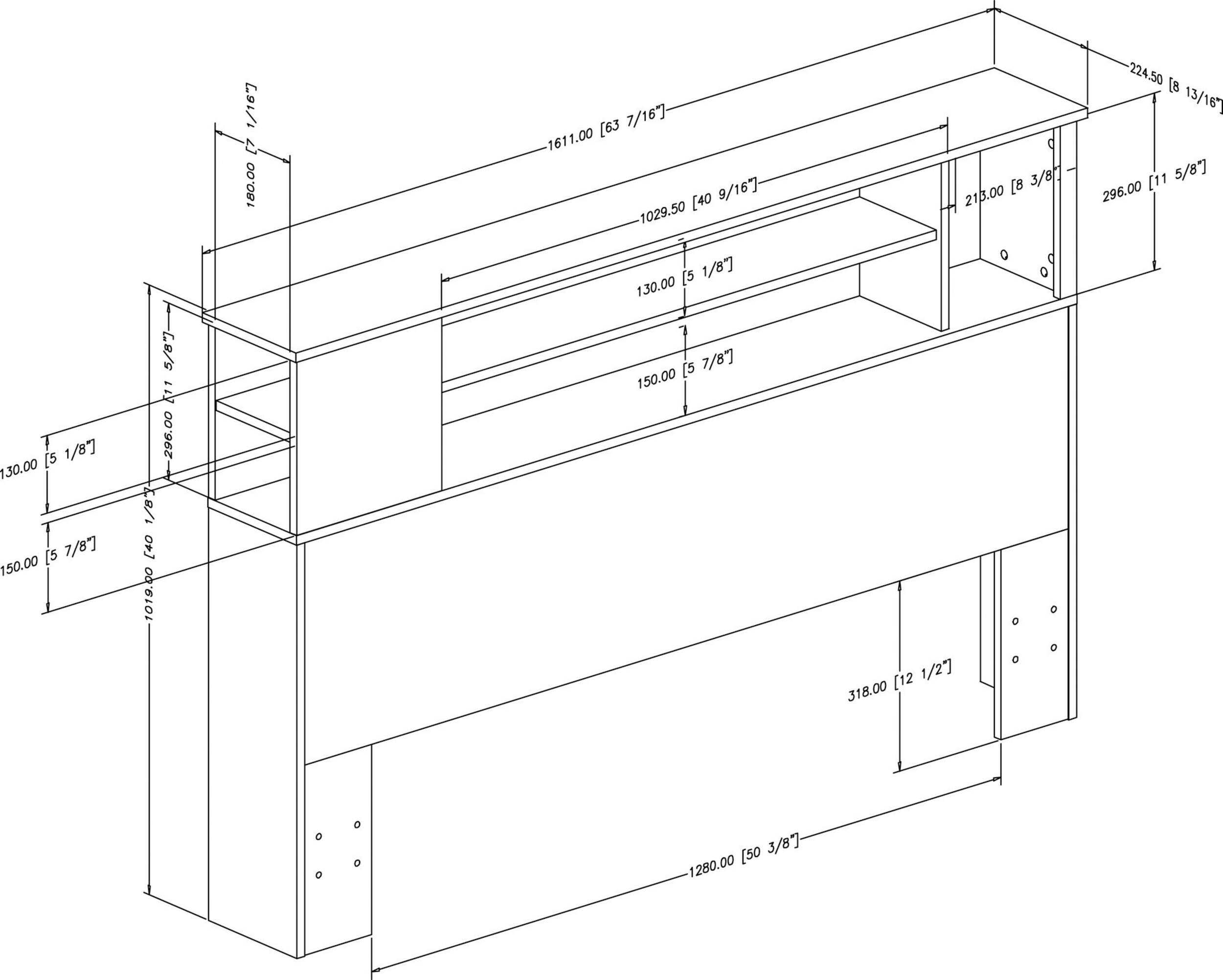 Product Dimensions: 63.5" W x 9.0" D x 40.25" H (161.29 x 22.86 x 102.24 cm)