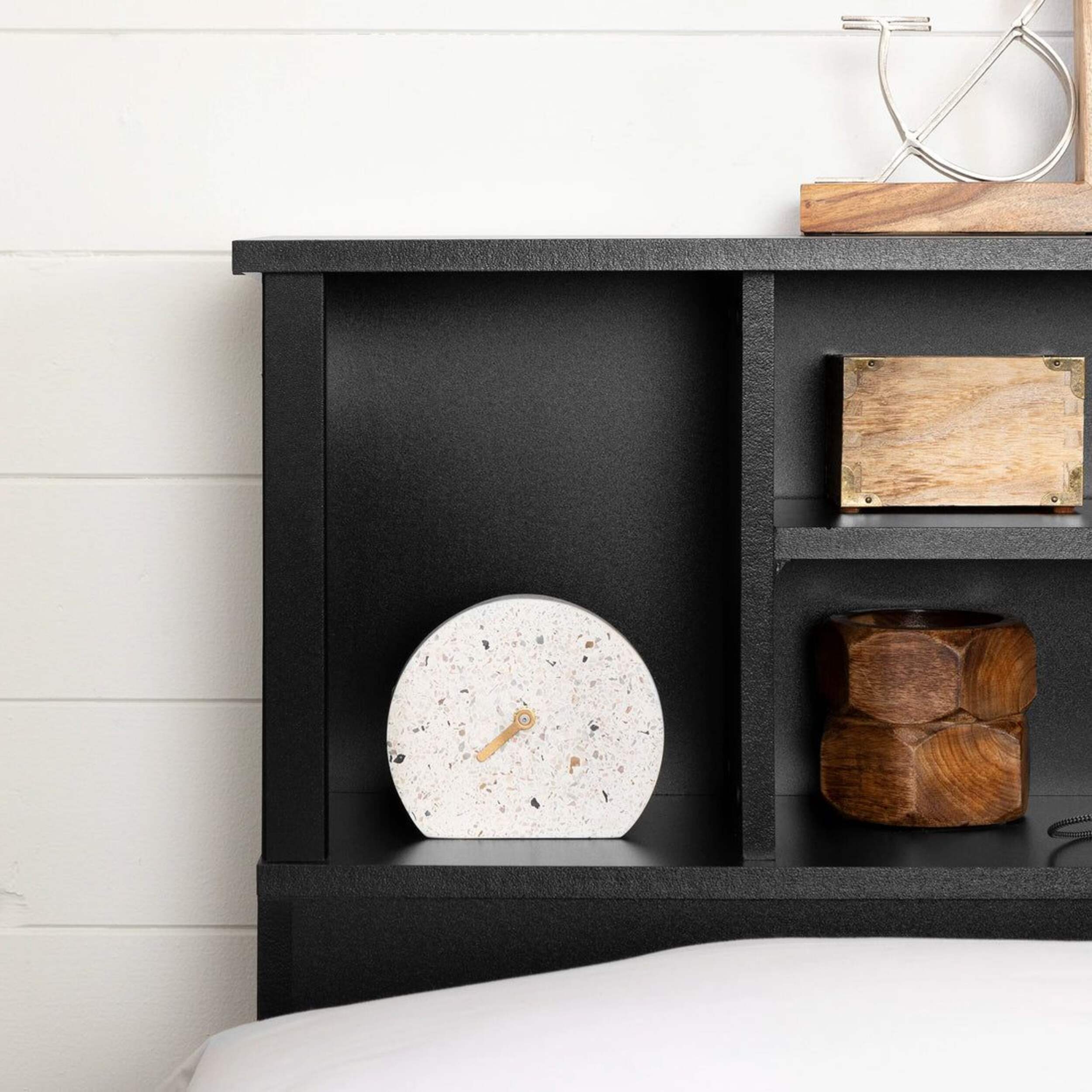 MODERN DESIGN: The headboard features a cable management hole in the back panel, and the side storage can be conveniently added to either the left or right of the bookcase