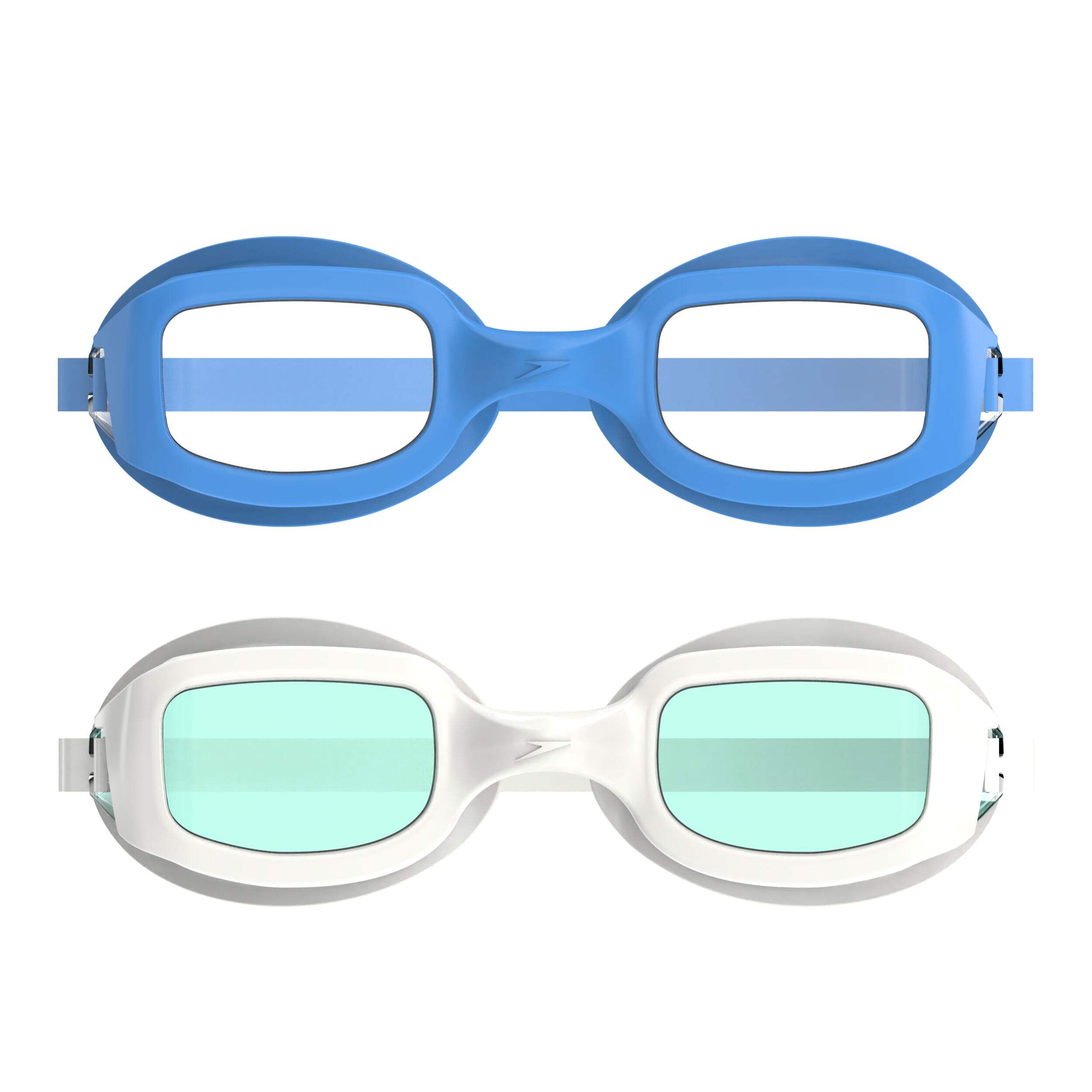Keep young swimmers comfortable under water in the Speedo Kids' Sonic Goggles. The soft frame of these secure goggles molds comfortably to the face, providing a leak-free fit. Shatterproof lenses with UV-400 protection shield eyes from harmful rays while the anti-fog properties promote clear vision under water. With an adjustable strap that allows for a custom fit, these googles are ideal for pool and beach fun.