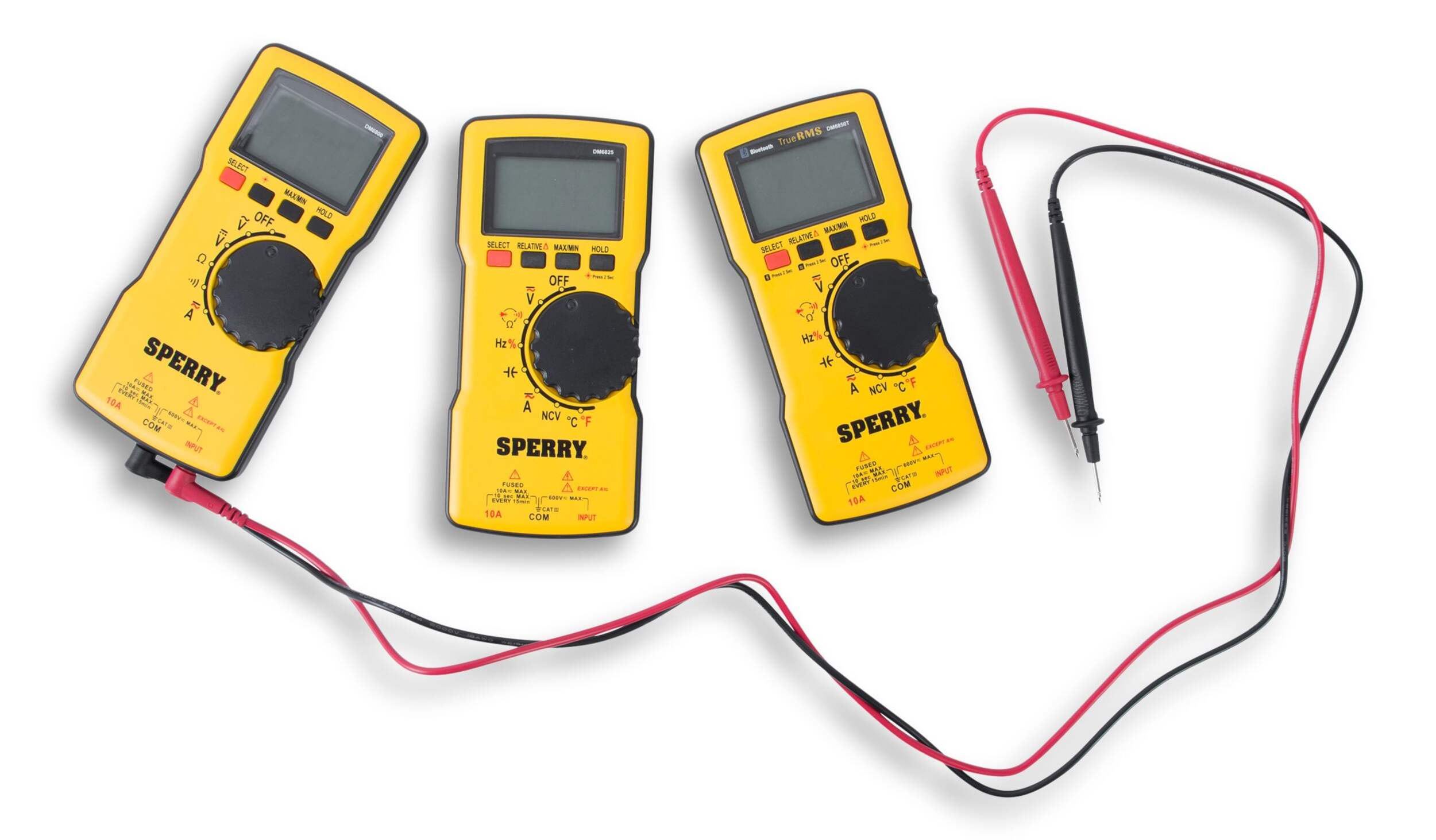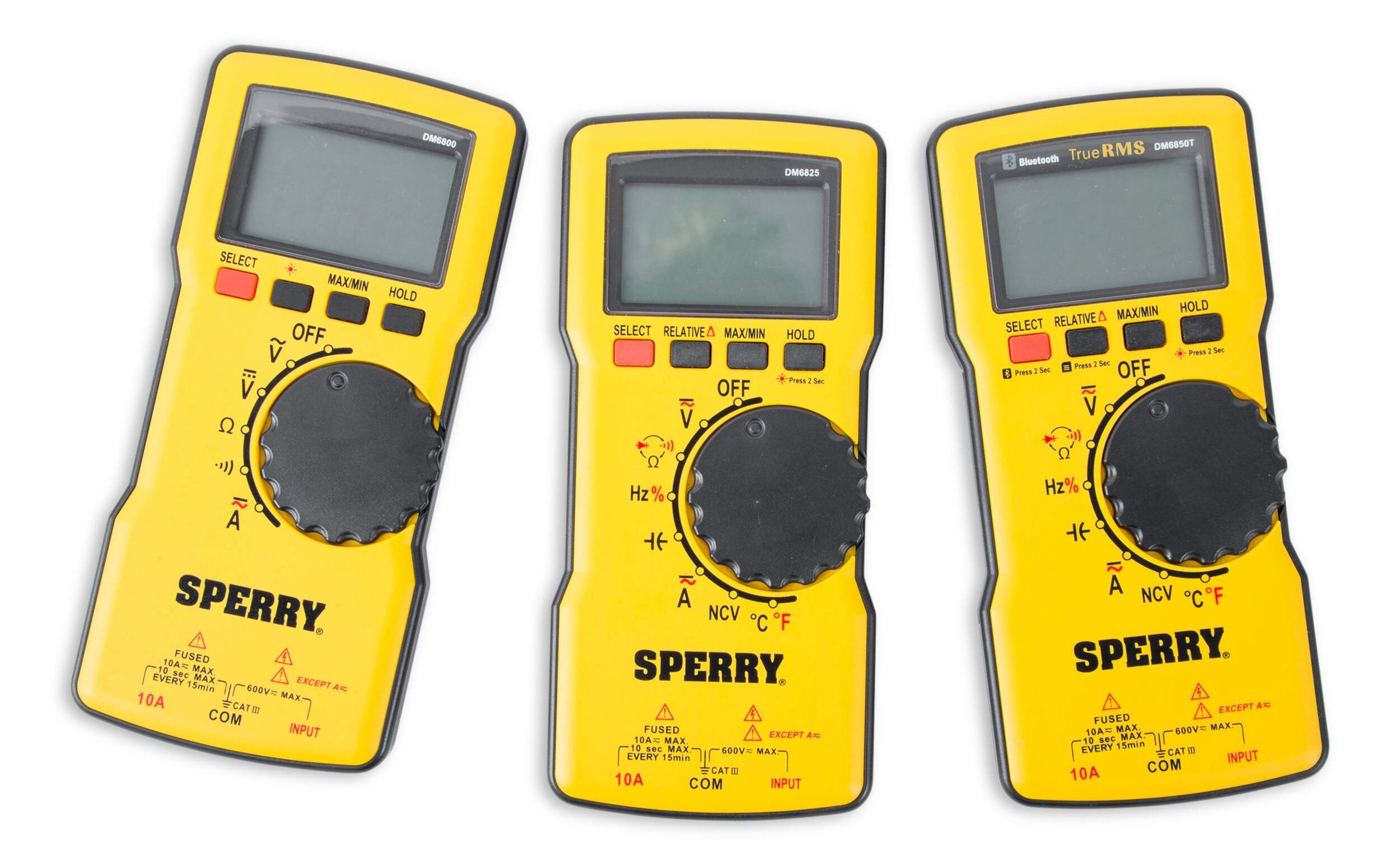 The Sperry DM6800 Thin Autoranging Digital Multimeter is less than three-quarters of an inch thick, making it the thinnest full-size multimeter on the market. At half the size of standard models, this digital multimeter is easy to hold, carry on the go or store when not in use. This durable yet compact digital multimeter is packed with features that electricians need: it tests AC/DC voltage, amps, resistance and continuity and also includes a backlit display and alert sounds for seamless reading. The auto shut-off and low battery alert helps ensure it's ready when you need it.