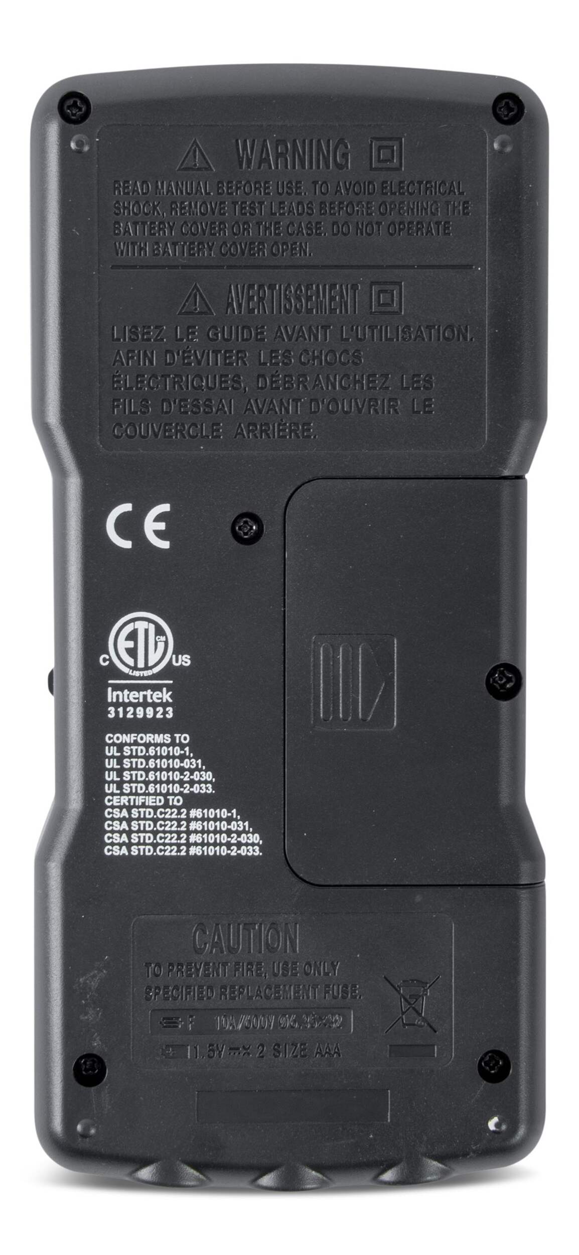 | Advanced Features | Audible Alert, Auto Ranging, Backlit, Continuity Test, Data Hold, Interchangeable Leads, Removable Leads, Replaceable Fuse |