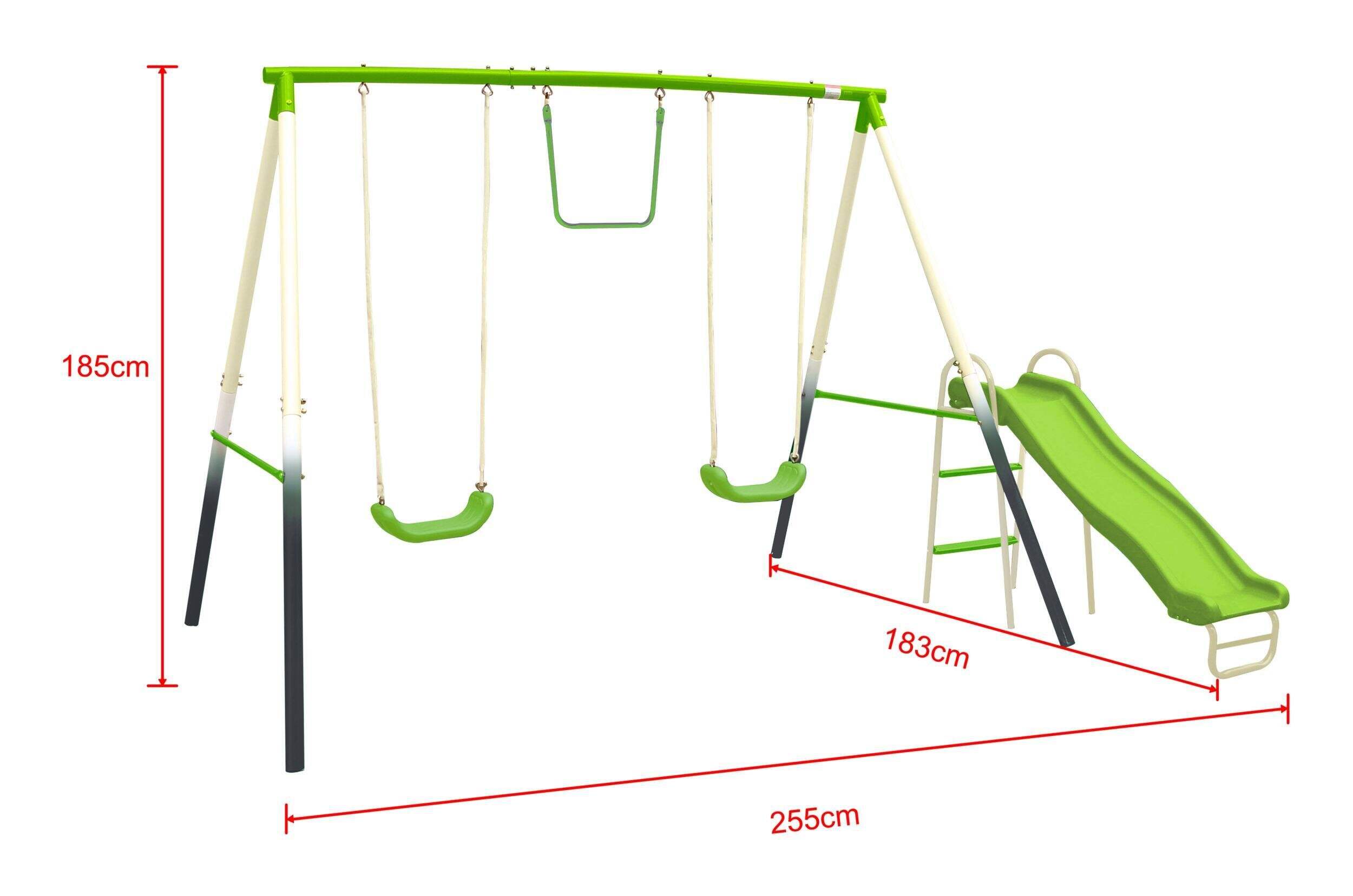 Transform your backyard into a hub of excitement with the Sportspower Outdoor 4-Station Metal Swing Set Combo. Crafted with a durable steel tube frame in vibrant colours, this swing set is built to handle hours of energetic play. The sturdy 4-leg design ensures stability, giving kids a safe place to swing, slide, and soar. Featuring classic swing seats, a metal trapeze bar, and a thrilling wave slide, it’s perfect for young adventurers seeking outdoor fun. Get ready for endless laughter and unforgettable memories with this dynamic Sportspower swing set.