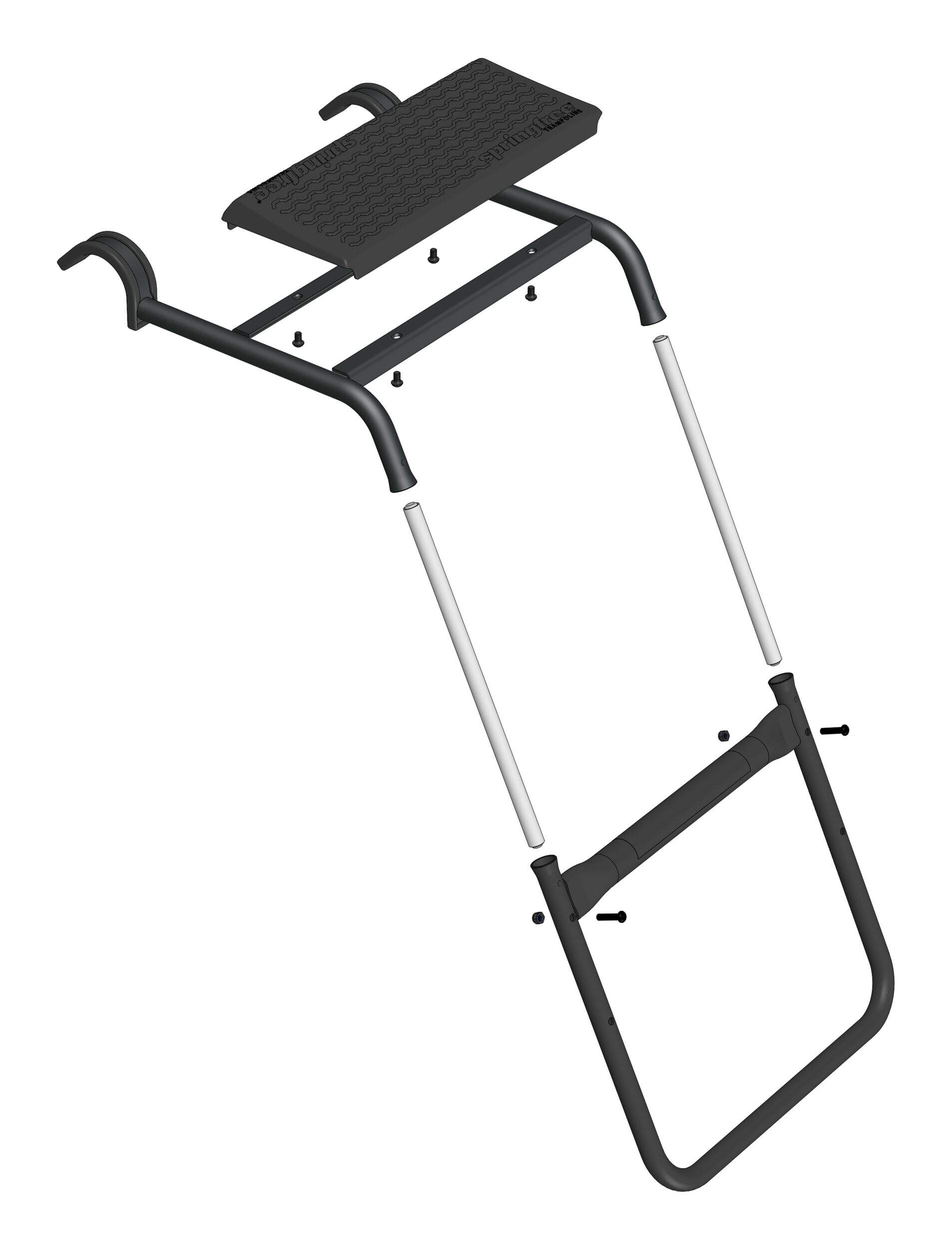 Safely and easily enter and exit your Springfree Trampoline. The FlexrStep™ ladder allows for easier entry and exit from your trampoline without introducing a hard surface to the jumping area. Based on the trampoline model, the ladder adjusts to three heights. Includes a lock to restrict unsupervised jumping. 1 year manufacturer’s warranty.Box Contents: 1 Plastic Step, 1 Ladder Top, 2 Rods, 1 Ladder Base, 1 Ladder Hardware Kit and the Instruction Manual.