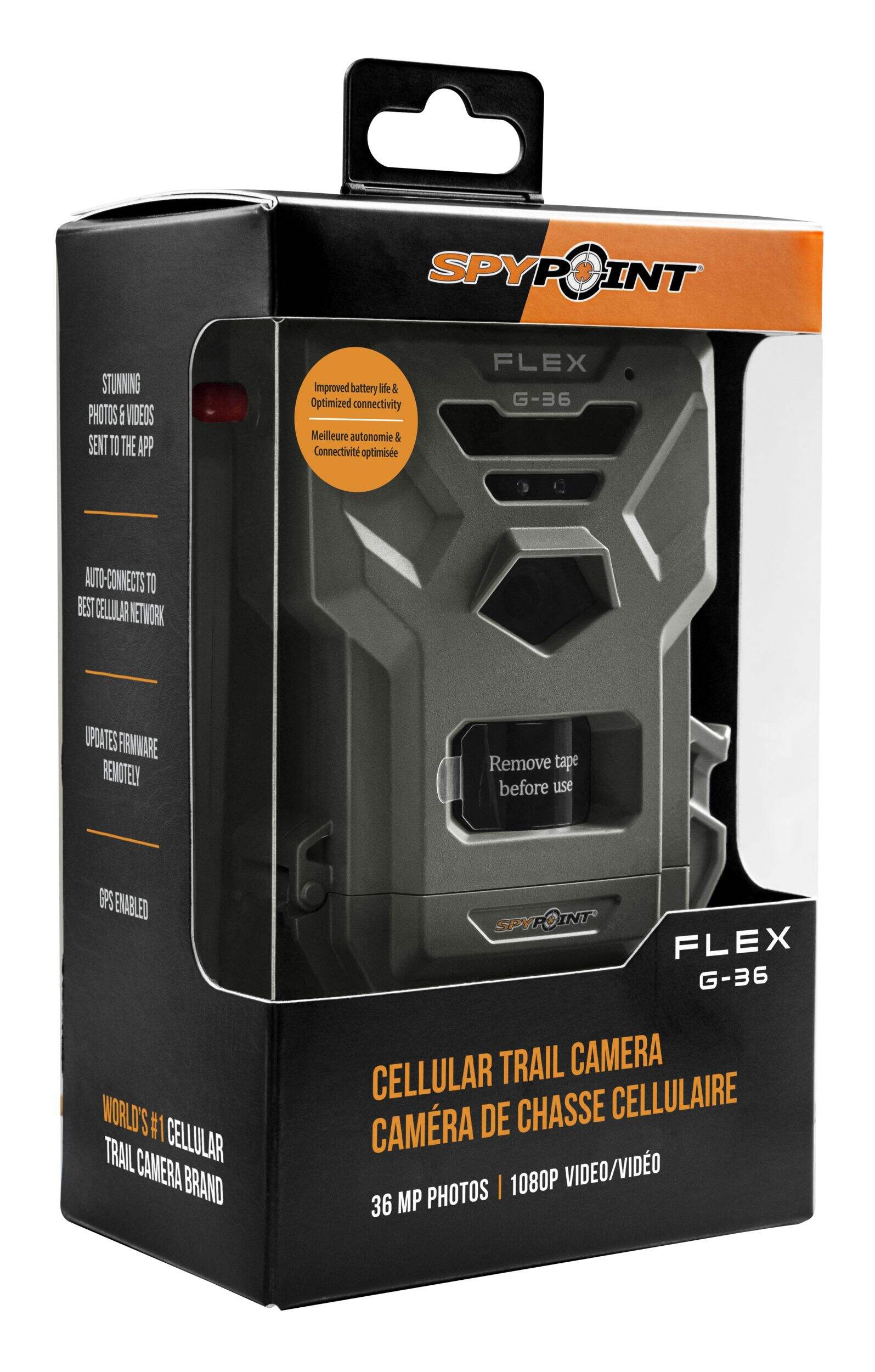 The SPYPOINT FLEX G-36 Cellular Trail Camera takes the proven performance of the original FLEX and enhances it for the modern hunter. It's designed to keep working longer, so you never miss a shot. The addition of a new supported carrier increases versatility in any area. Thanks to higher photo resolution, the FLEX G-36 delivers clearer, more detailed images, giving you the advantage in archery and hunting. Ideal for monitoring deer/elk, this camera is built to handle the rigours of the outdoors with its compact design, easy installation, and durable performance.
