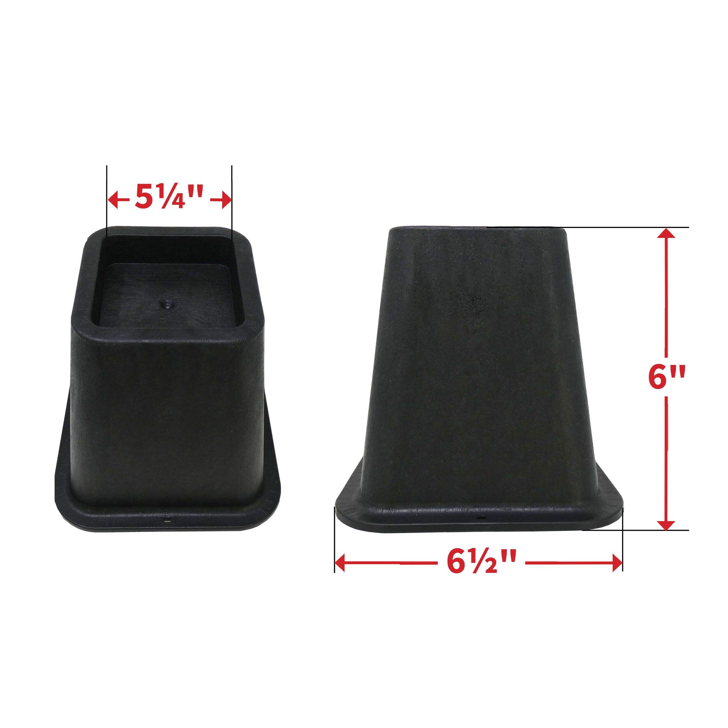The Square Bed Risers are ideal for creating under-bed storage and lift beds for easier access. The bed risers come in a pack of 4, elevating each corner to create valuable hidden storage space under the bed frame. The sturdy risers are sized at 5.25" tall to maximize the under-bed clearance for storing items. Designed for simple assembly, they securely support bed frames off the floor. Their square shape and black colour allow them to discretely blend in once installed.
