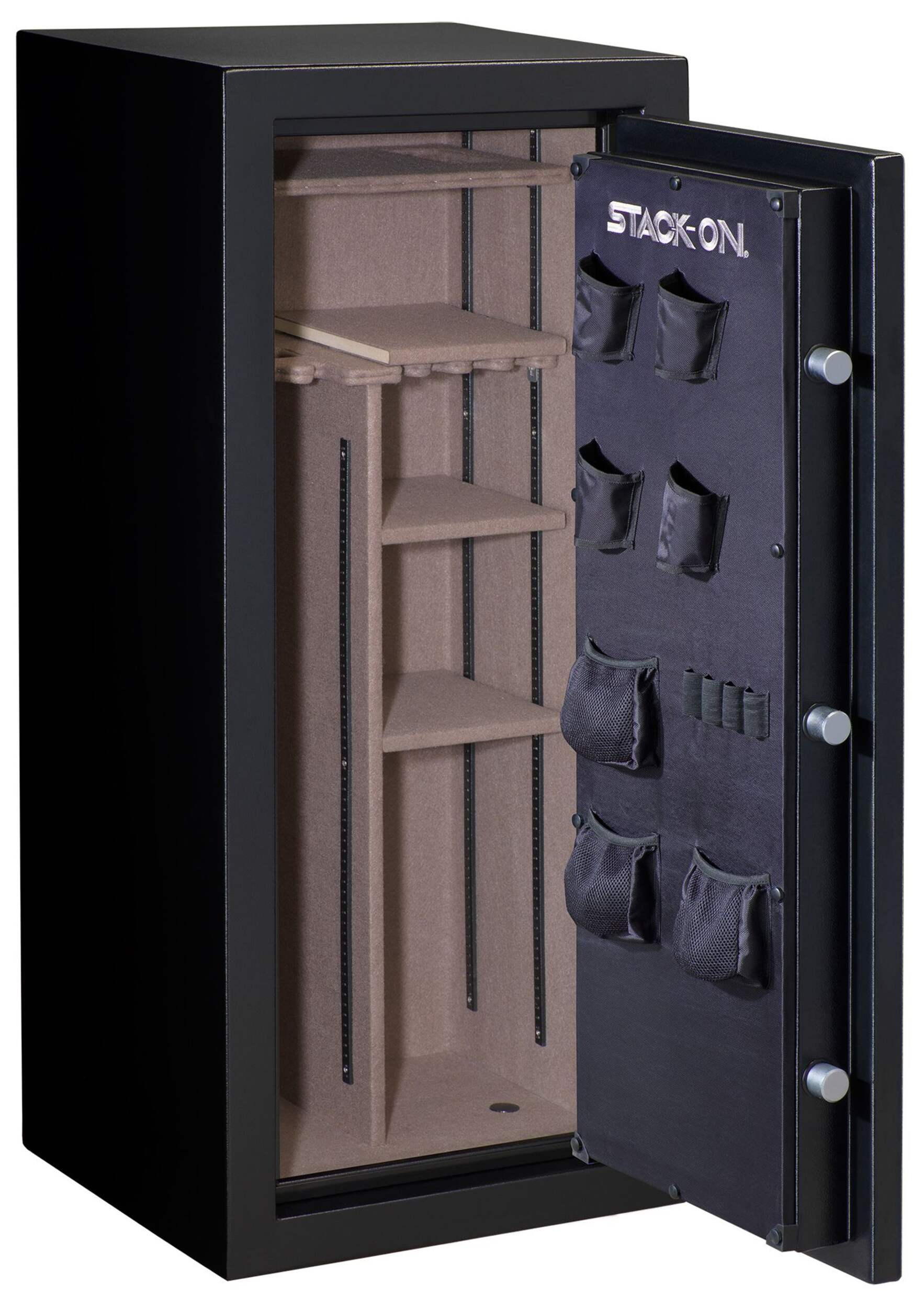 Stack On Buck Commander Fireproof Safe can hold up to 24 firearms, or 12 firearms with storage, or all storage