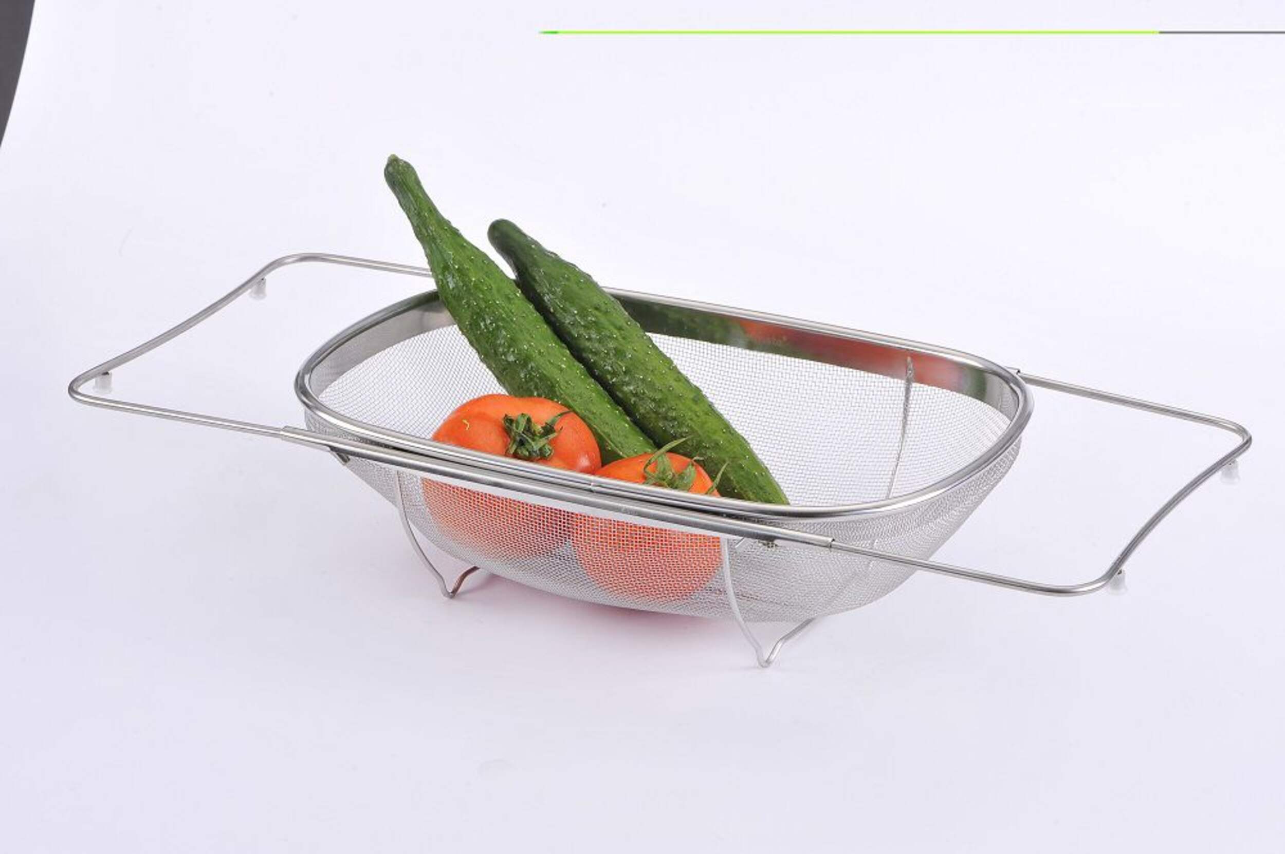 The Stainless Steel Expandable Strainer, 13.5 x 9.5-in, 3.21-L is an ideal kitchen essential for every home. Whether you're straining boiled pasta, yogurt, and cheese or washing fruits and vegetables - this steel strainer comes in handy in various kitchen chores. It is especially useful for bigger families or when you're hosting parties and need to strain huge quantities of produce. As a versatile tool, this large expandable kitchen tool also helps to keep your produce fresh and steam your vegetables. Its mesh is made from durable stainless steel, which is both long-lasting and resistant to corrosion and damage. The colander strainer features a capacity of 3.4 quarts (3.21 L) and measures 13.5 x 9.5 inches (34cm x 24cm).