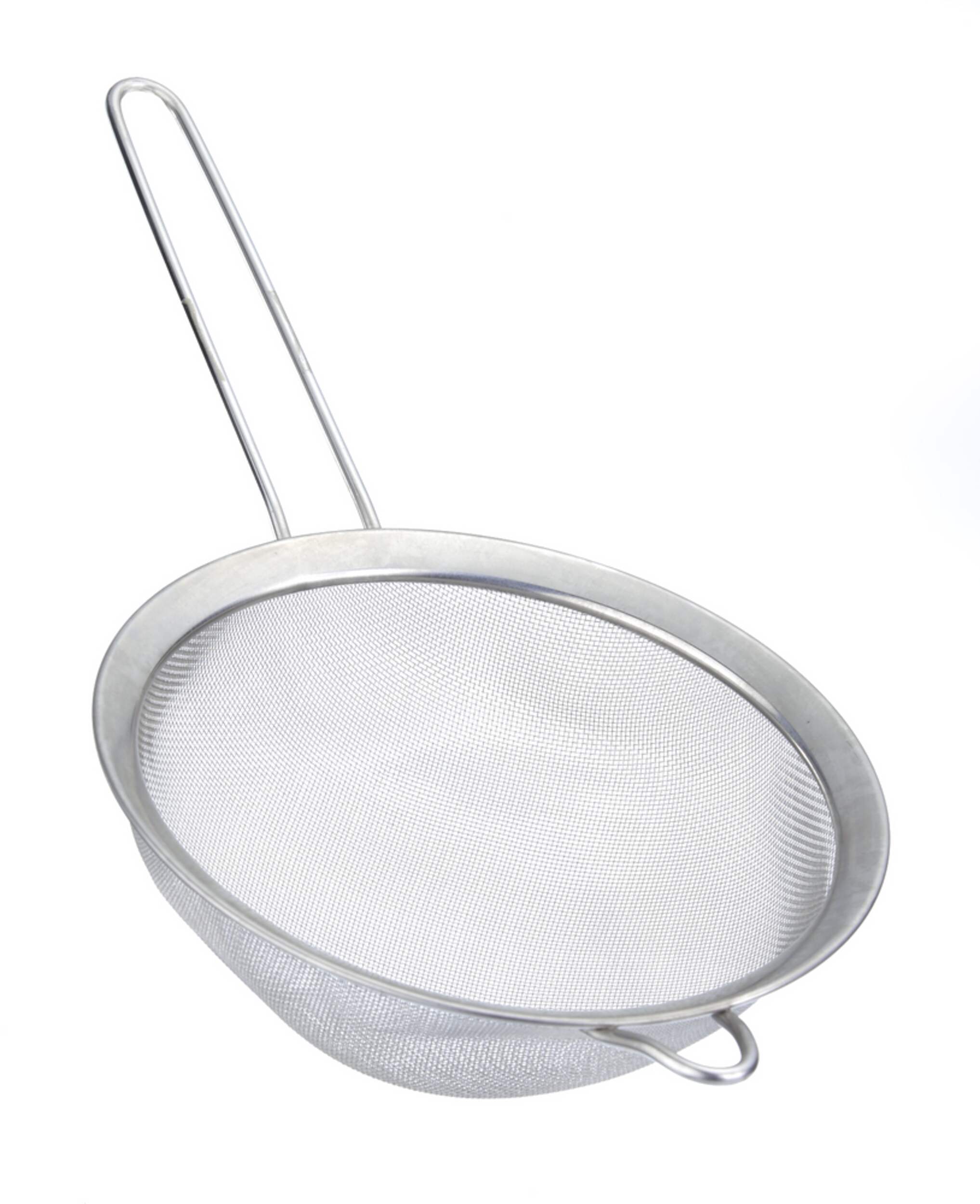 The Stainless Steel Long-Handle Strainer, 7-in, features durable stainless steel construction for extra longevity. Its fine mesh screen allows you to strain stocks, sauces, soups, and more. As a versatile kitchen tool, this strainer is a useful tool to separate solids, seeds, and big chunks of eatables from runny food items. Thanks to the small loop design, you can rest the mesh strainer on a pot or bowl. The metal strainer measures 7 inches (18 cm) in length and features a diameter of 7.6 inches (19.5 cm).