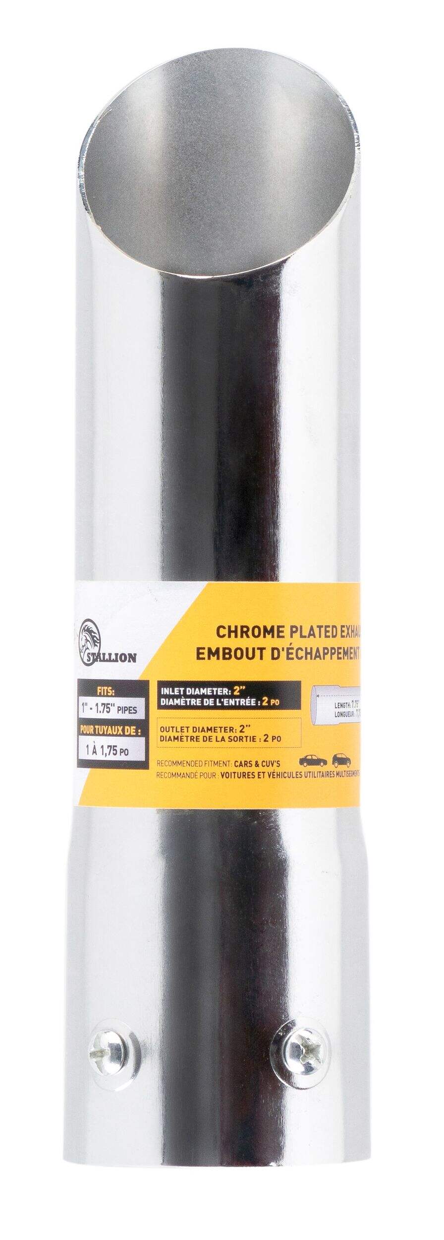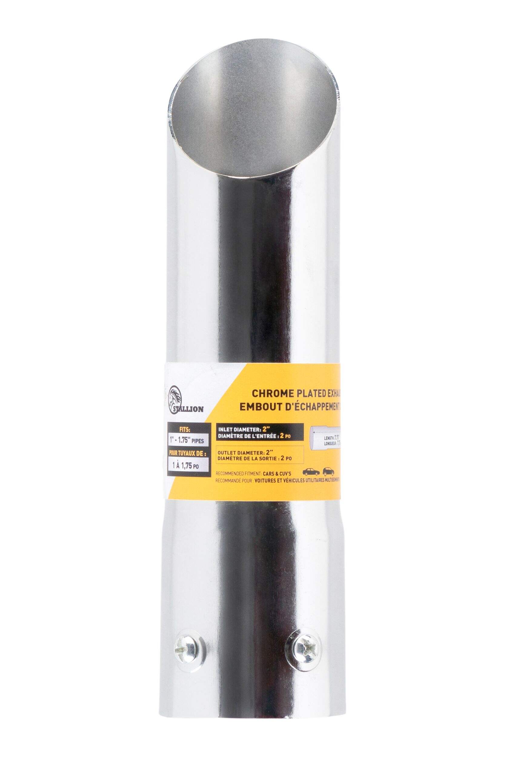 The Stallion chrome slant exhaust tip will add some attitude to your ride. Crafted from the finest grade chrome for a look that's sure to turn heads, this slant tip exhaust pipe will provide that sporty exhaust note you crave. At 7.75 inches long, it's compact without compromising on style, giving your vehicle that low profile performance appearance. So whether you're after an upgrade or a replacement, this Pilot slant tip exhaust will give your ride an edge over the competition and get you noticed for all the right reasons.