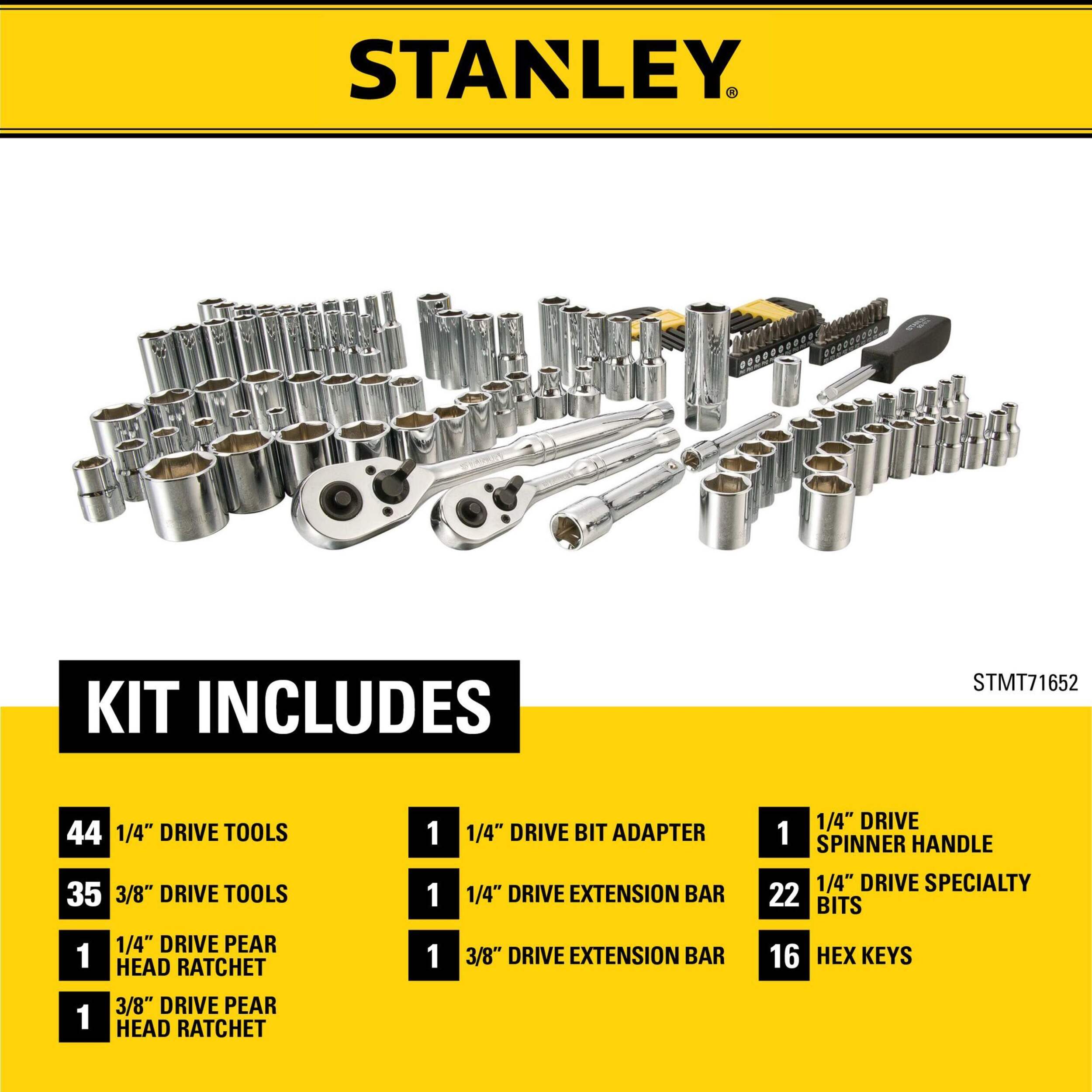 STANLEY® 123 Piece Socket Set is constructed of high-alloy steel and heat-treated for performance