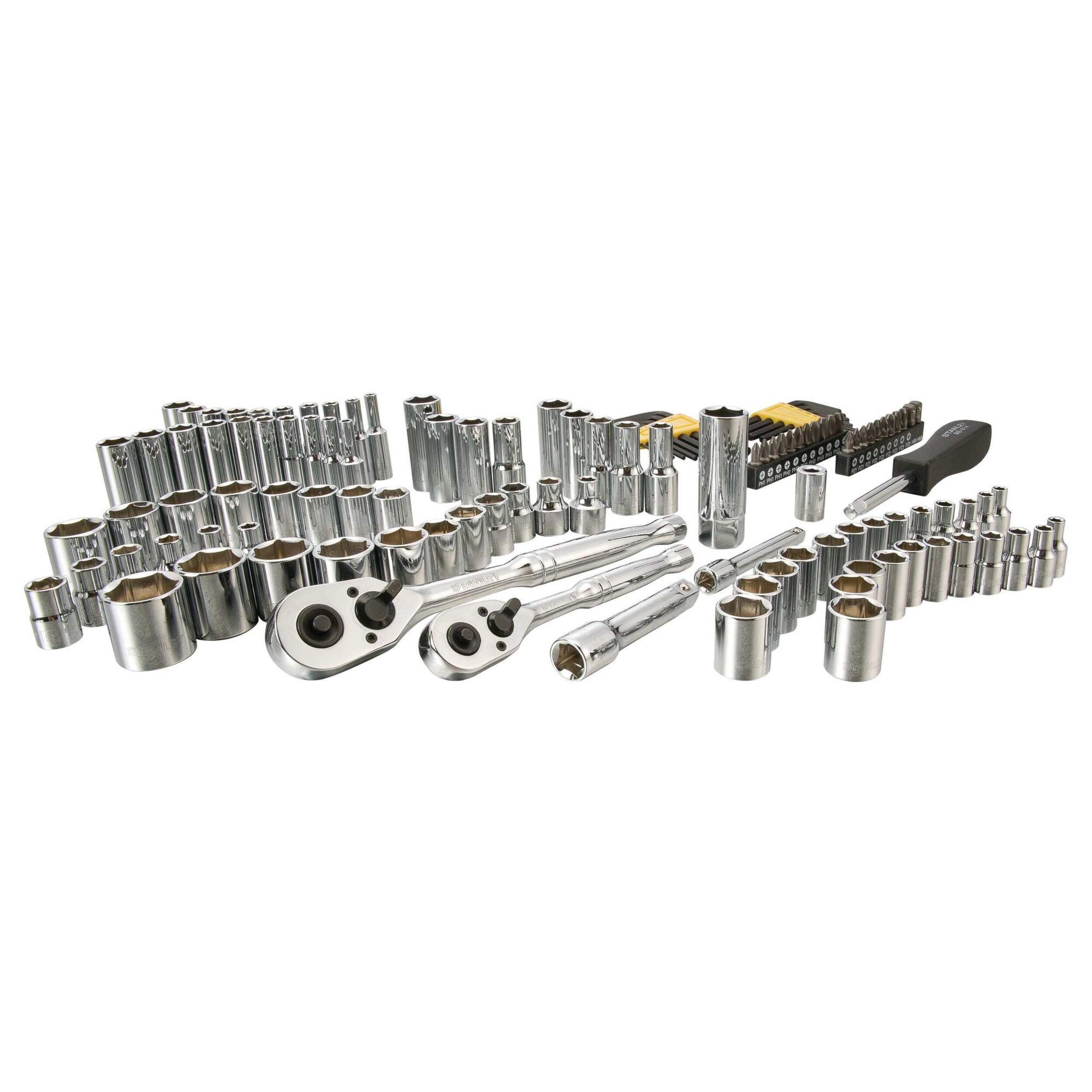 The STANLEY® 123 pc Socket Set is constructed of high-alloy steel and heat-treated for performance. The Max-Drive design provides 15-percent more torque, and meets or exceeds ANSI standards for sockets and ratchets.