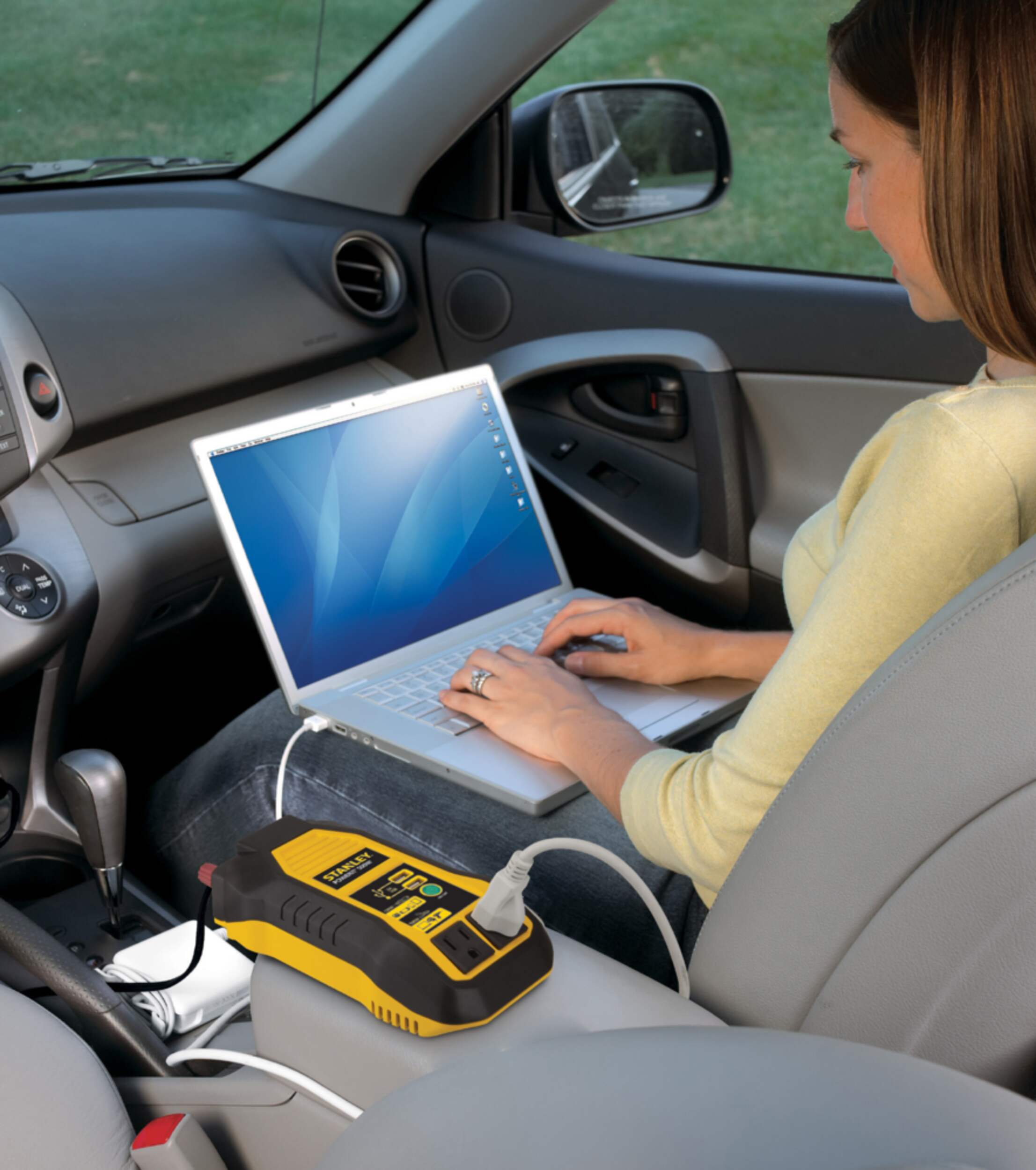 Get 500 watts of household power at work sites, campsites or in your vehicle with the rugged STANLEY 500W Inverter & Power Outlet. Simply plug it into your car's 12-volt DC outlet or attach the clamps straight to your automobile battery to power cellphones, electronics, or recharge batteries from virtually anywhere. It has two 120-volt AC outlets and two USB ports for charging multiple devices simultaneously. The durable, injection-molded polymer housing withstands rugged use.