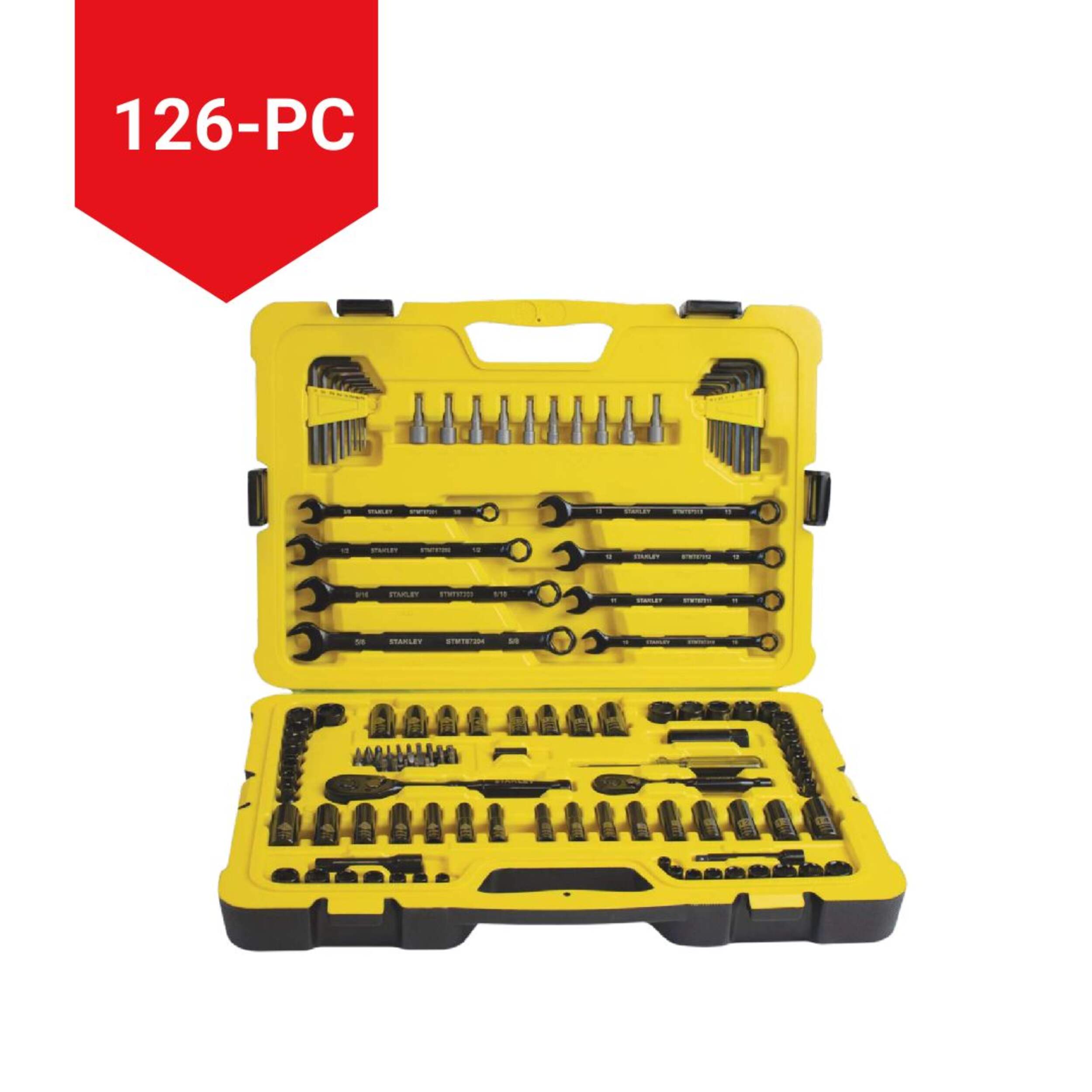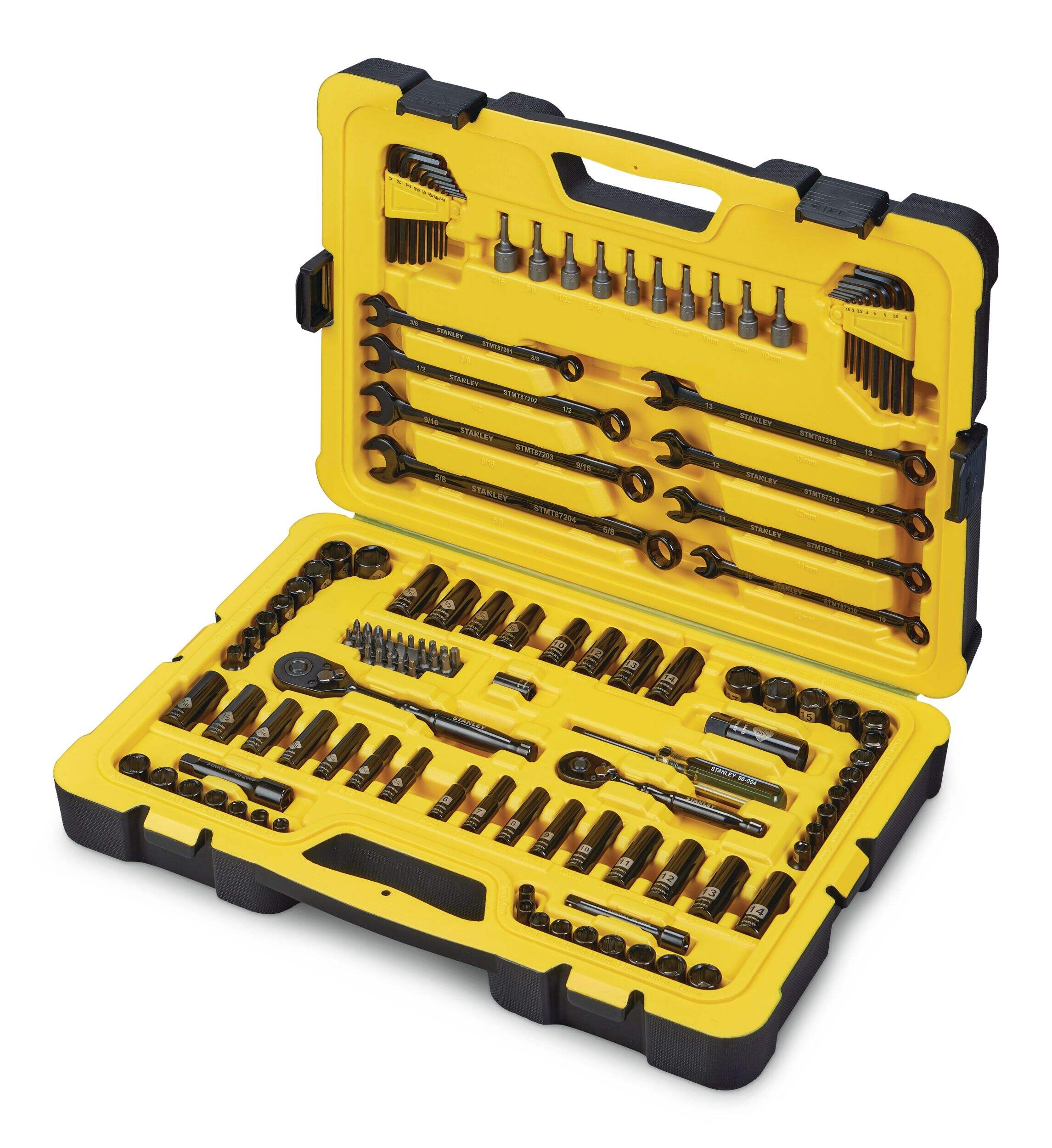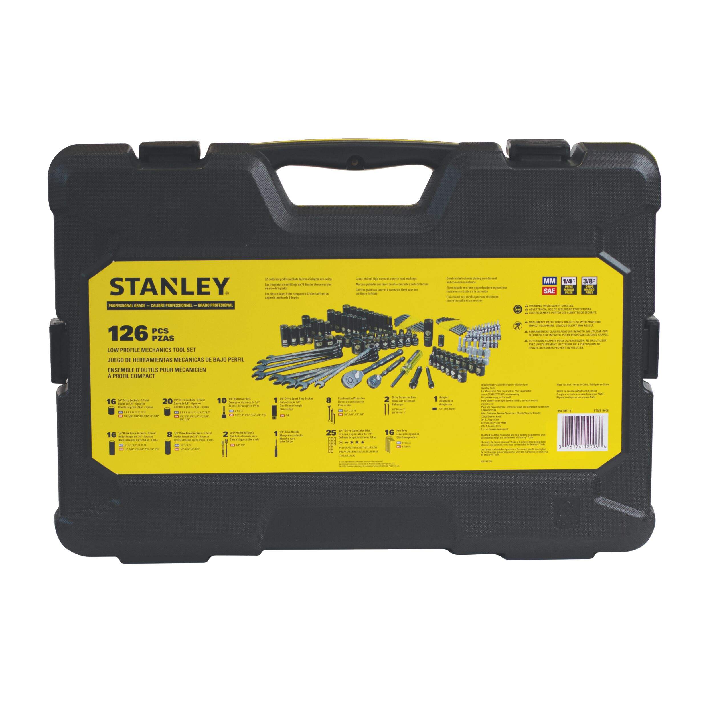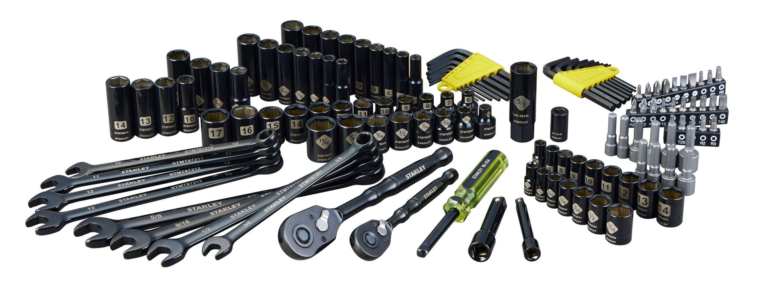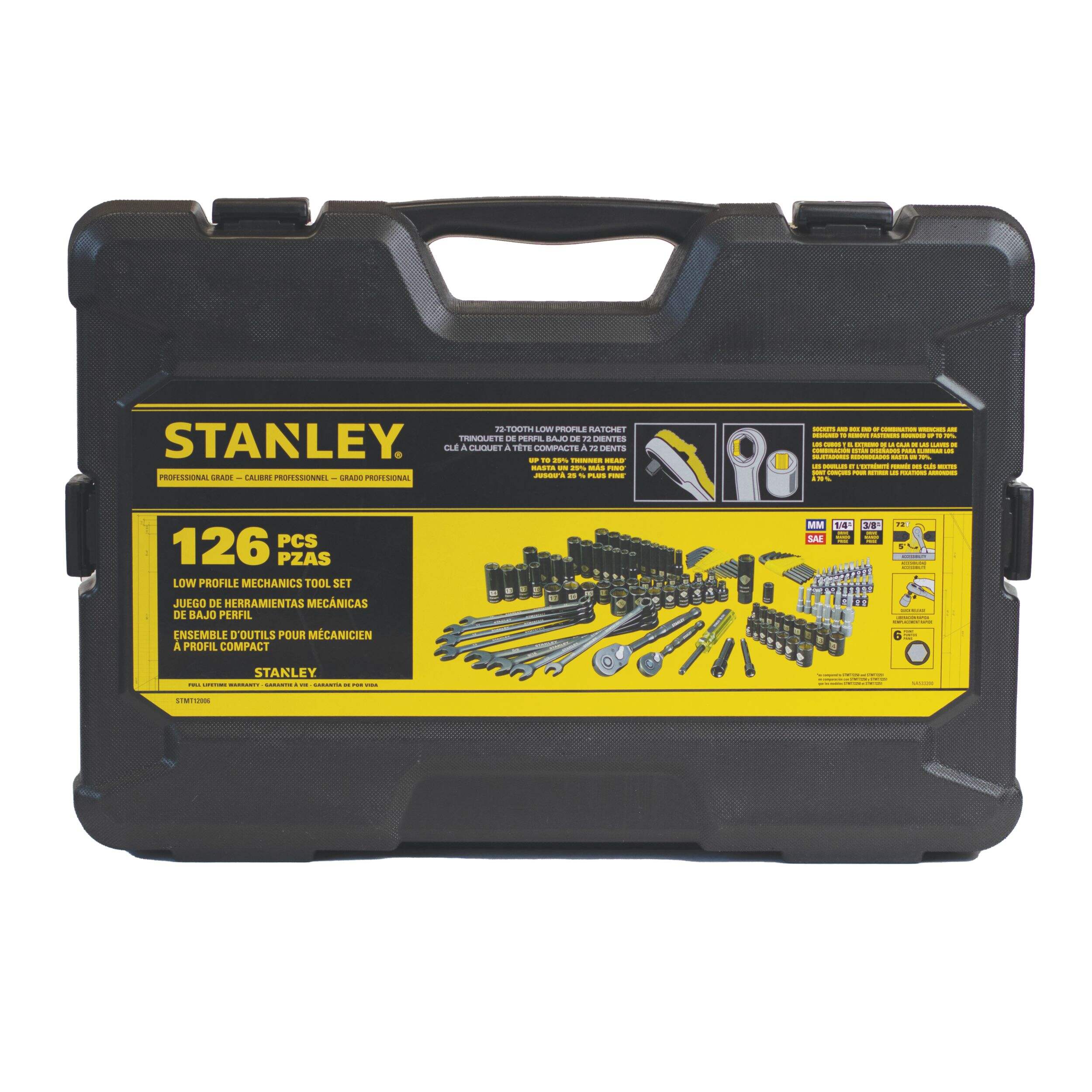 The Stanley Professional Max Black Chrome Socket Set features 126 sockets and accessories with a thin-wall design to access hard-to-reach fasteners. The black chrome finish resists corrosion and rounding, providing enhanced performance and durability. The set includes 1/4-inch and 3/8-inch drive sizes to handle a wide range of applications.