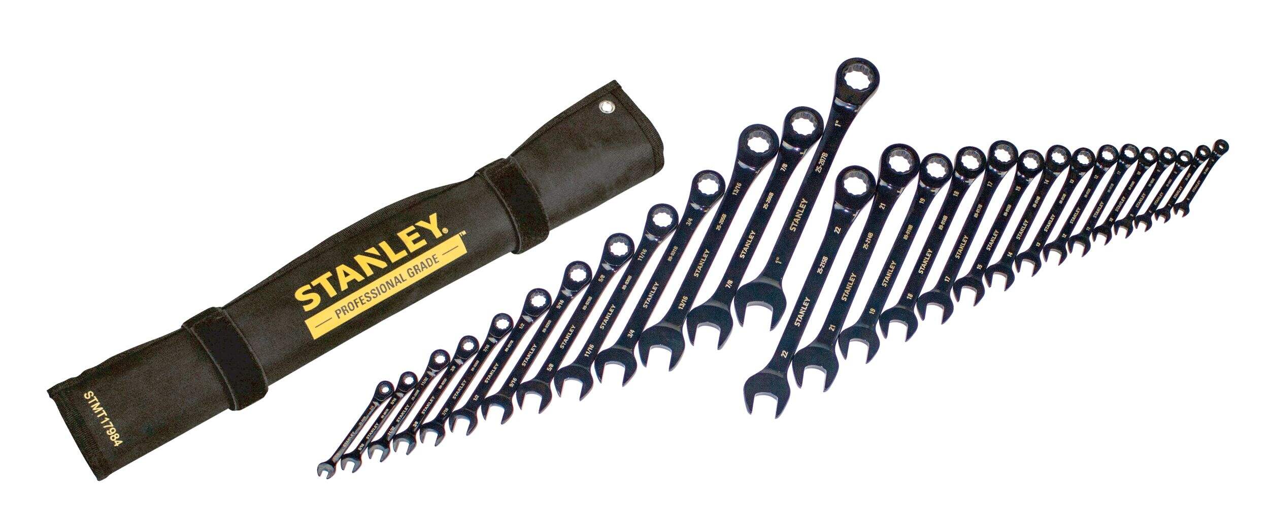 A must-have for your toolkit, the Stanley Professional Grade Ratcheting Wrench Set is designed for both precision and durability. Featuring Maxdrive™ Box End technology, these wrenches reduce slippage and deliver a secure grip on fasteners, making your tasks more efficient. Laser-etched markings ensure easy readability and long-lasting durability, even after frequent use. The black chrome plating provides superior rust and corrosion resistance, ensuring your tools remain in top condition.