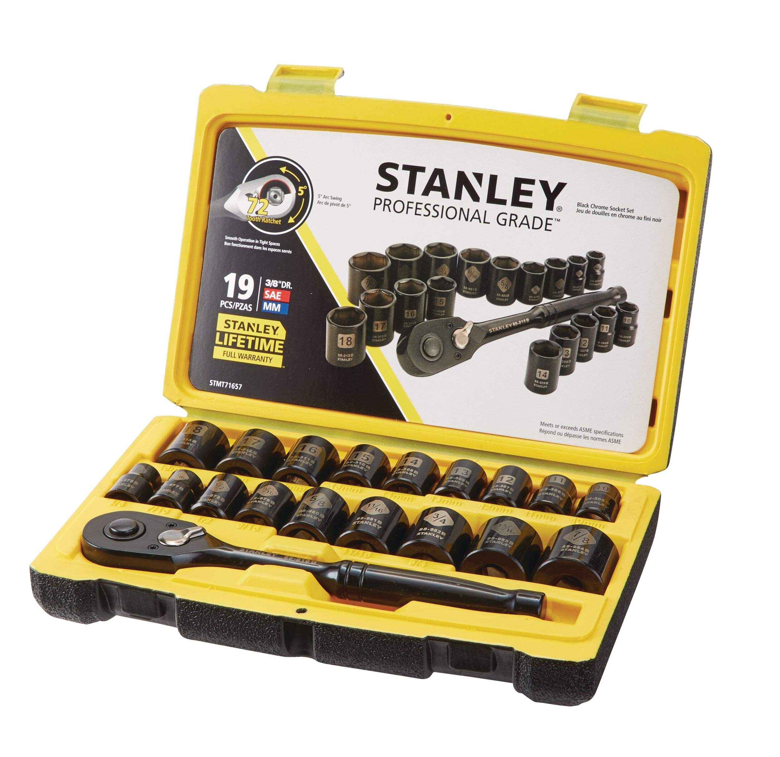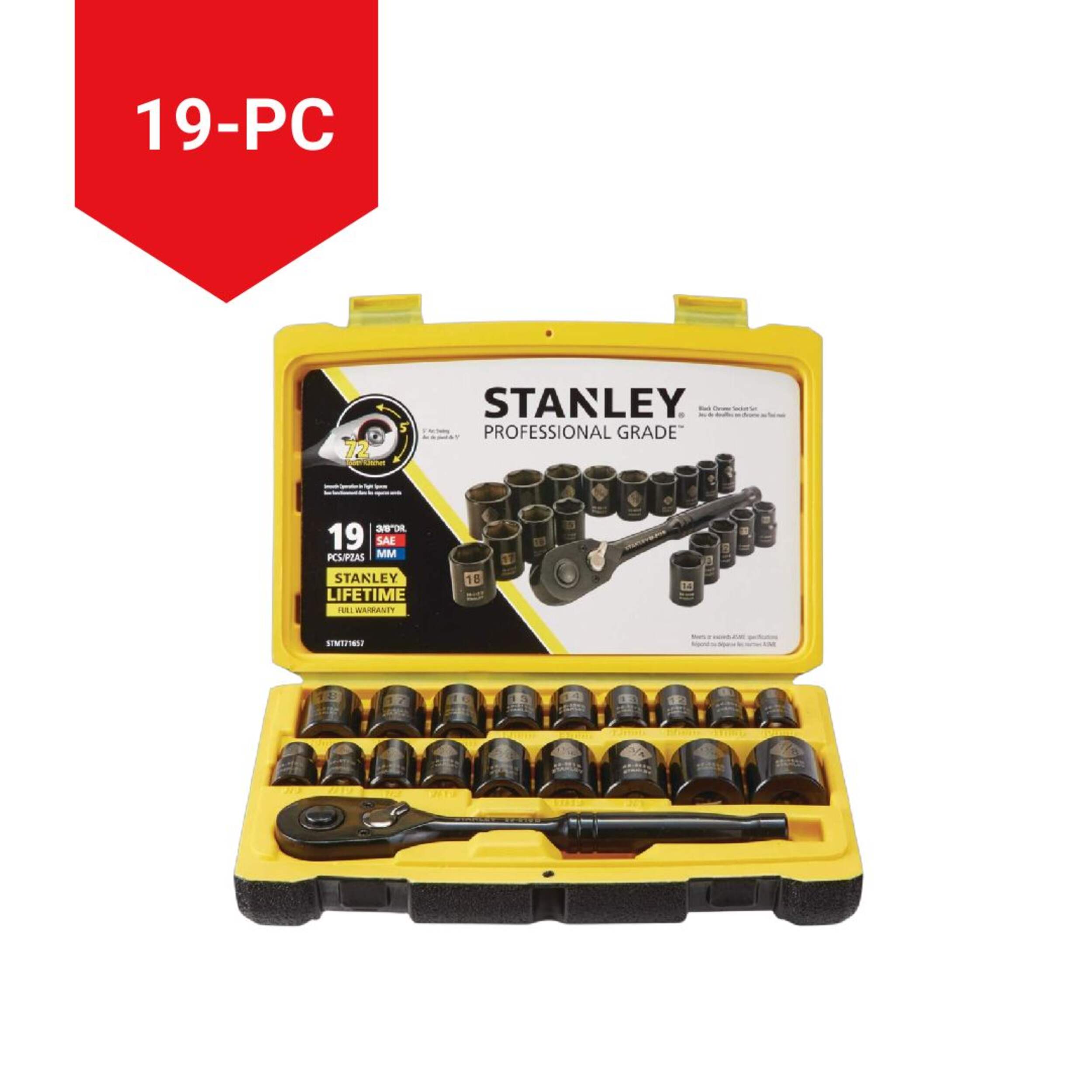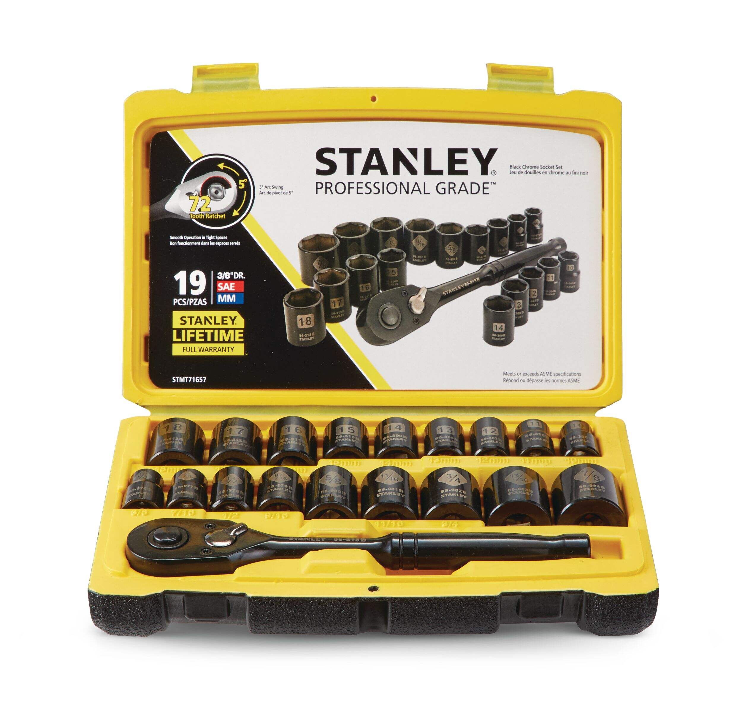 The STANLEY Professional Grade Dark Metallic Socket Set is your go-to solution for tackling a variety of tasks, whether it's automotive repairs or home improvement projects. Each piece in this set is built for durability with a sleek dark finish, offering excellent rust resistance and a standout look. Precision-engineered for reliability, this set is perfect for both DIY enthusiasts and professionals.