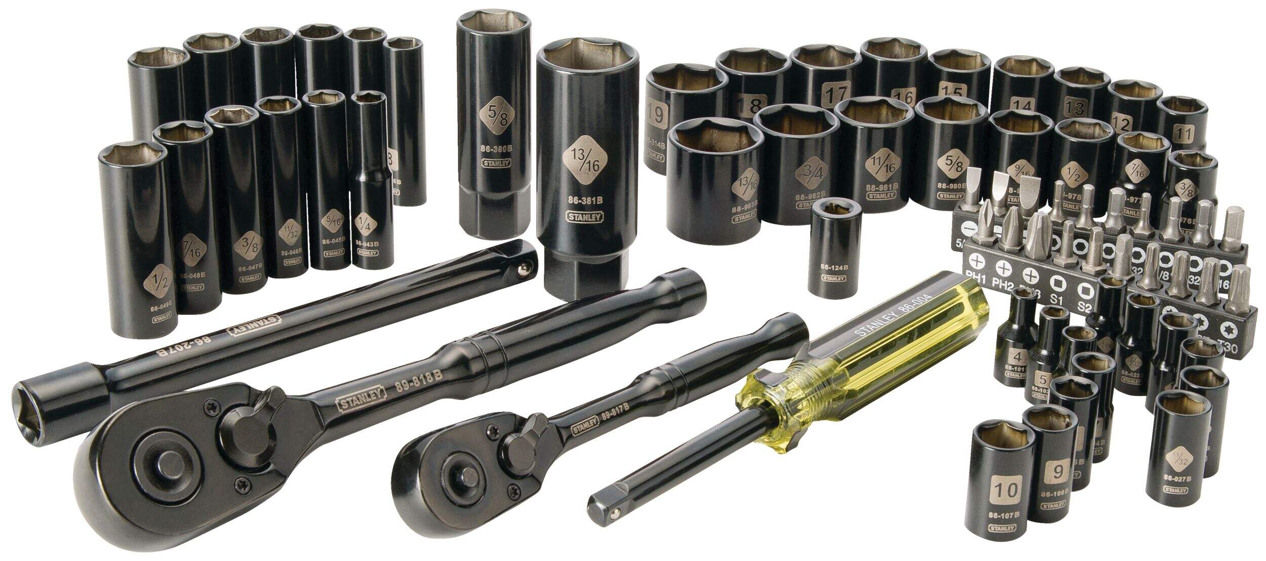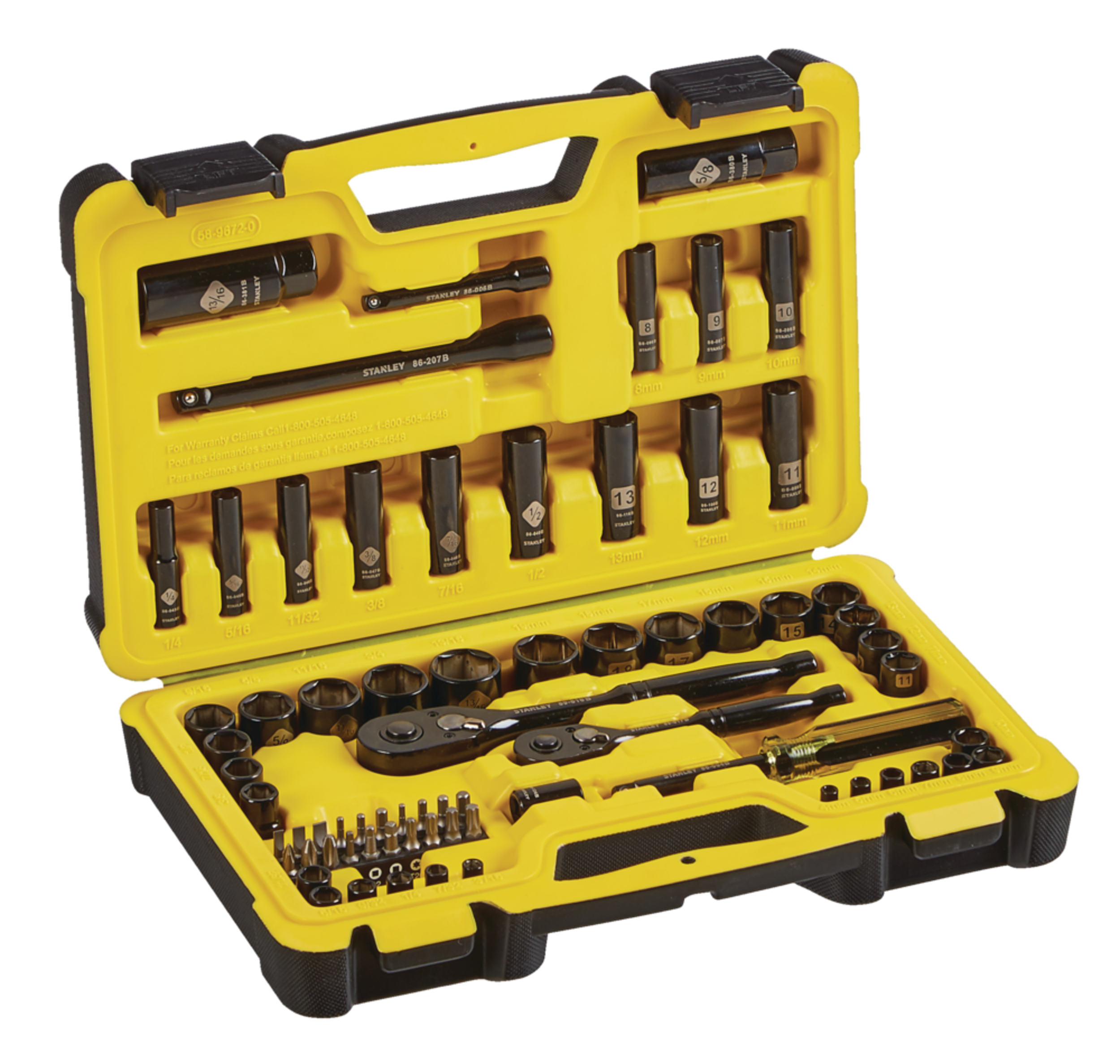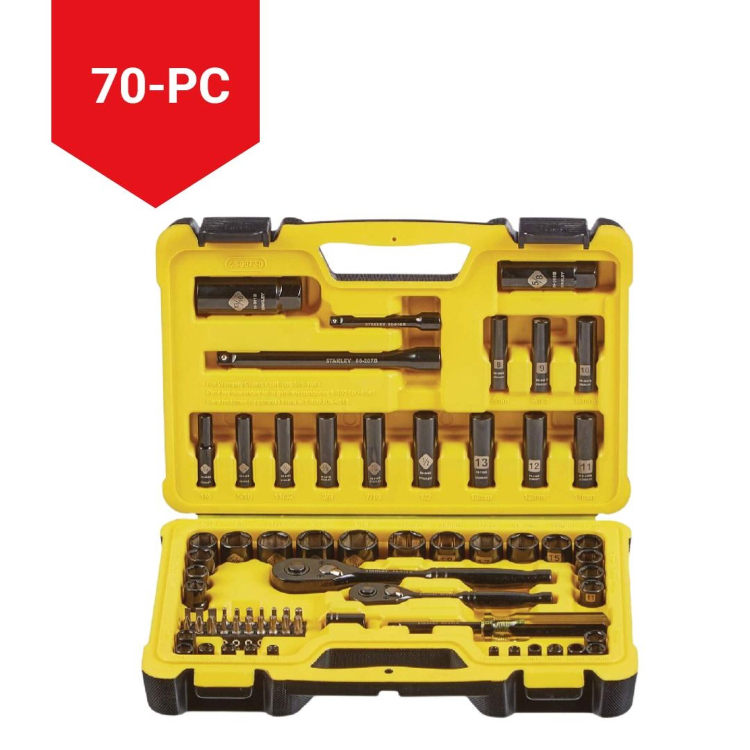 Tackle repair jobs to your vehicle and your home with the Stanley Professional Grade Black Chrome Socket Set. Featuring 70 pieces, this socket set contains a range of tools, so you can take on almost any task that comes your way. The black chrome plating on each piece provides not only the durability you need for lasting use, but also a look that stands out from the rest of your tools. Finished with clear markings, reversible mechanisms and quick-release buttons, this socket set delivers easy use whether you're a professional or an avid DIY-er.