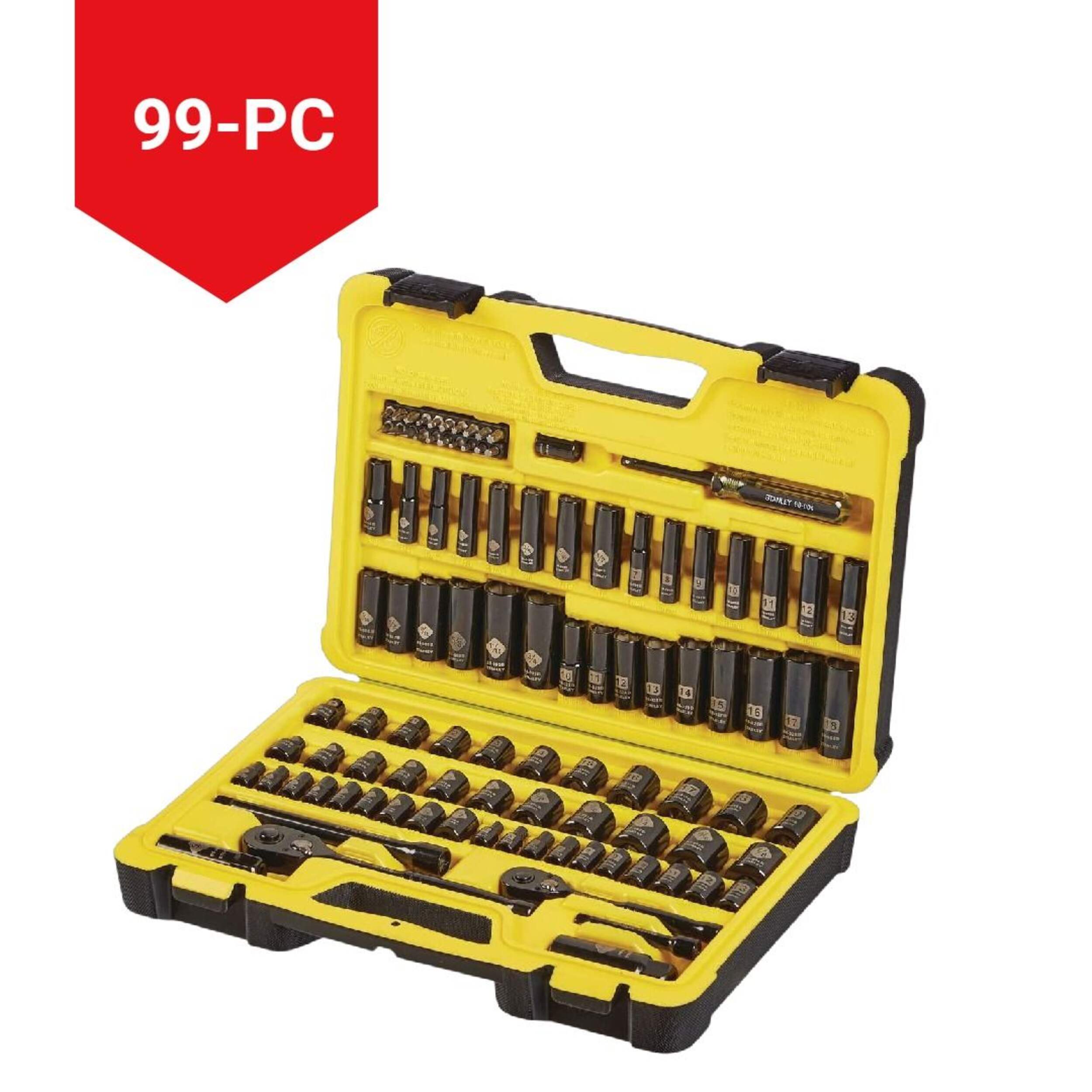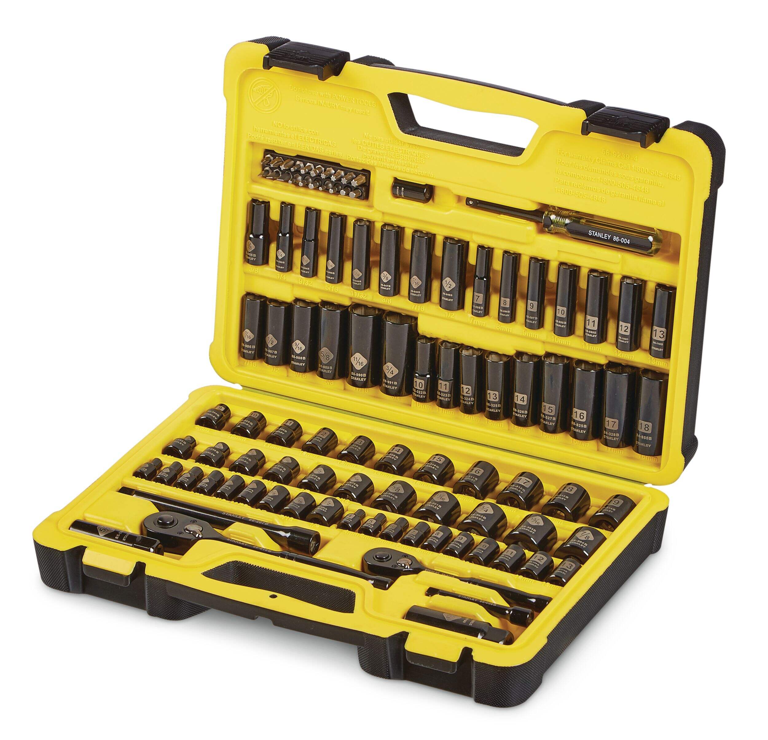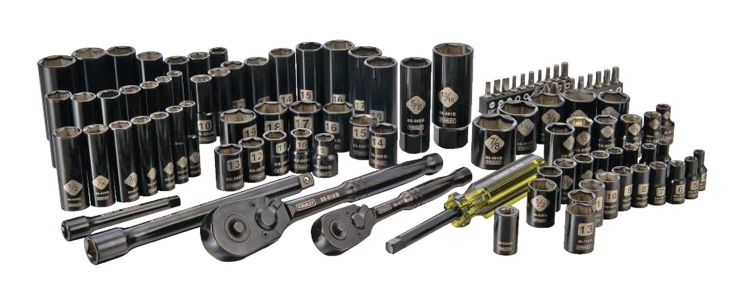 From your vehicle to your home, this Stanley Professional Grade Socket set is stocked with what it takes to handle anything. The black-chrome plating on each piece provides the durability and rust resistance you need with a look that's sure to stand out. This socket set includes a spinner driver handle, spark plug sockets, deep sockets, extension bars, bit drivers and all the accessories you need to handle any project.
